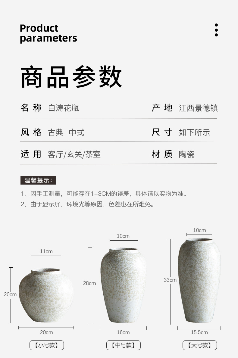 景德镇陶瓷花瓶摆件客厅插花侘寂风插花装饰高级感鲜花干花插花瓶