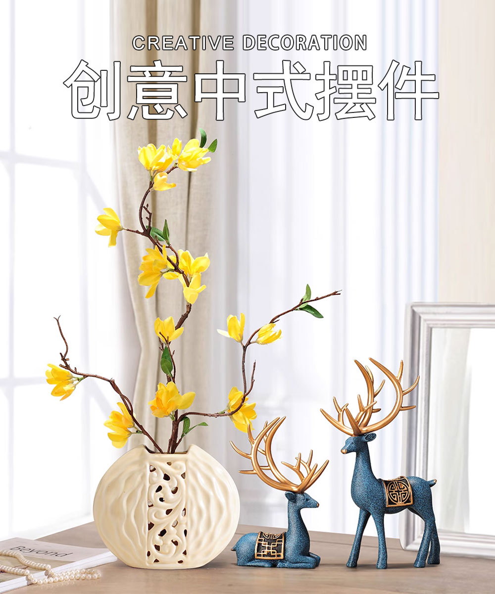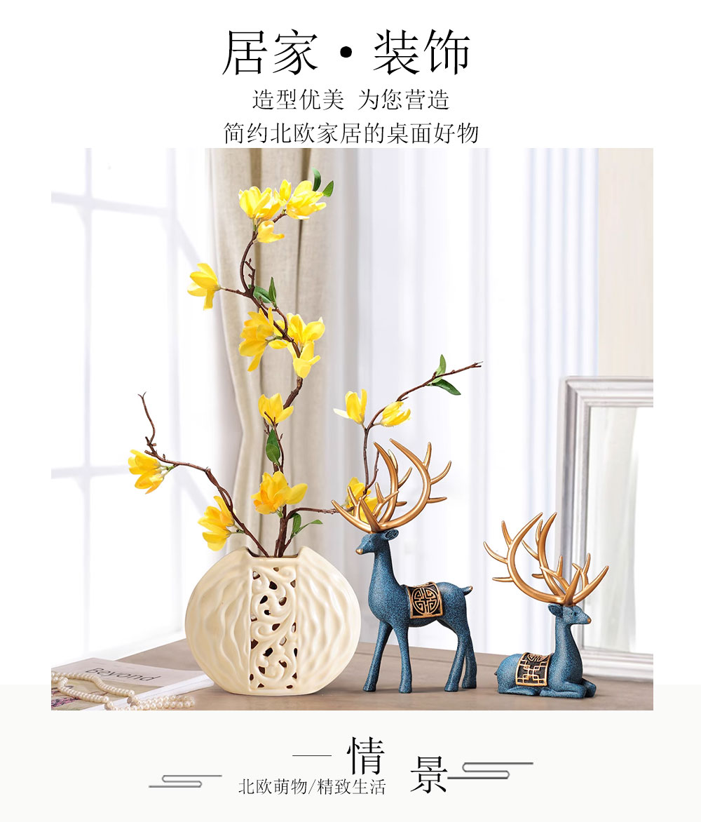 新中式鹿摆件装饰品创意室内花瓶客厅房间卧室工艺品乔迁送礼物品