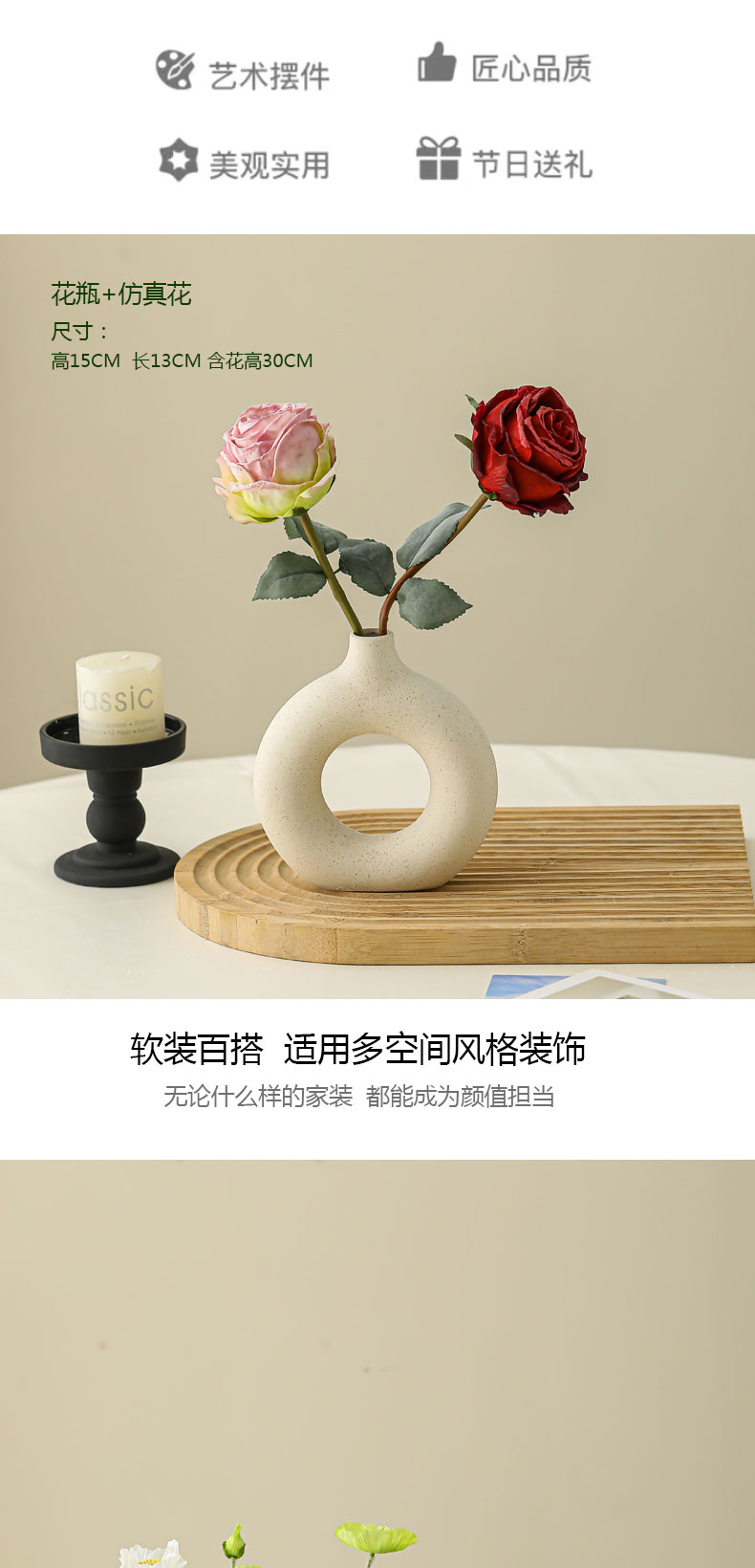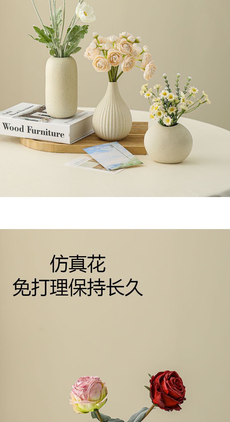 陶瓷花瓶摆件仿真洋牡丹桌面装饰假花客厅餐桌插花花束小众高级感