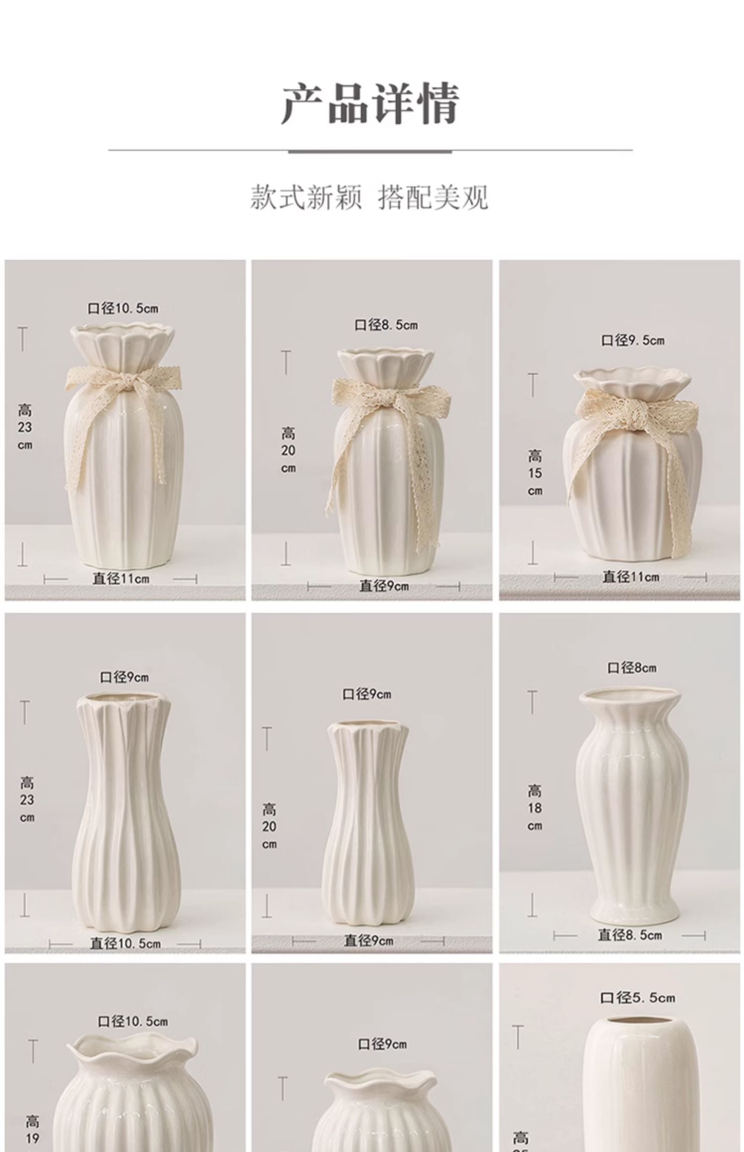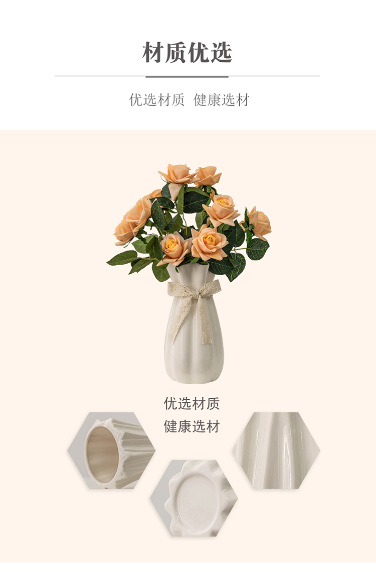 欧式玫瑰插花花瓶白色简约陶瓷花器客厅餐桌干花鲜花水培装饰摆件