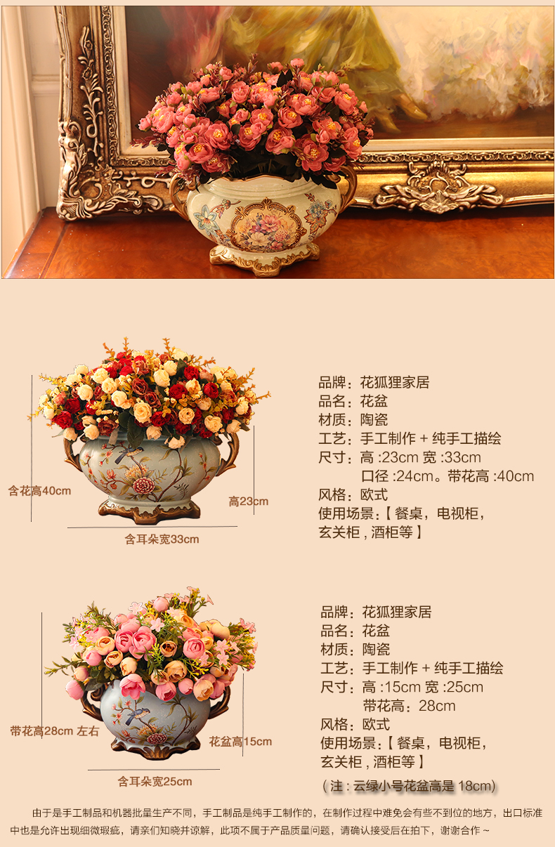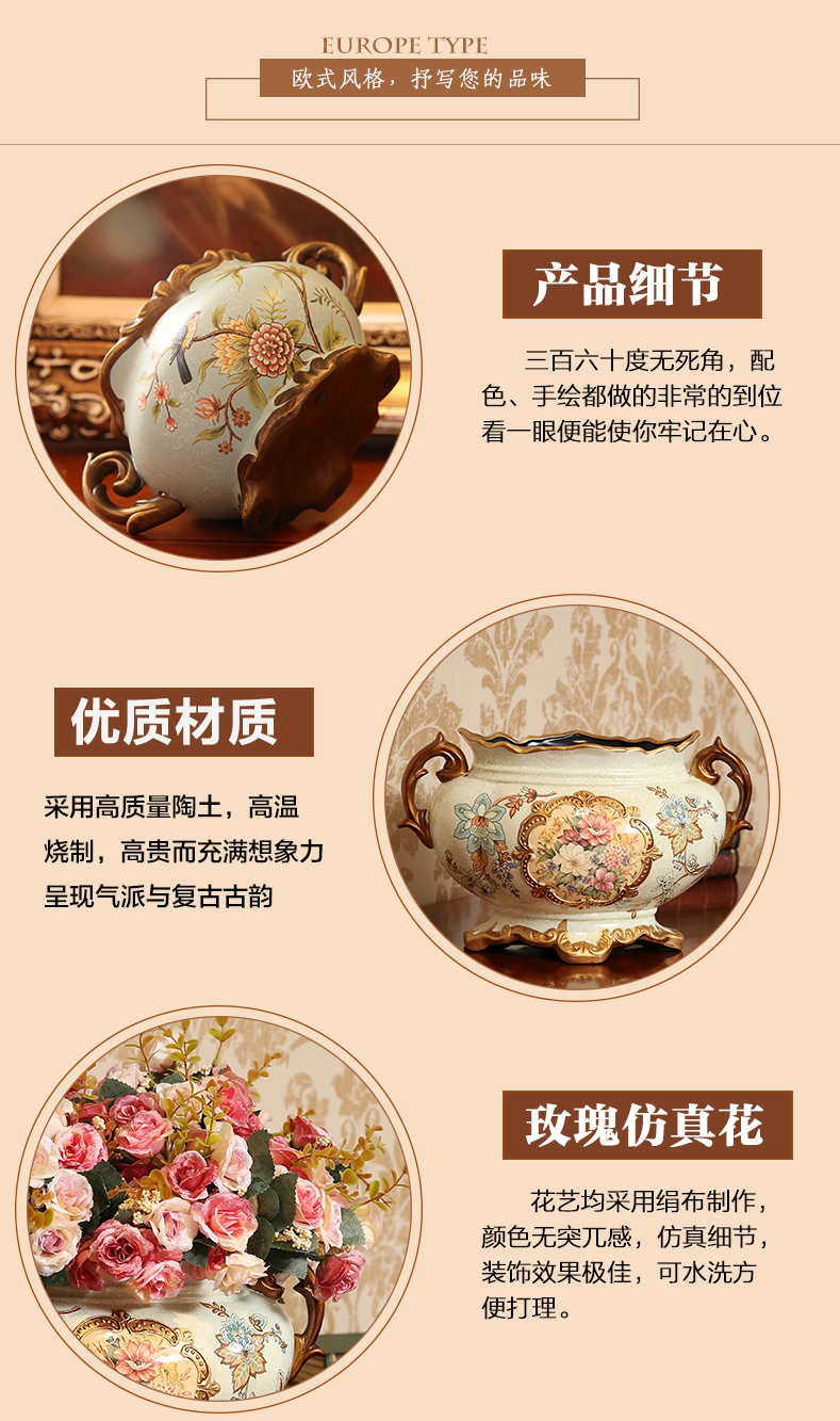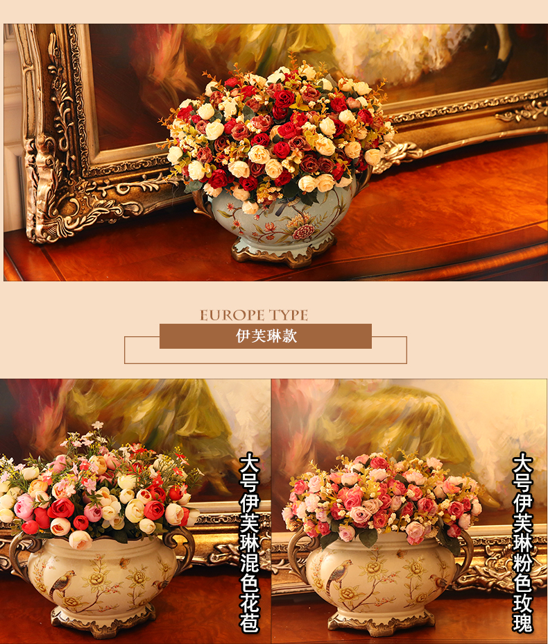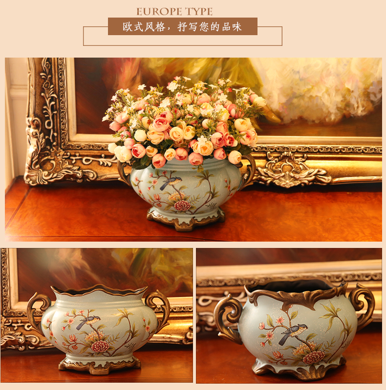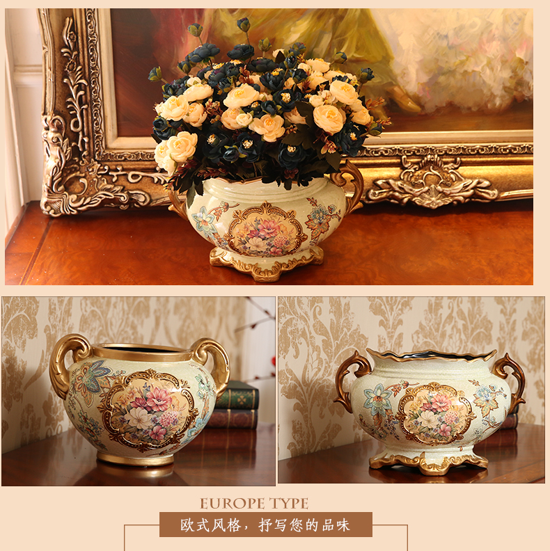 欧式装饰品陶瓷花盆复古花瓶餐桌摆件客厅插花花艺摆设创意工艺品