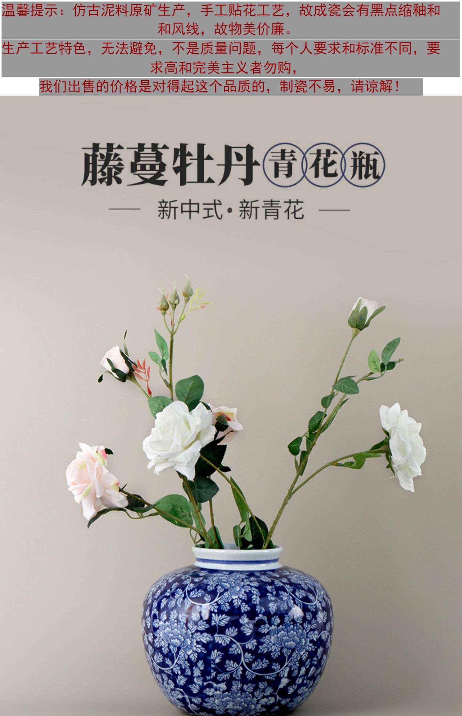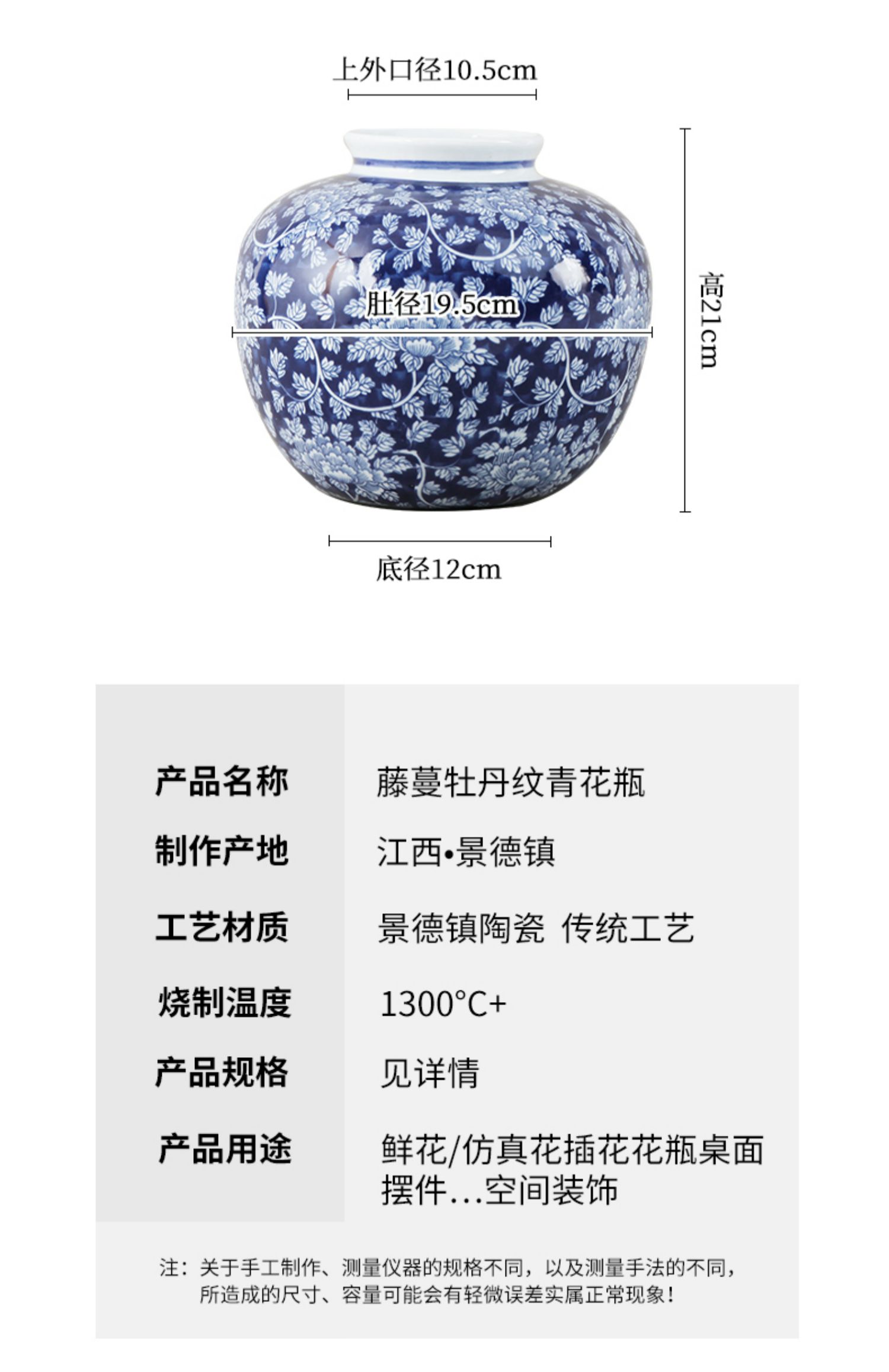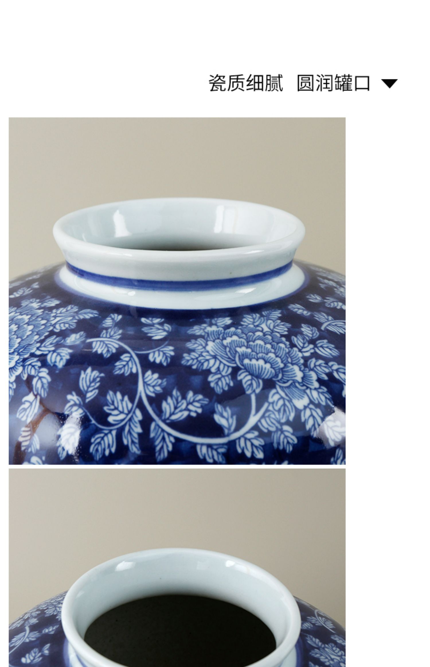 中式陶瓷花瓶摆件装饰品景德镇青花瓷将军罐客厅玄关插花轻奢花器