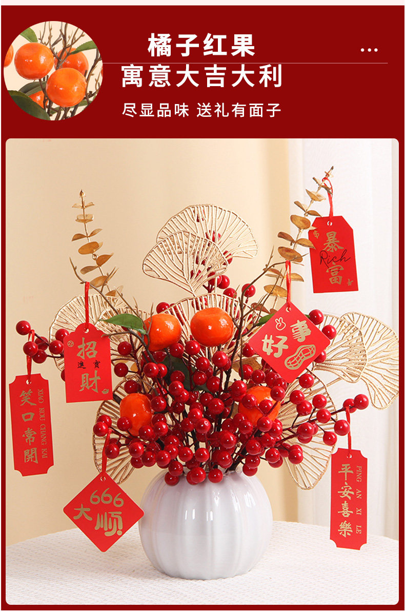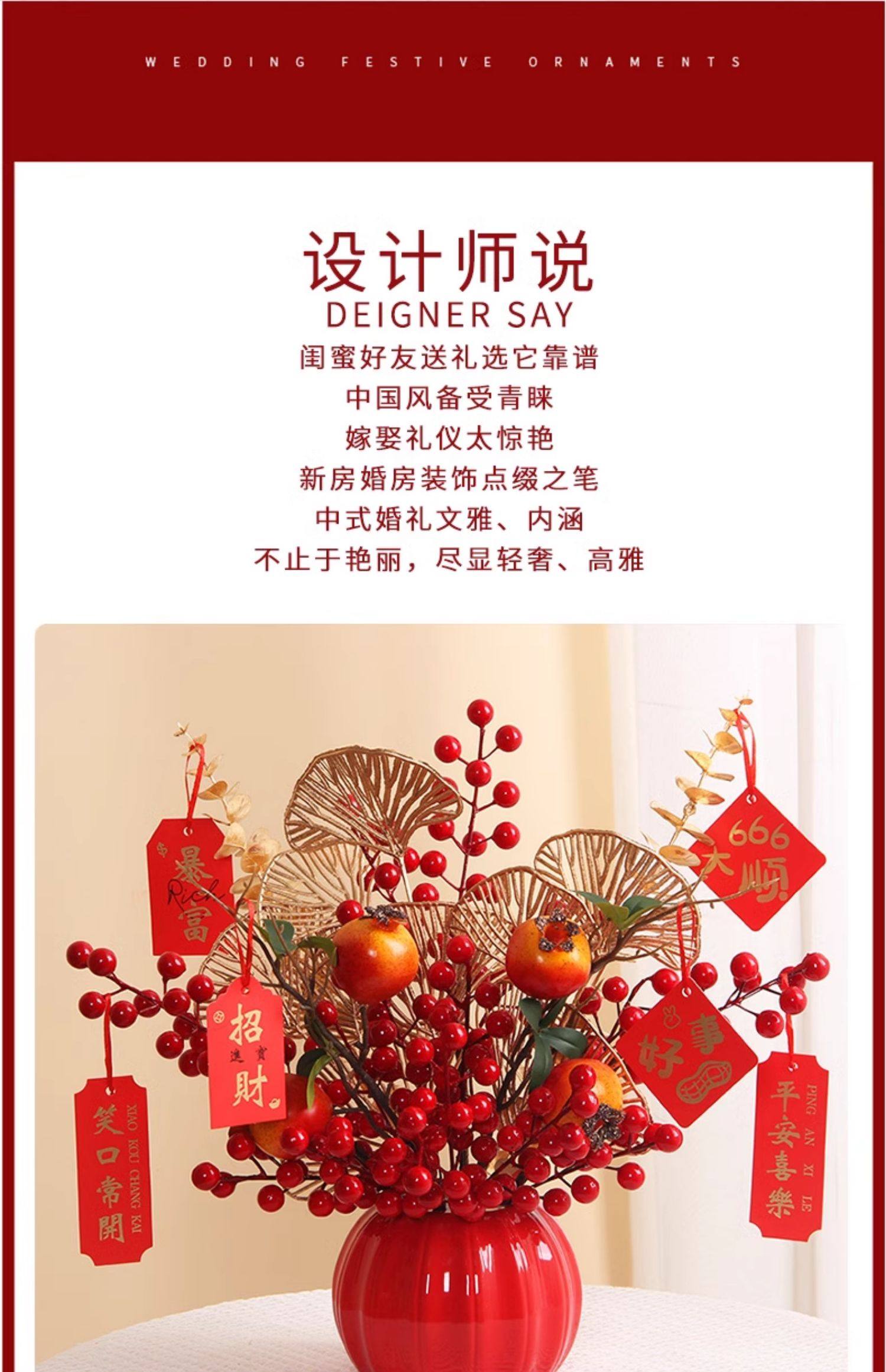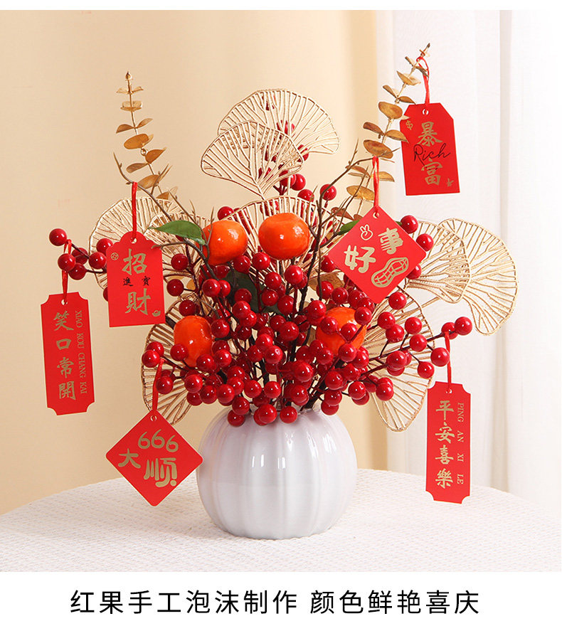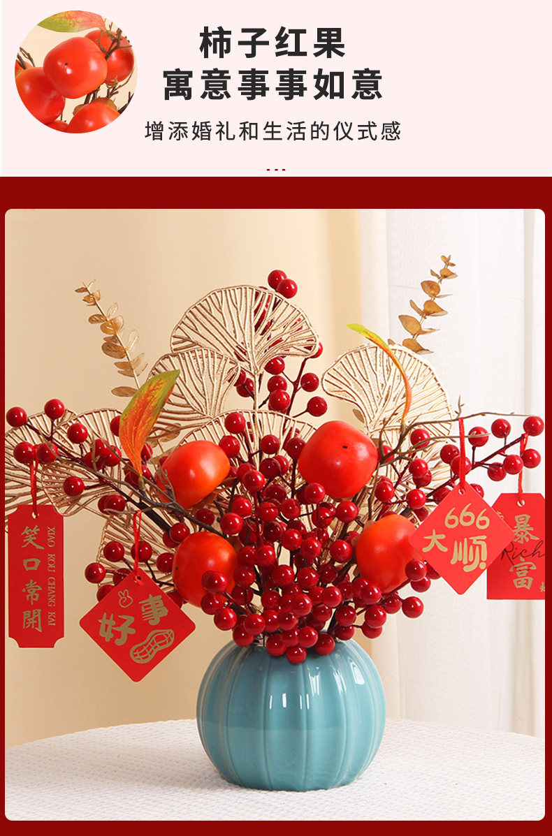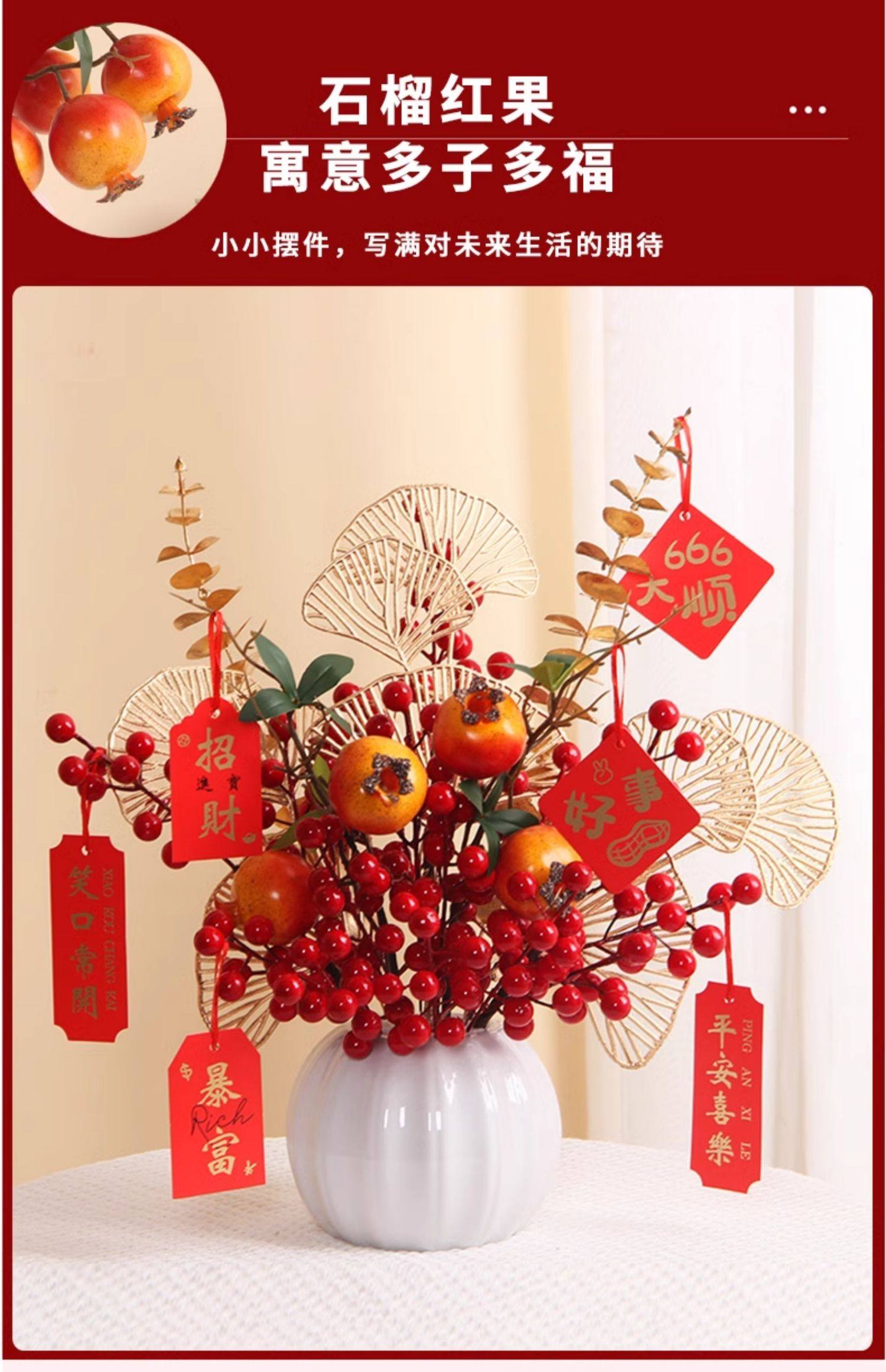 轻奢新中式摆件发发果发财果浆果红果石榴假花仿真花餐厅客厅摆设