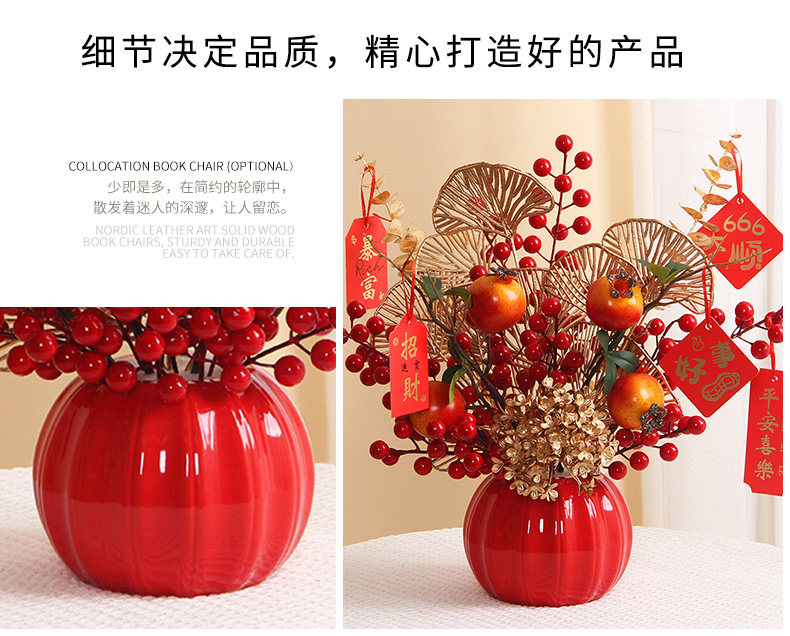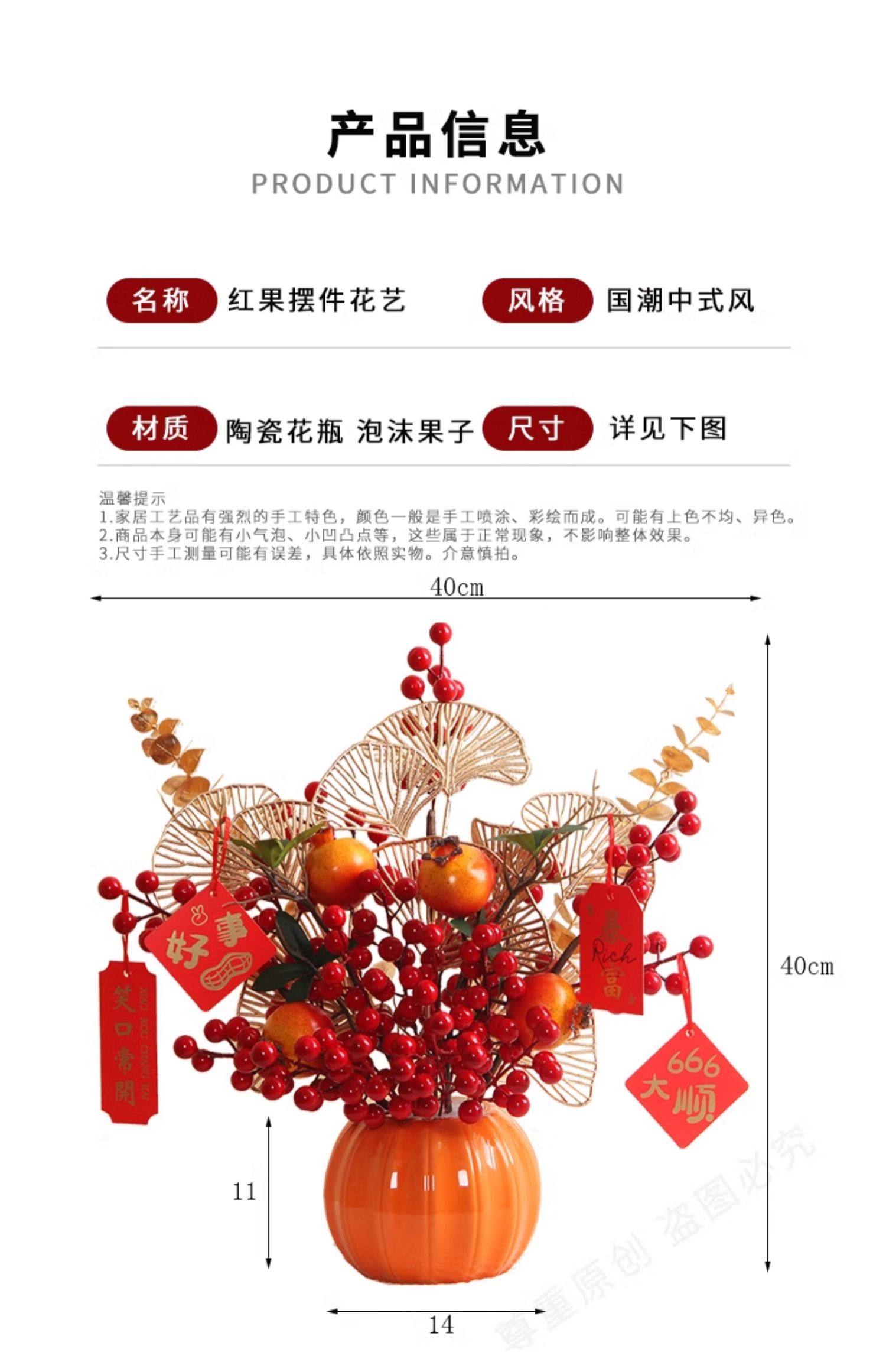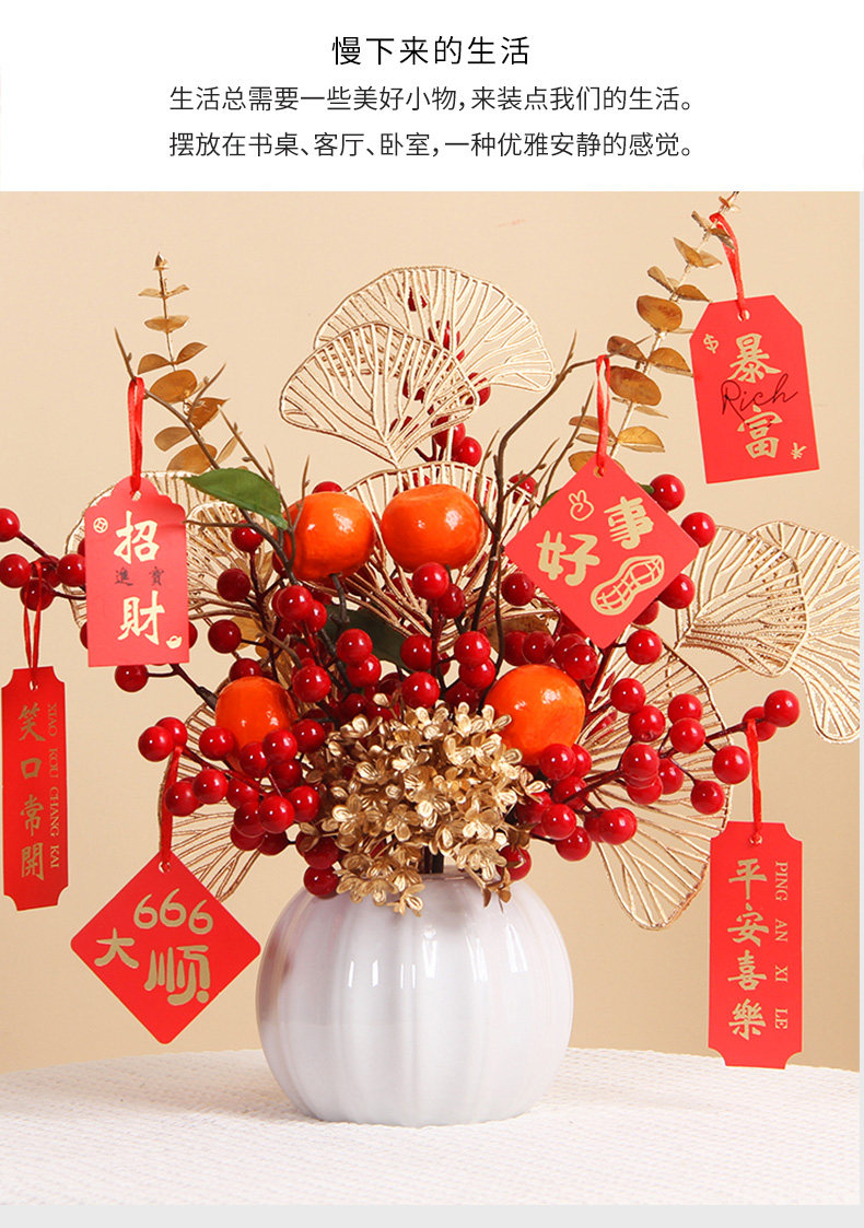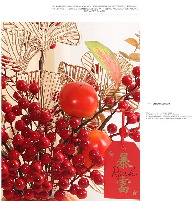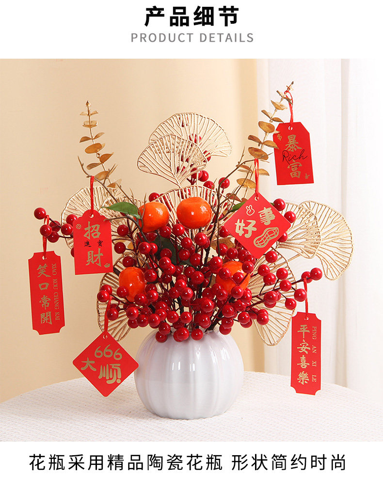 轻奢新中式摆件发发果发财果浆果红果石榴假花仿真花餐厅客厅摆设