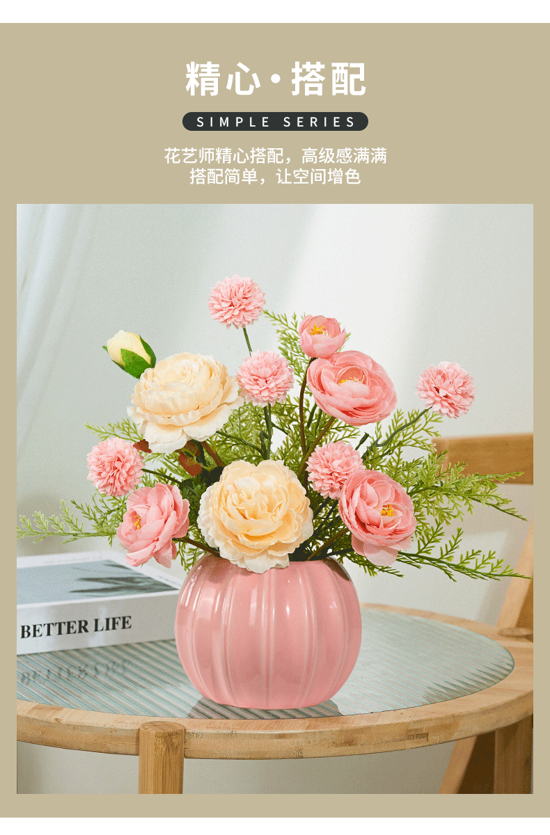 仿真花摆设客厅插花花艺摆件高档装饰花卉干花花束餐桌仿生花假花
