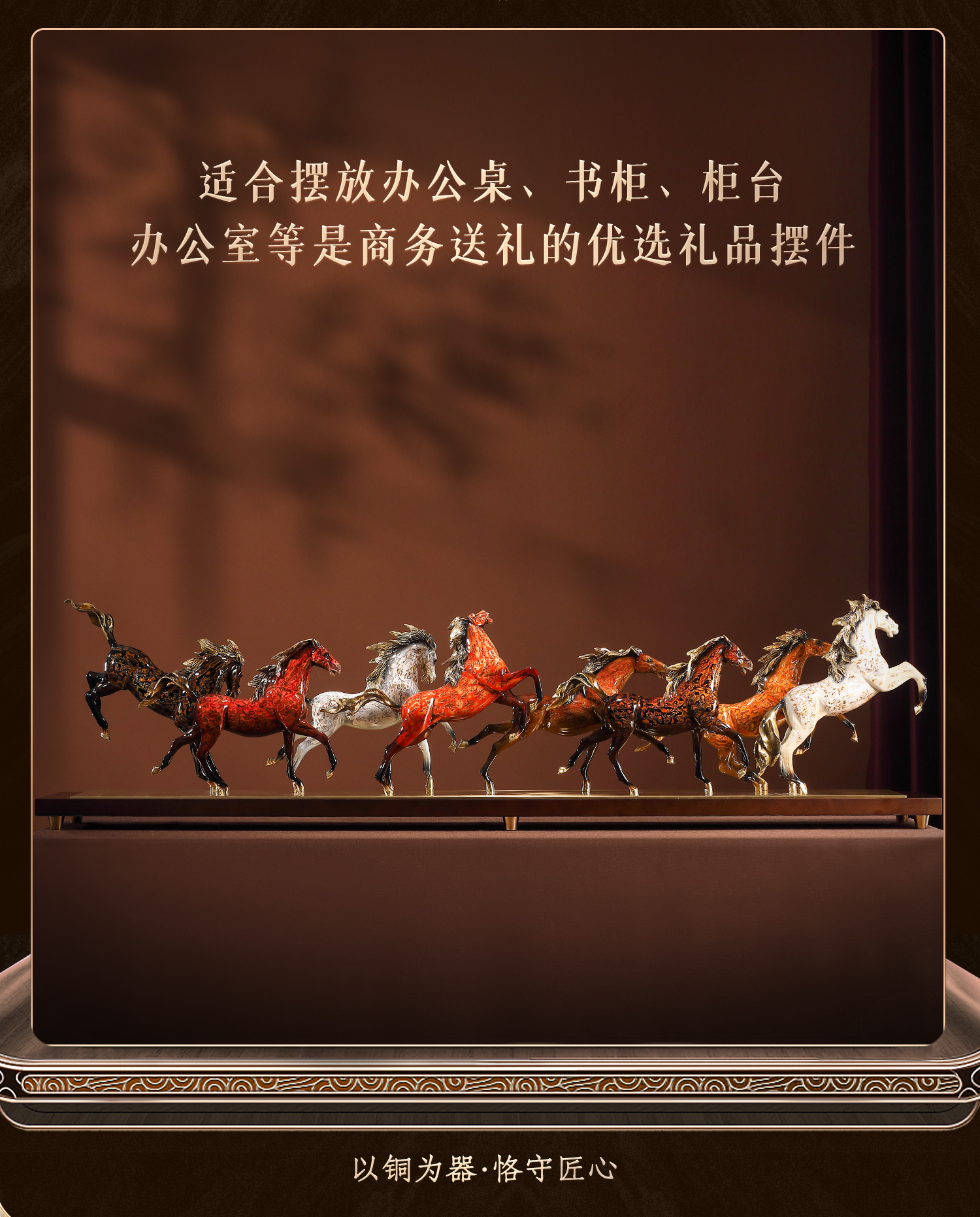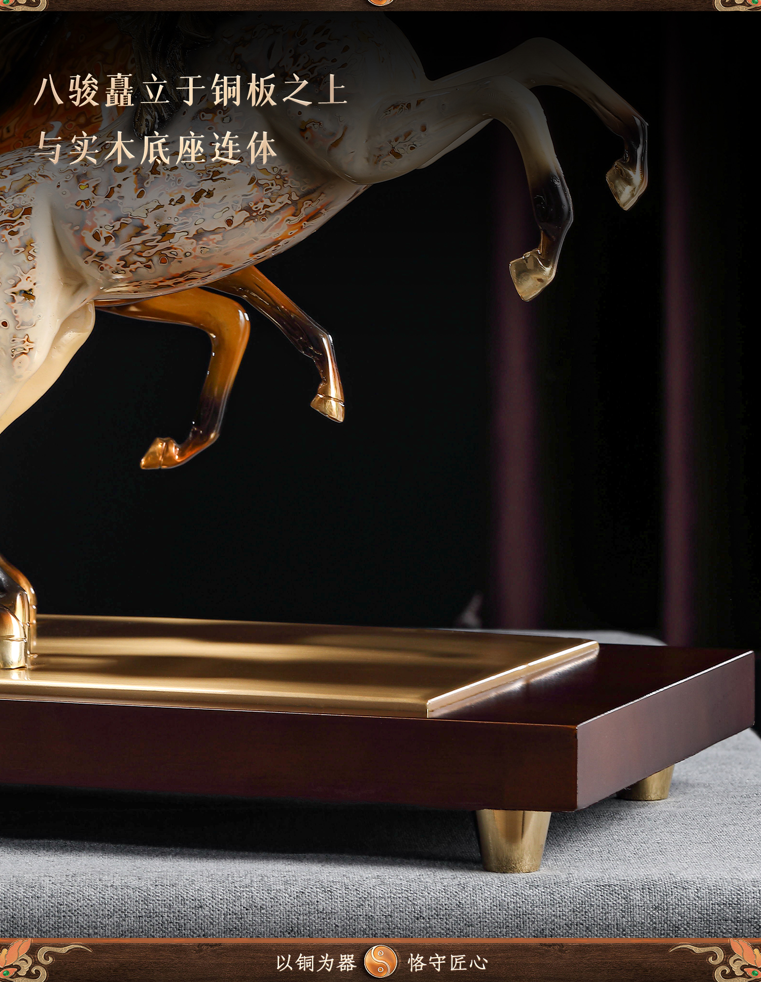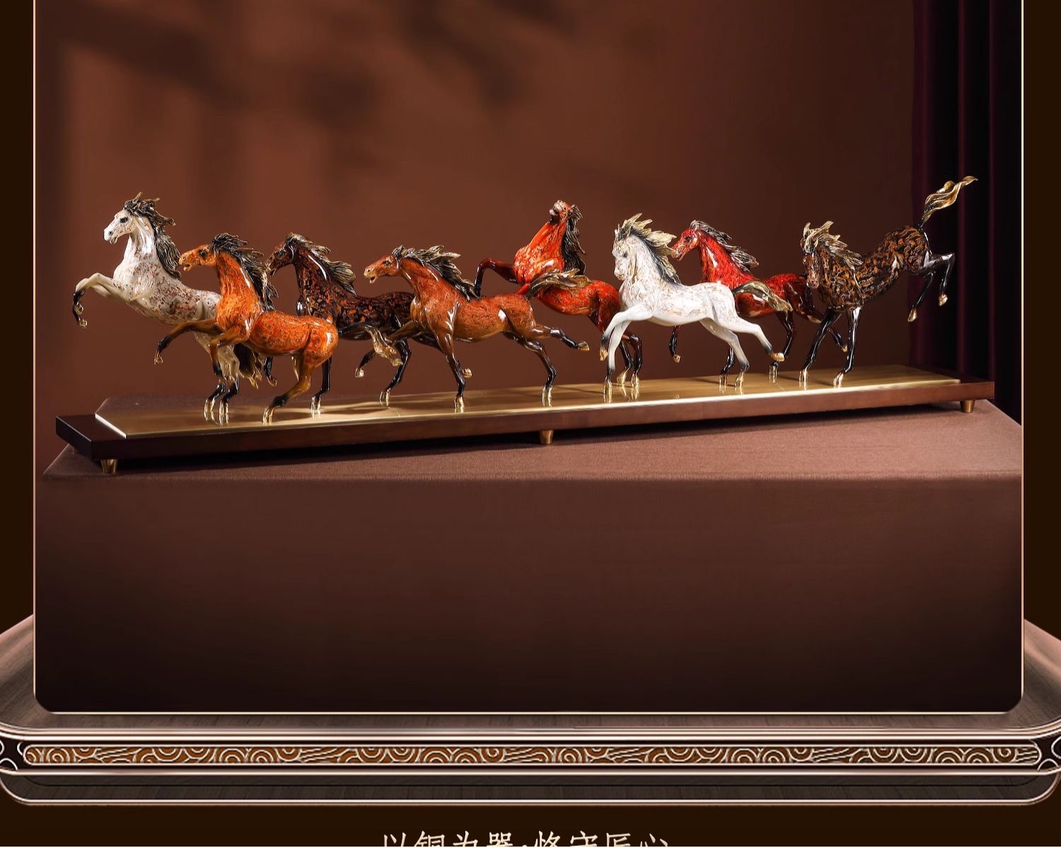 大铜小艺黄铜大漆工艺八骏奔腾马摆件玄关装饰商务办公摆设乔迁礼