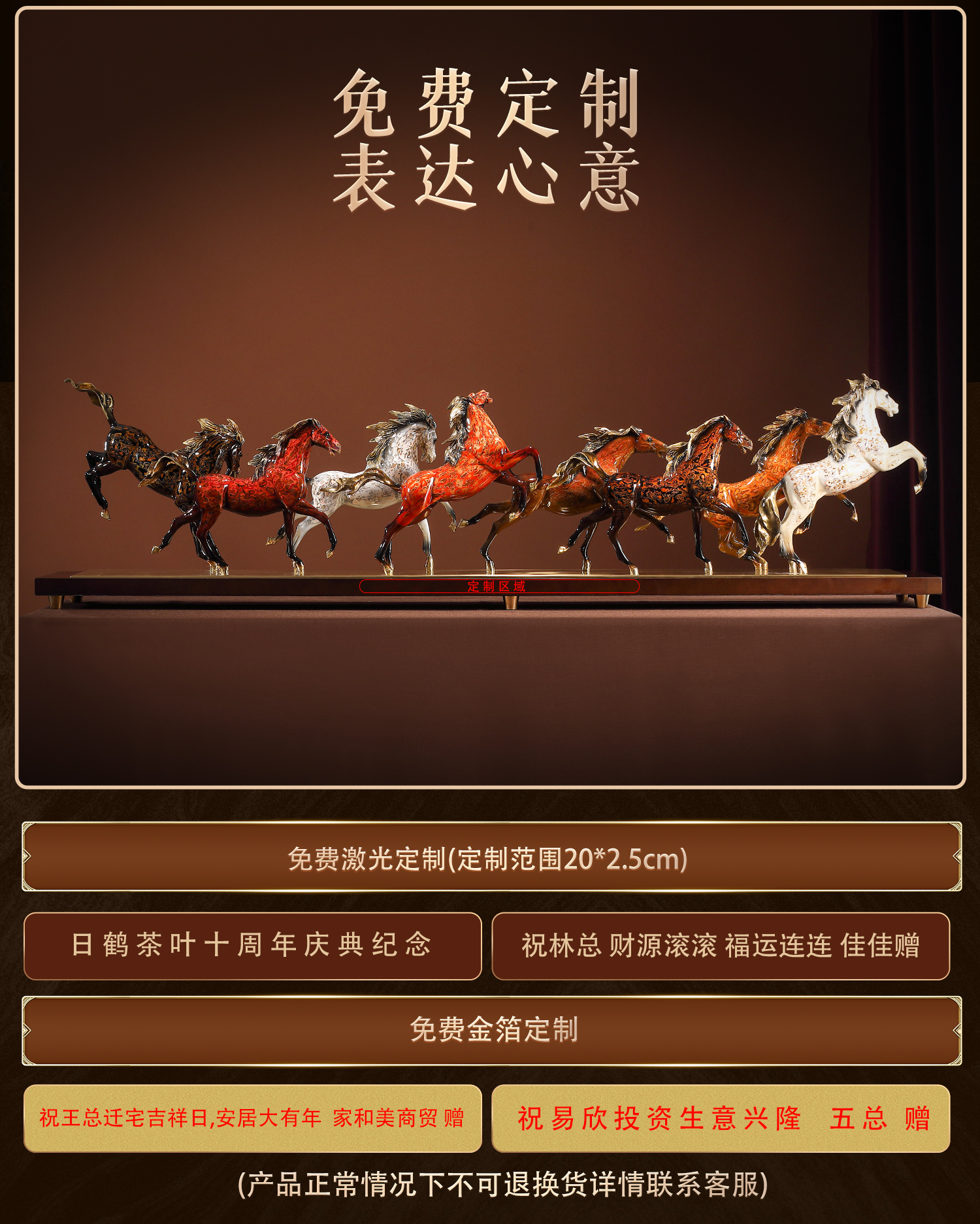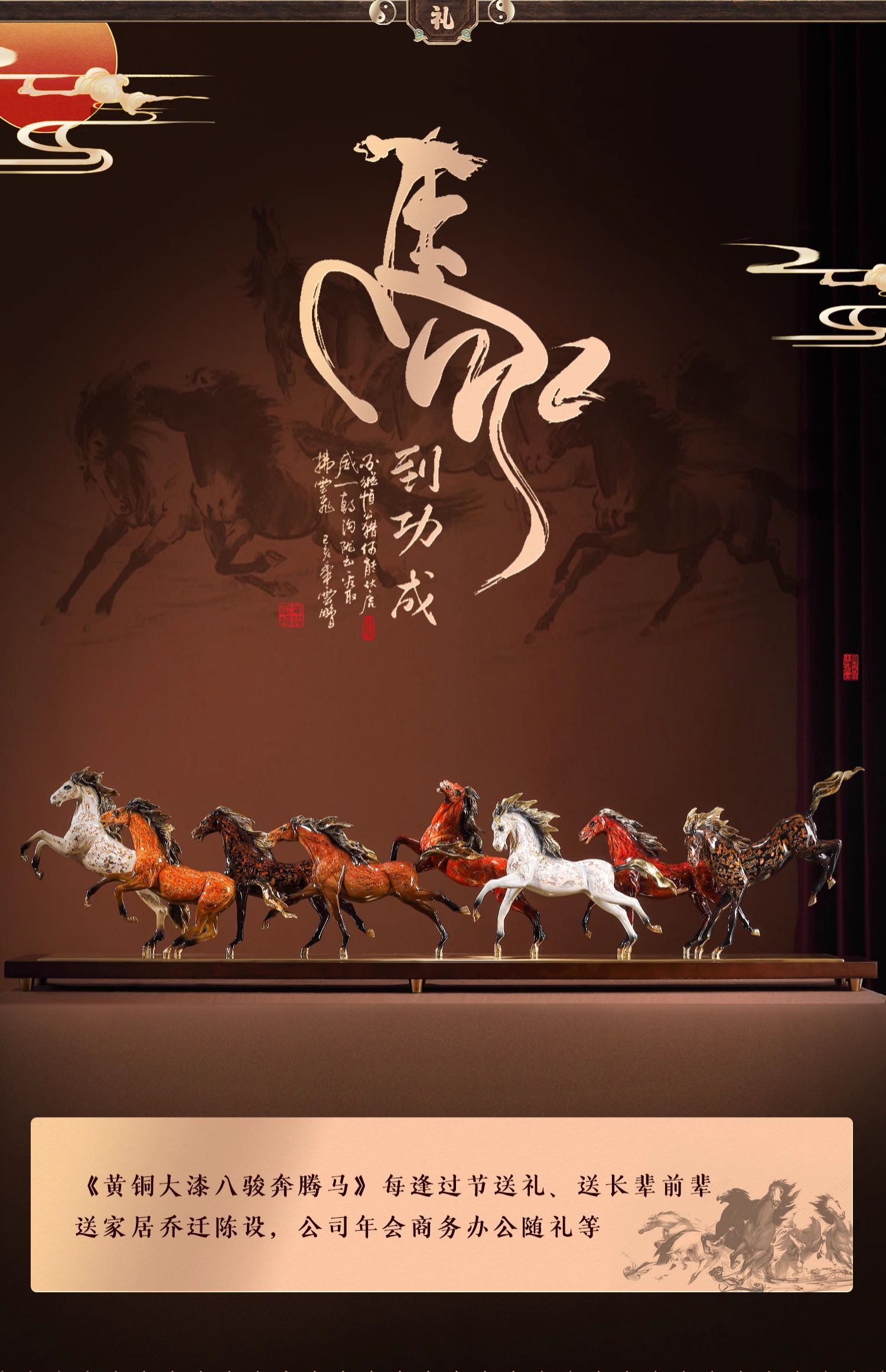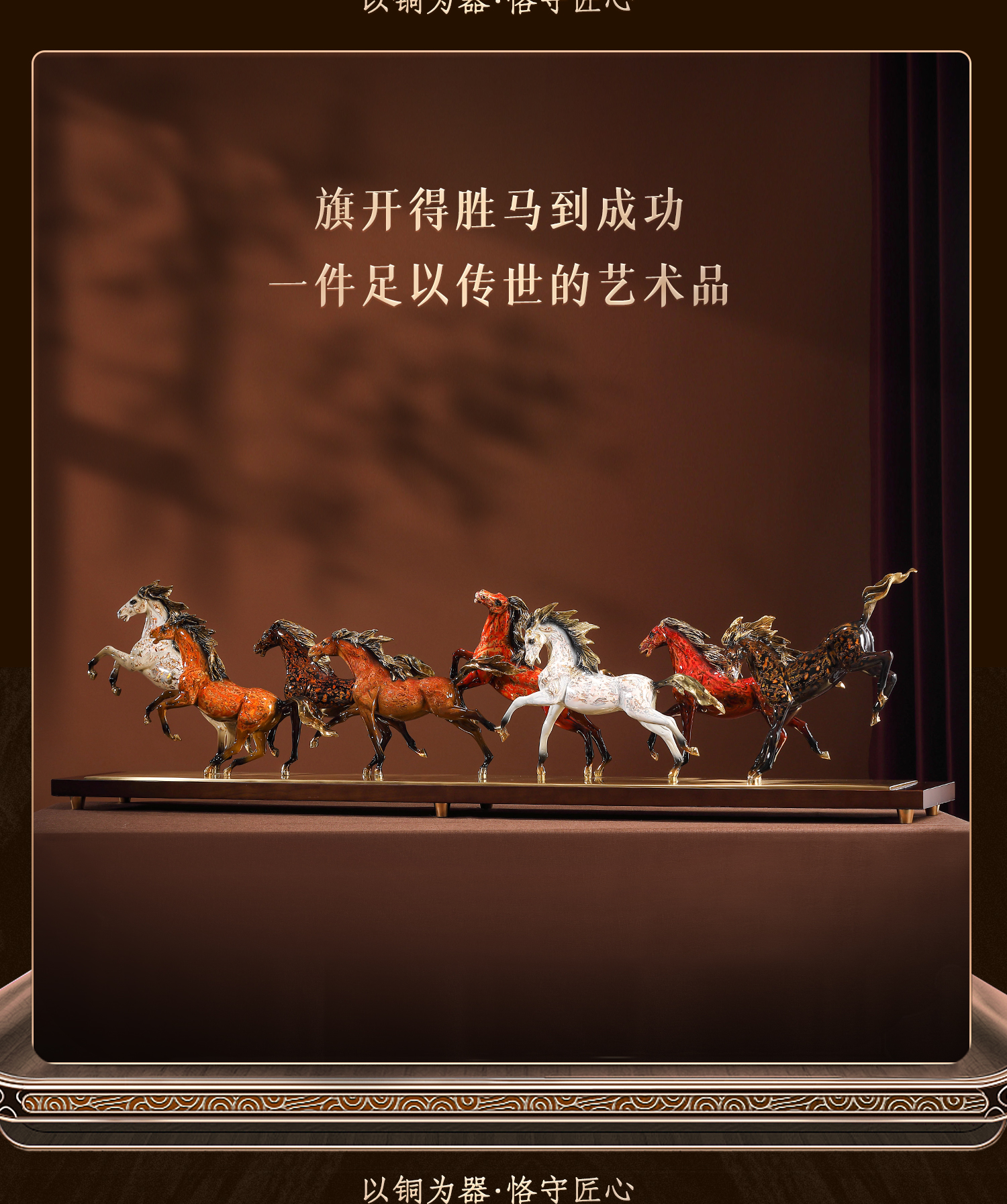 大铜小艺黄铜大漆工艺八骏奔腾马摆件玄关装饰商务办公摆设乔迁礼
