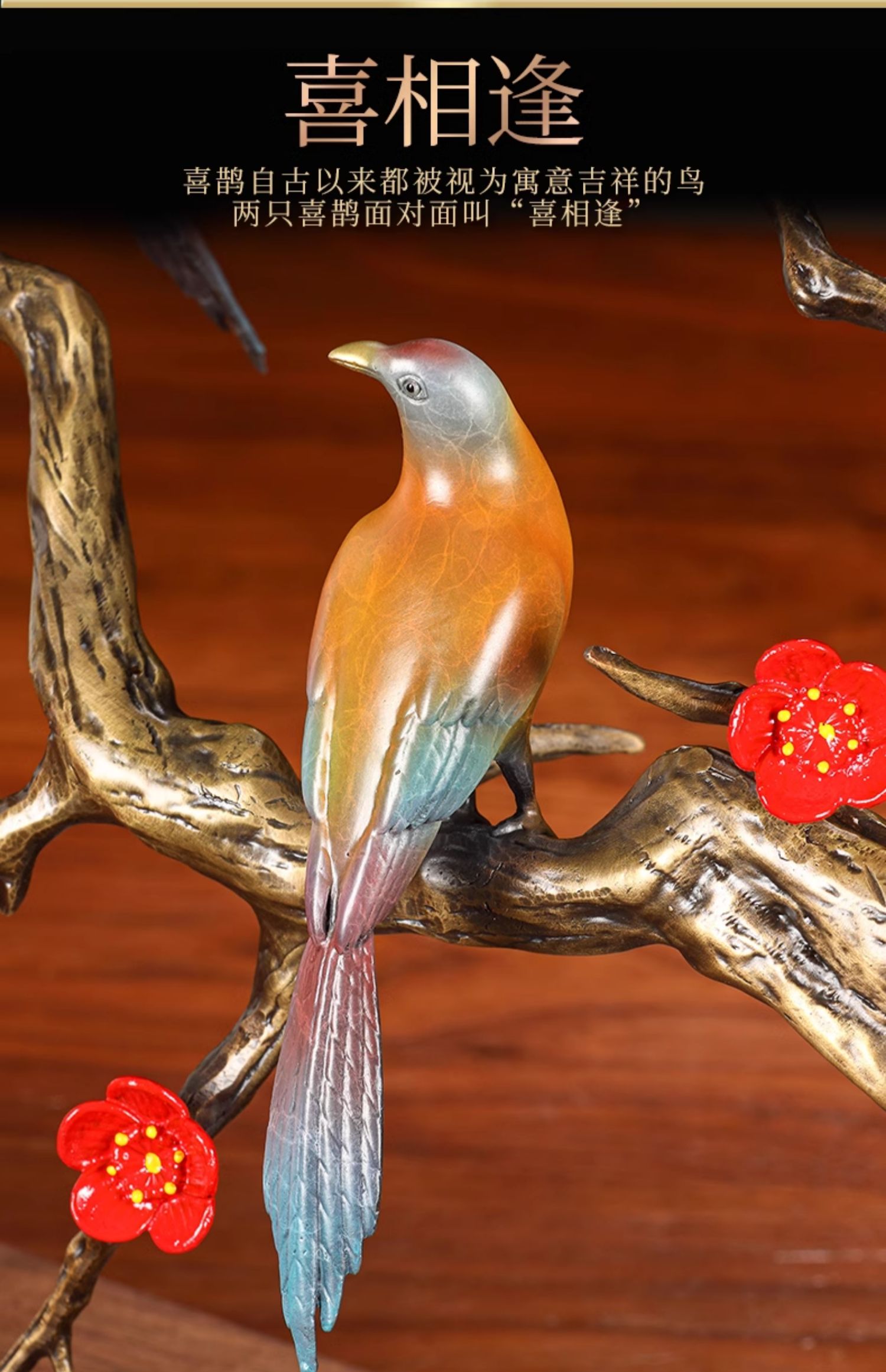 大铜世家喜上眉梢黄铜工艺品摆件中式婚房客厅装饰结婚礼物送新人