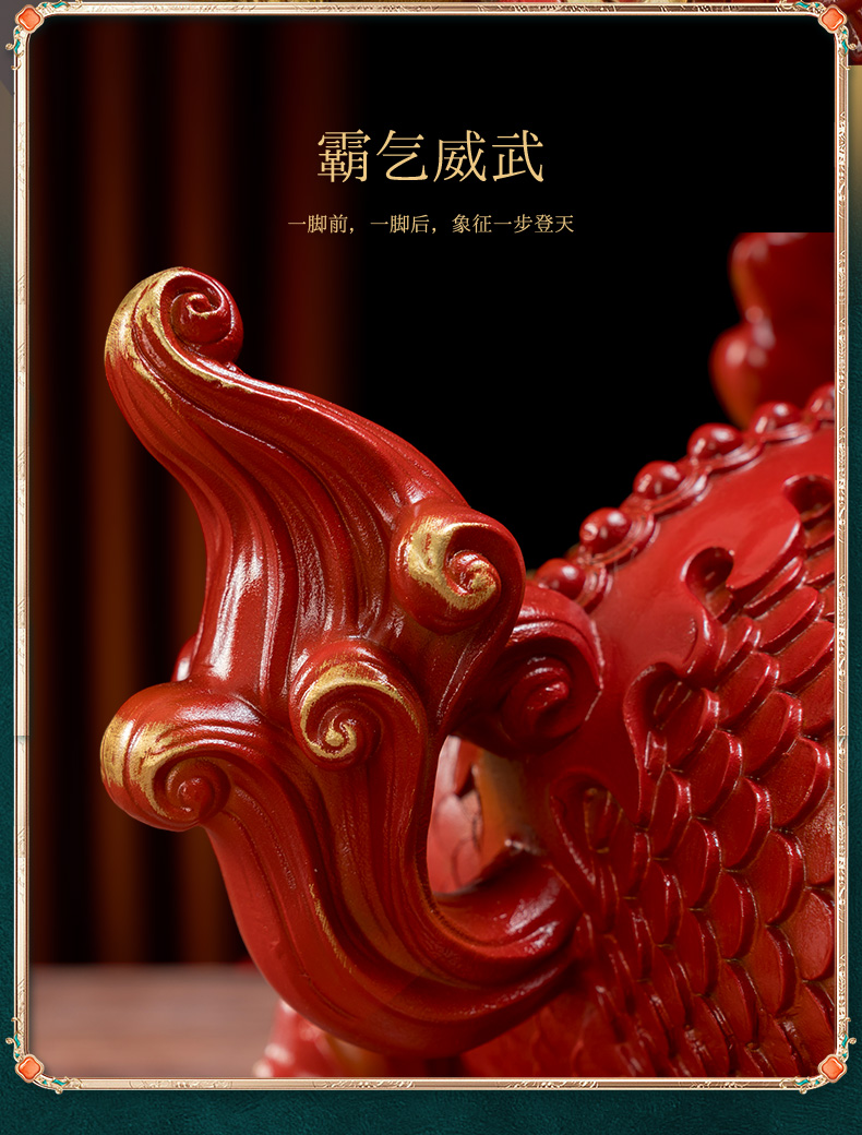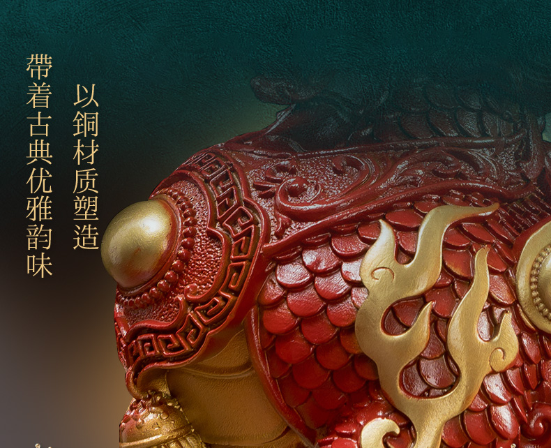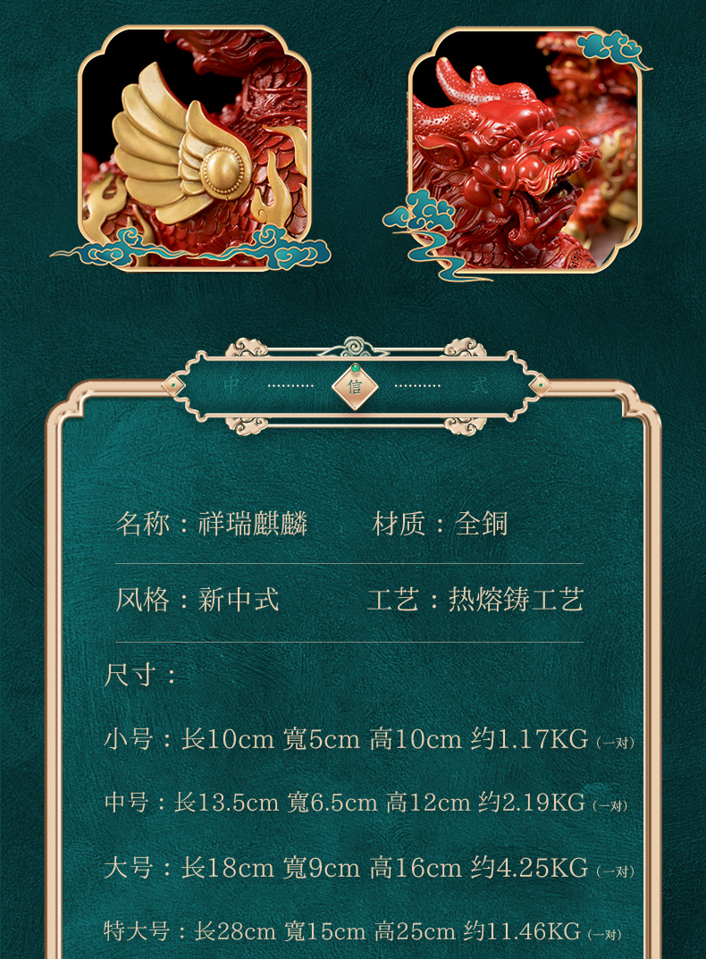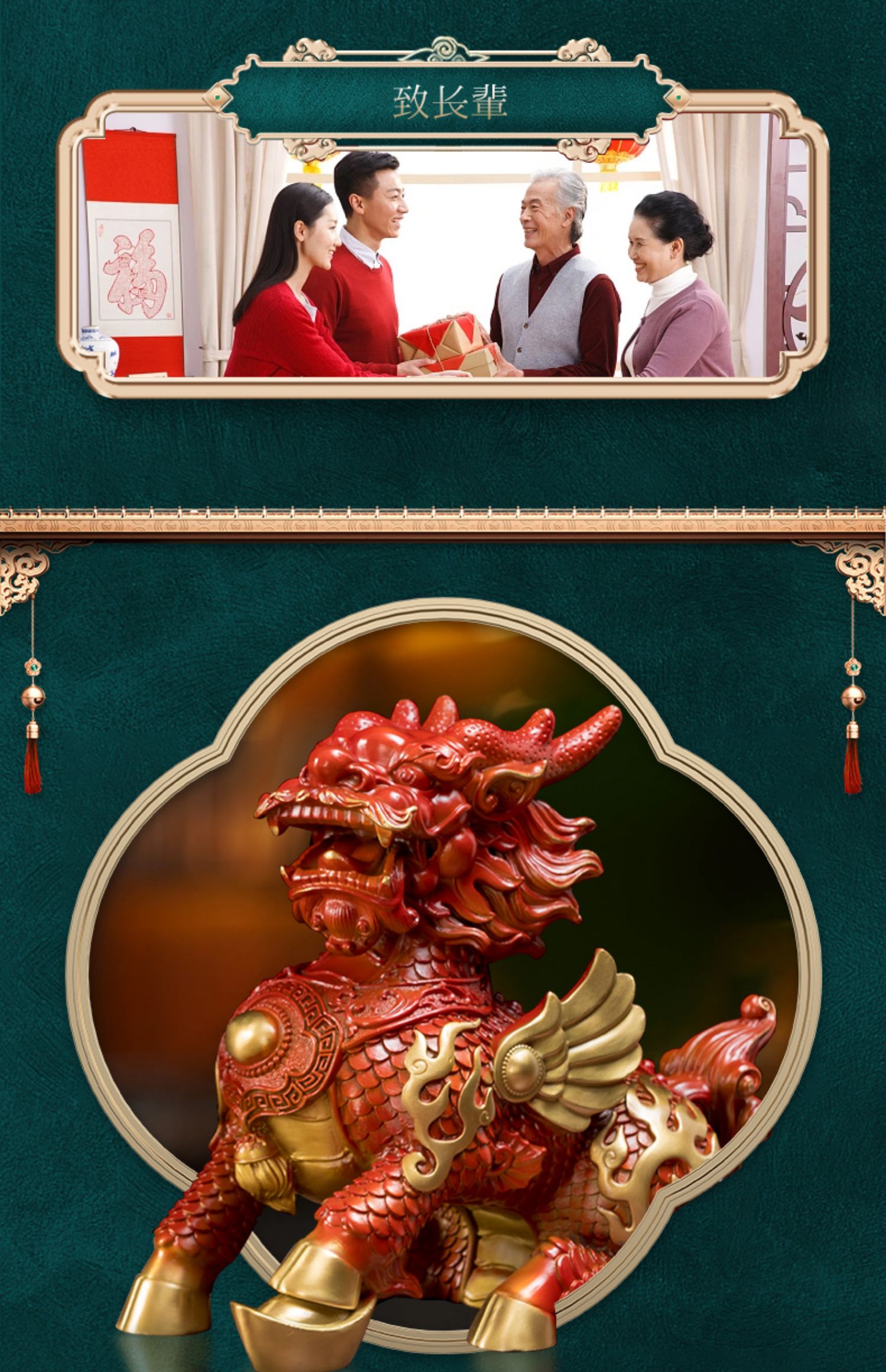 全铜火麒麟摆件公母一对红色公母纯铜黄铜家居办公室客厅玄关装饰