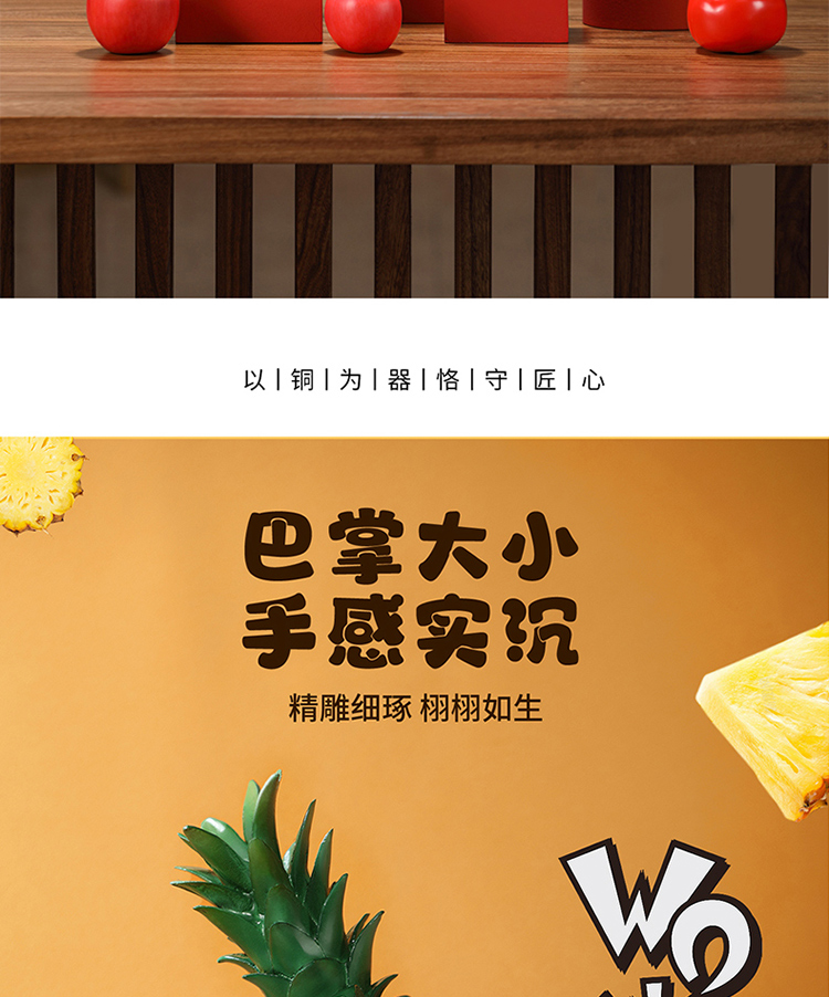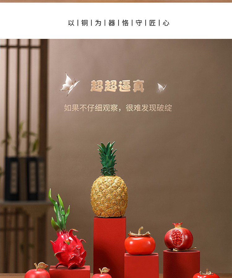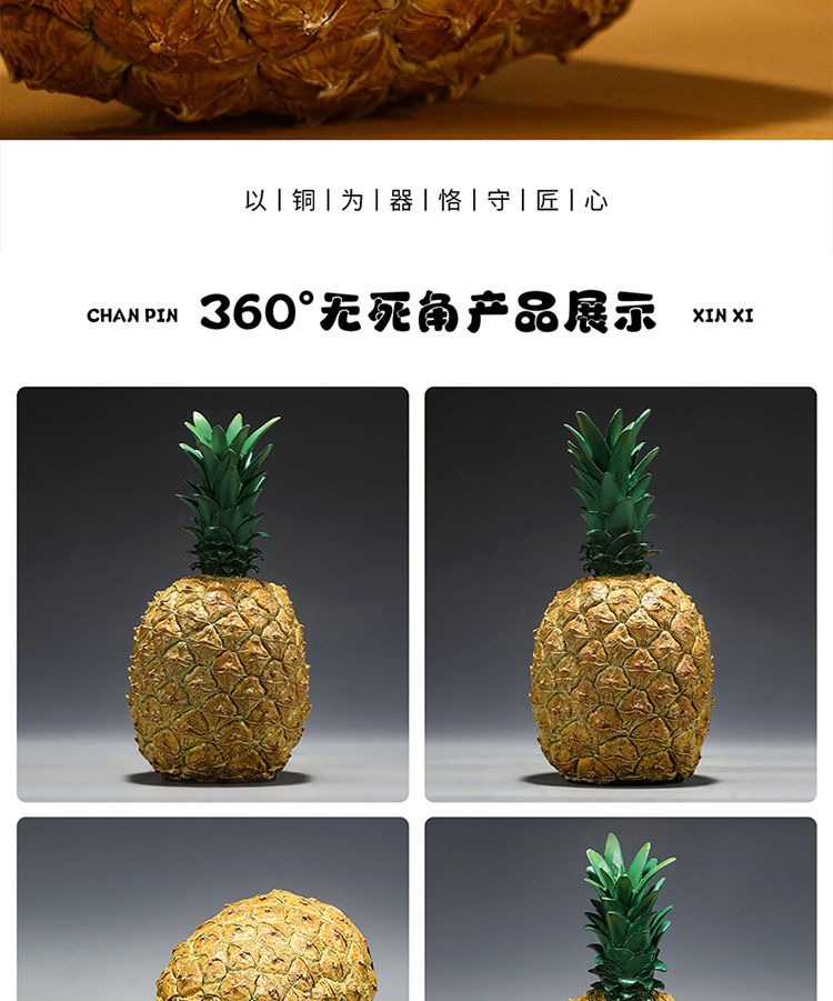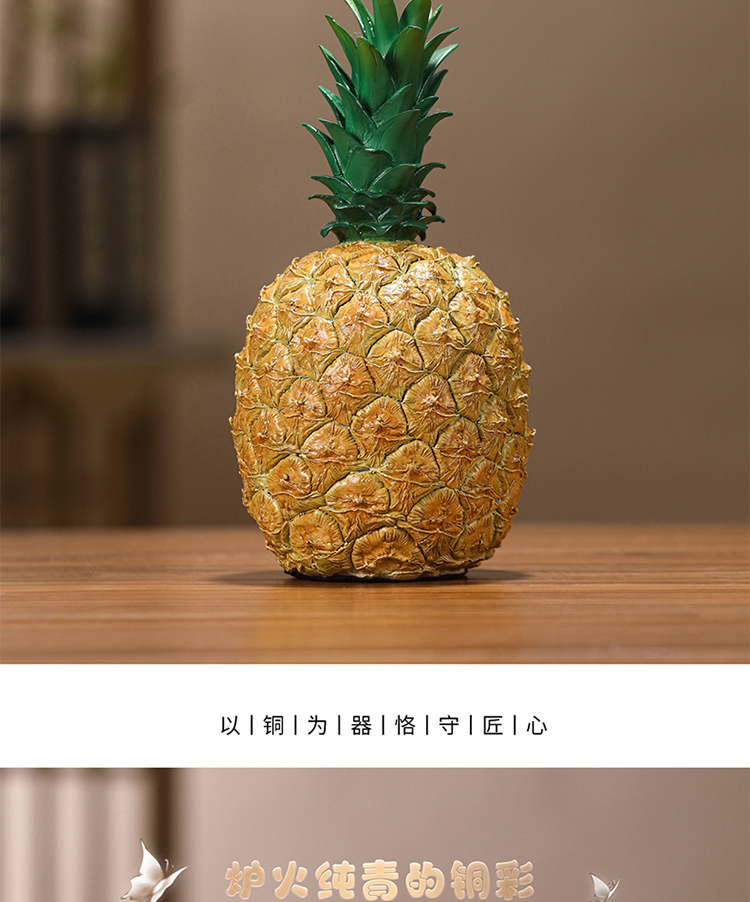 黄铜彩绘仿真水果菠萝凤梨旺来摆件创意家居客厅茶桌面装饰摆设品