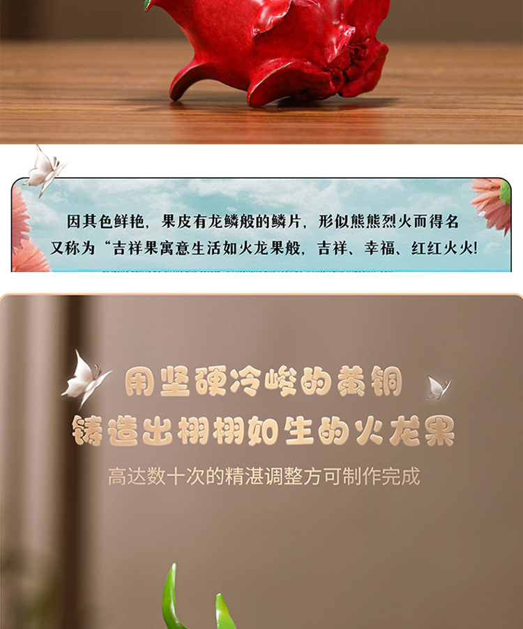 黄铜彩色水果系列仿真火龙果摆件家居客厅茶桌面装饰品暖居摆设品