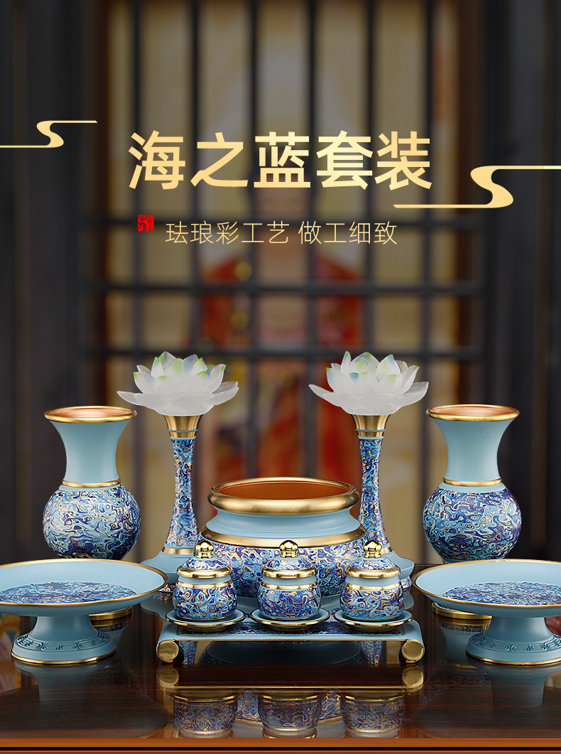 铜佛具用品大全供奉供具供佛家用佛前供水杯供盘香熏炉珐琅彩色