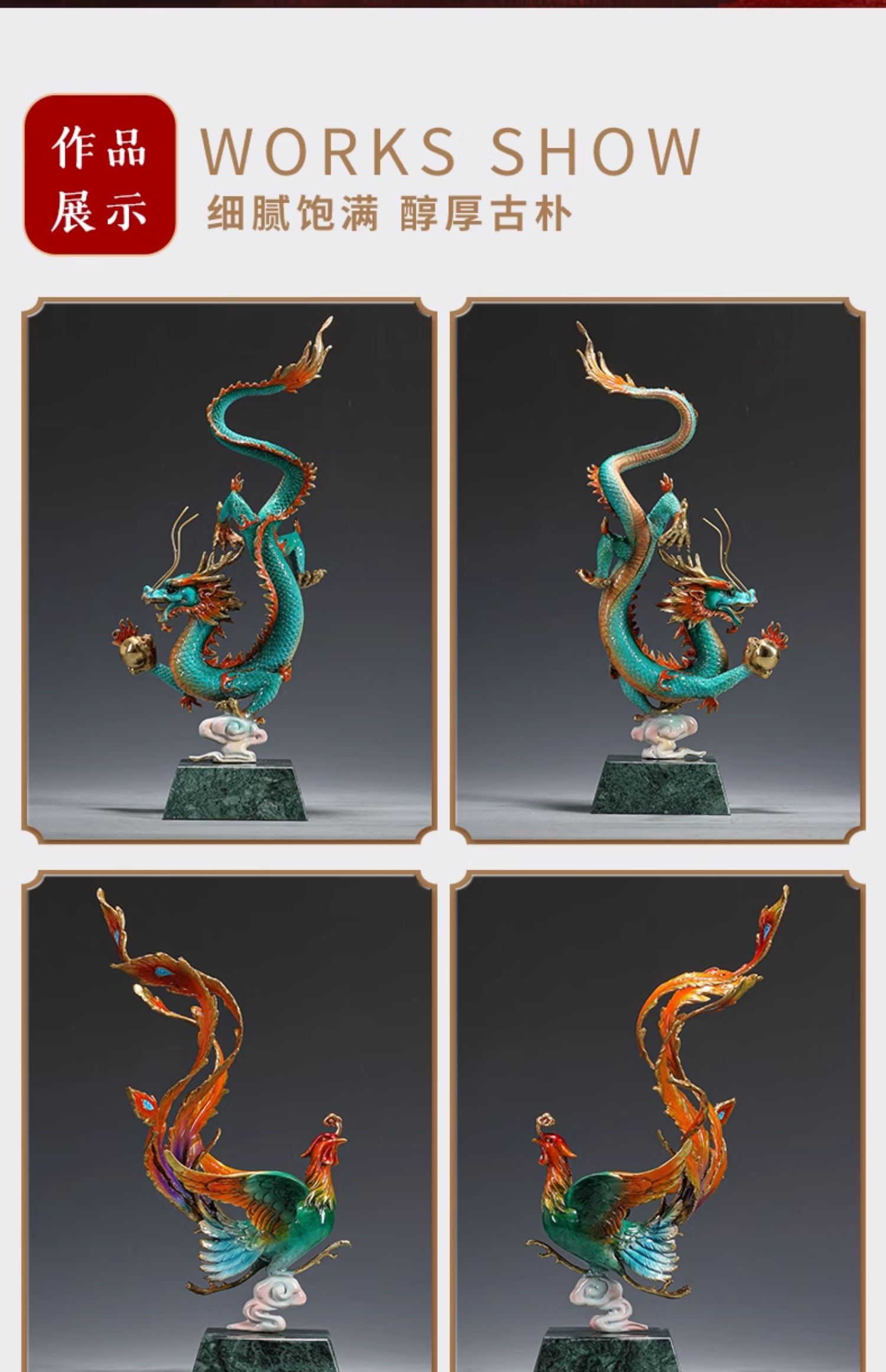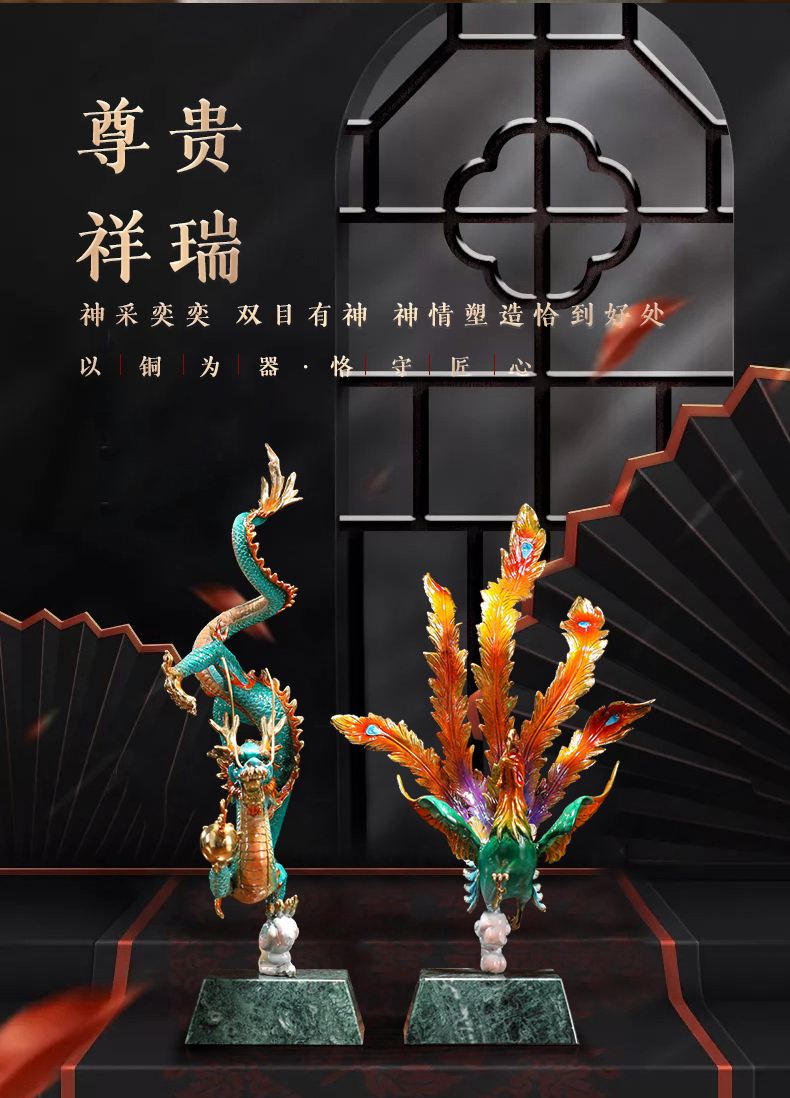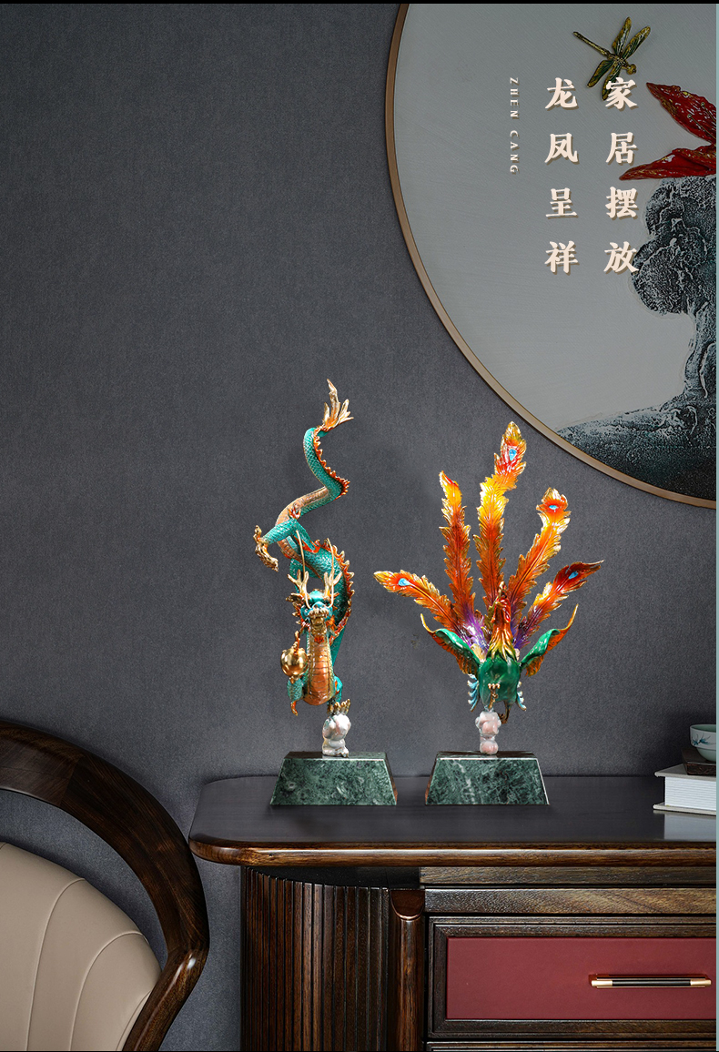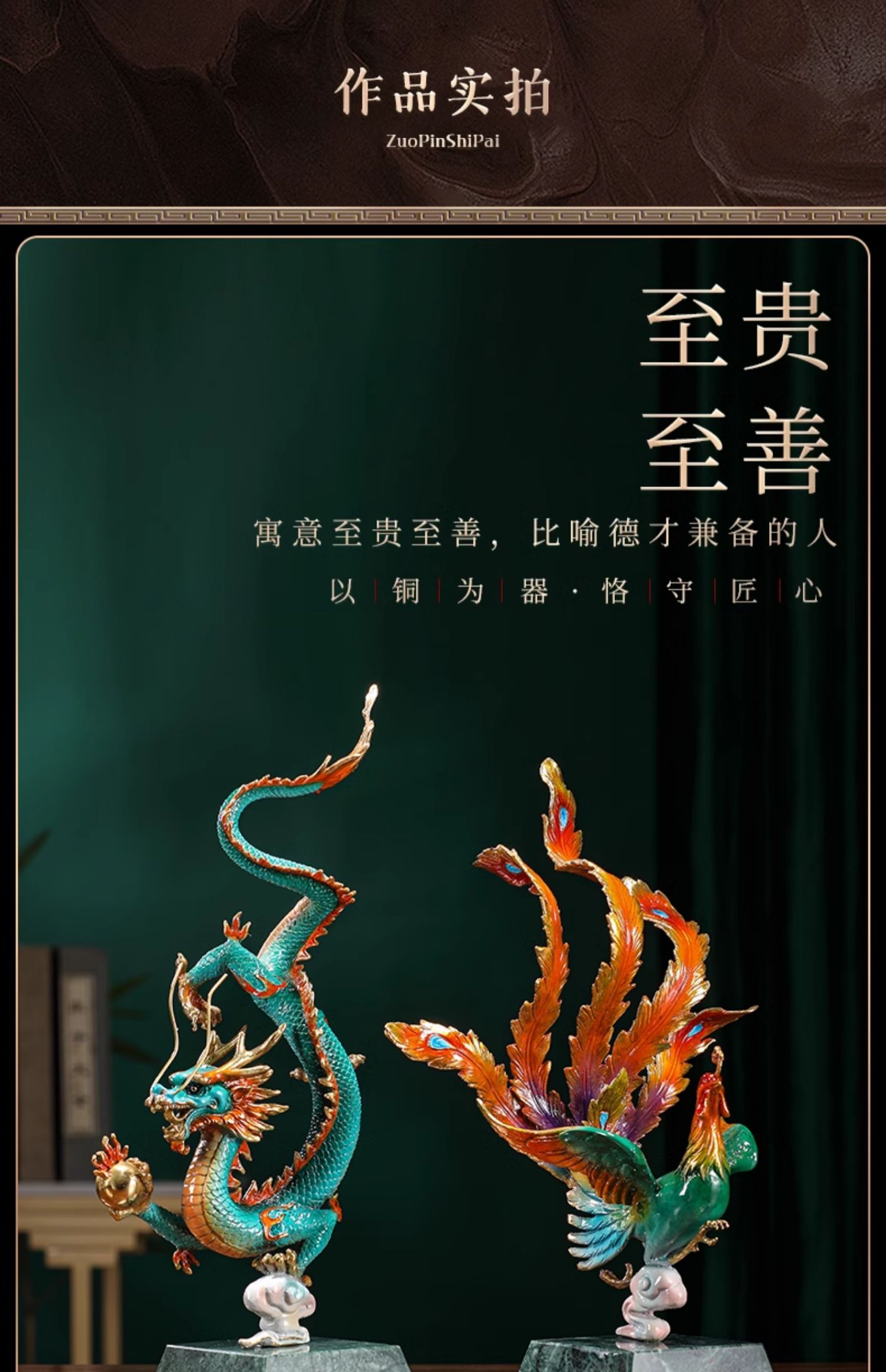 大铜世家黄铜龙凤摆件青龙凤凰装饰品客厅酒柜电视柜开业乔迁礼品