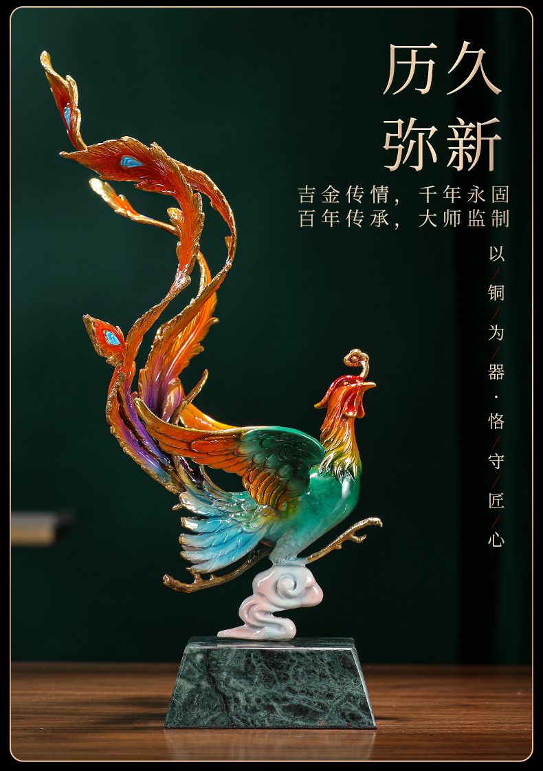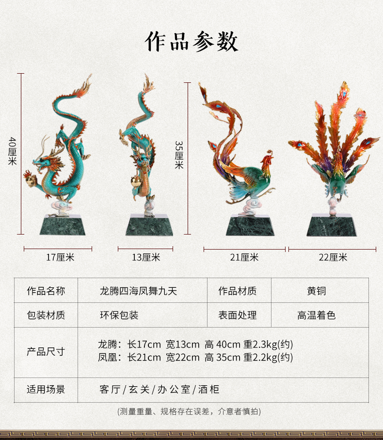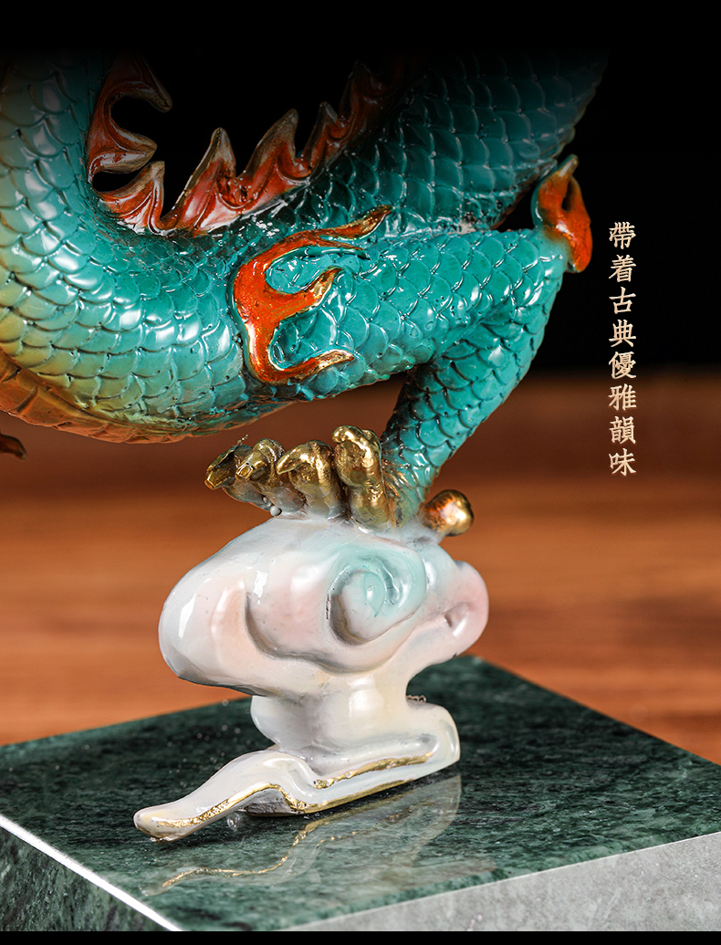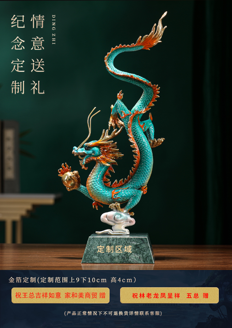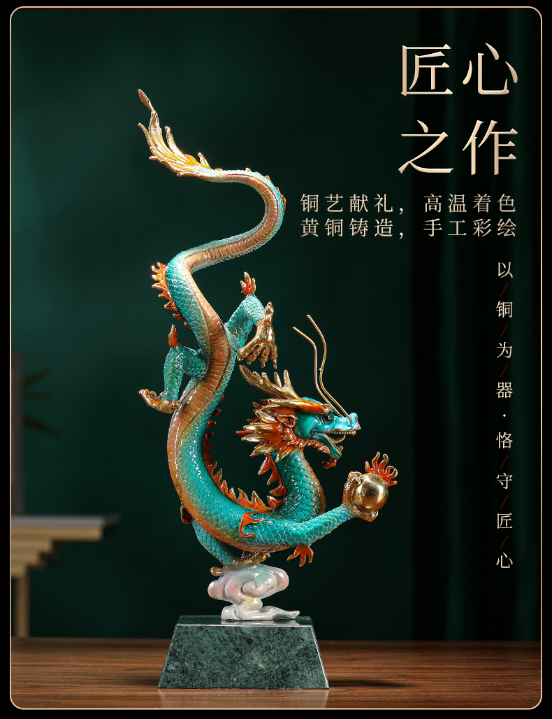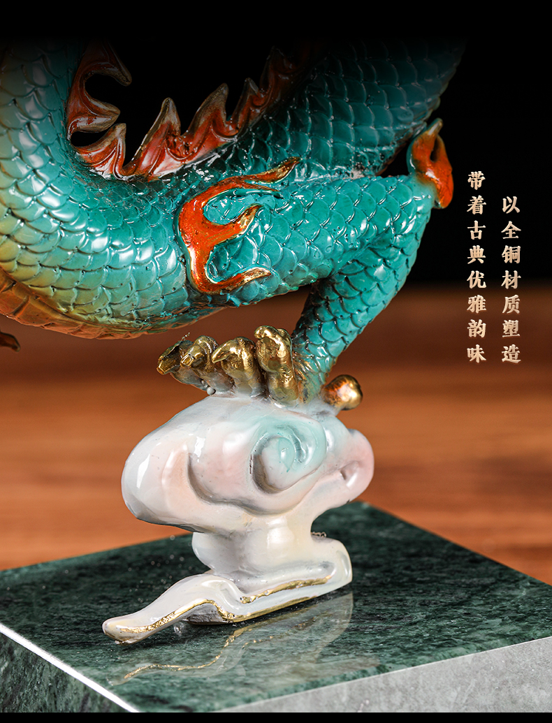 大铜世家黄铜龙凤摆件青龙凤凰装饰品客厅酒柜电视柜开业乔迁礼品