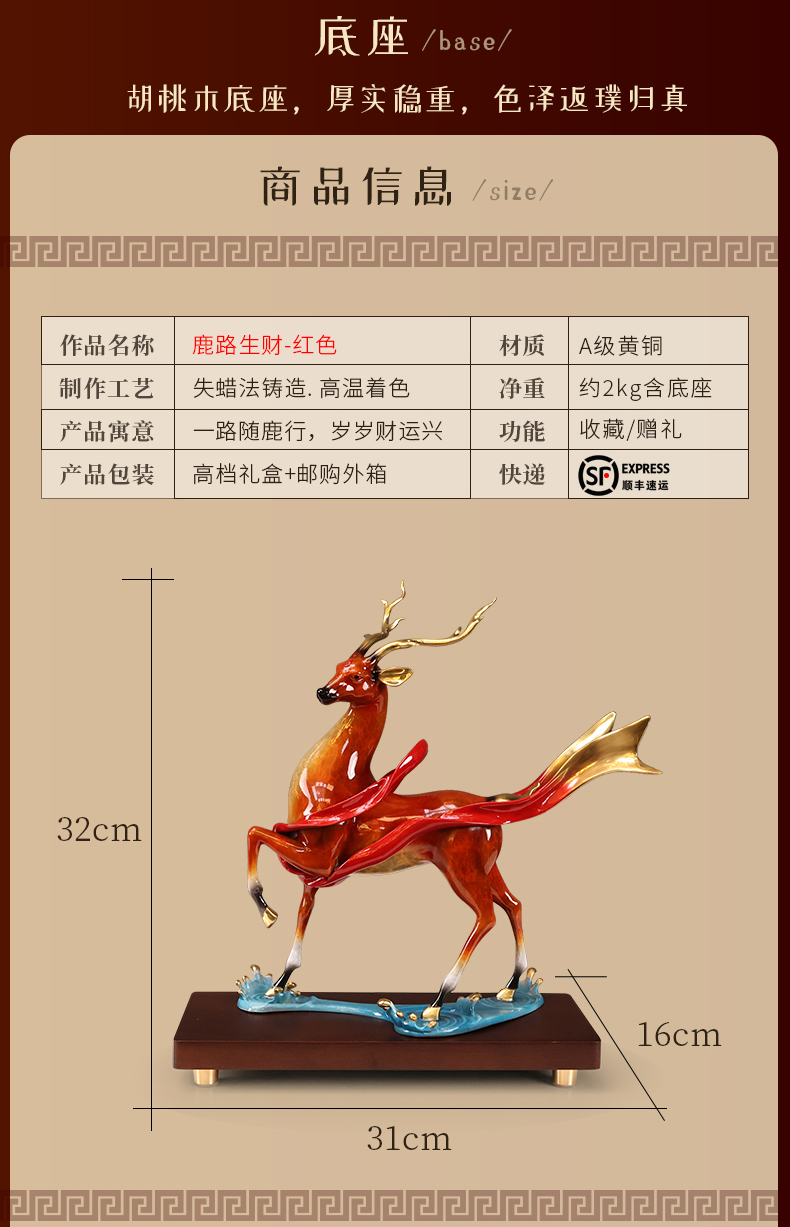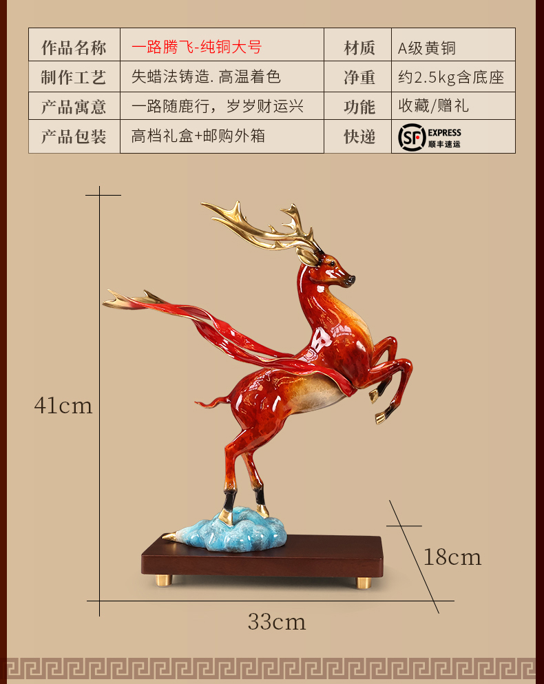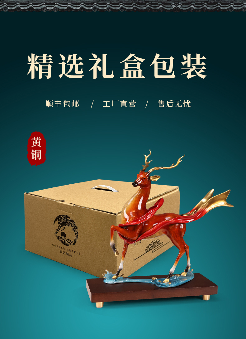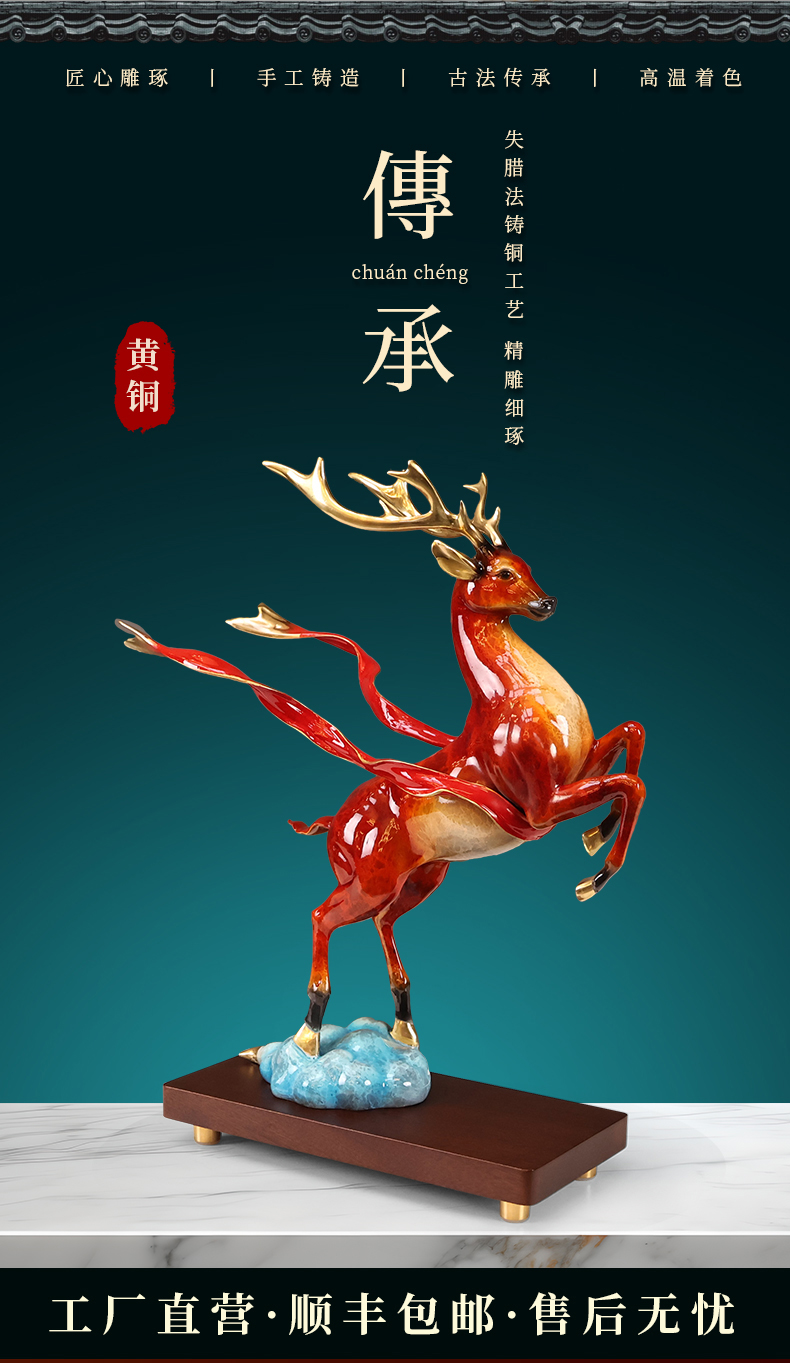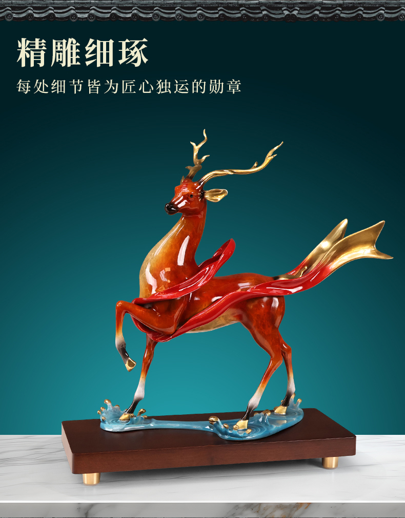 招财缘梅花鹿铜摆件全铜彩绘鹿家居客厅玄关办公室装饰品乔迁礼品