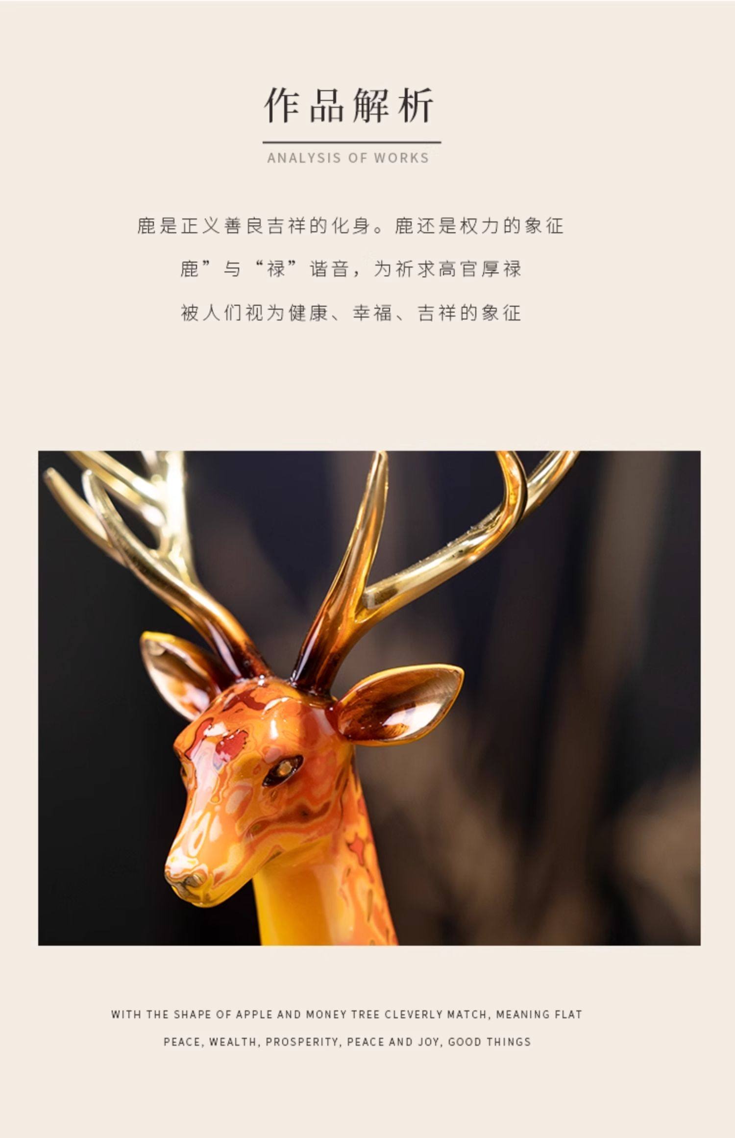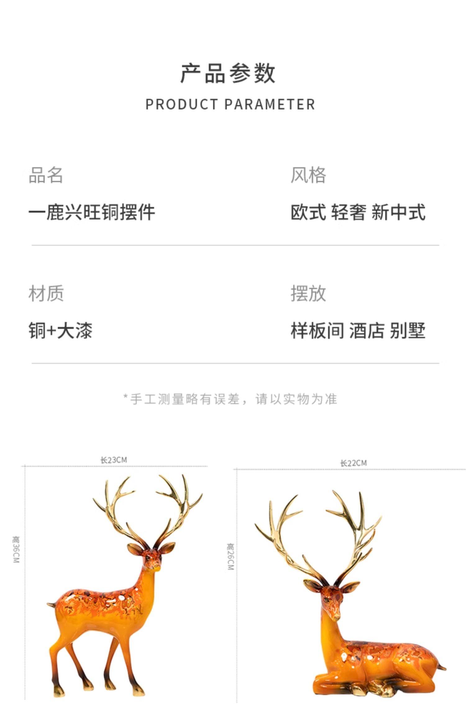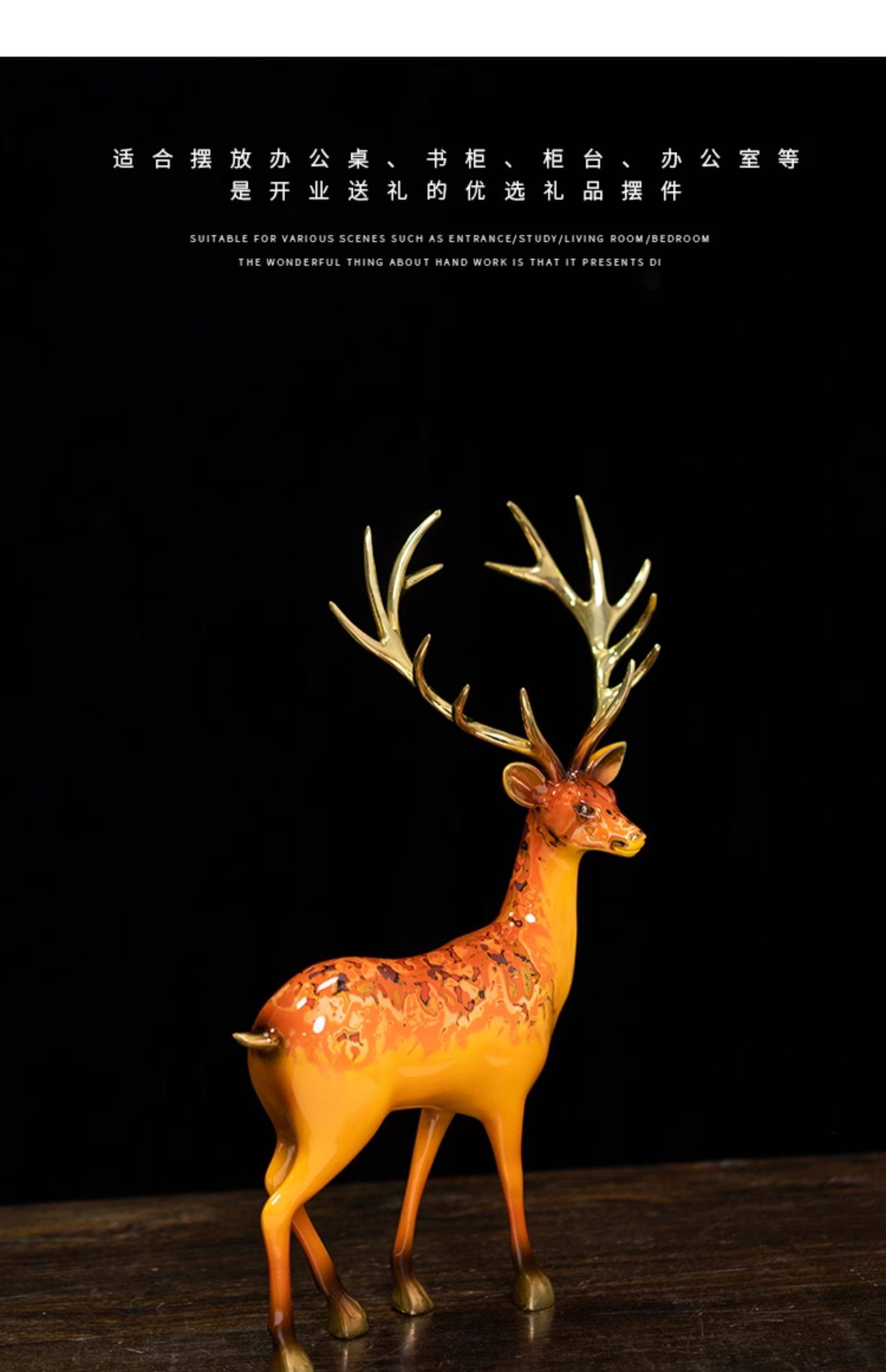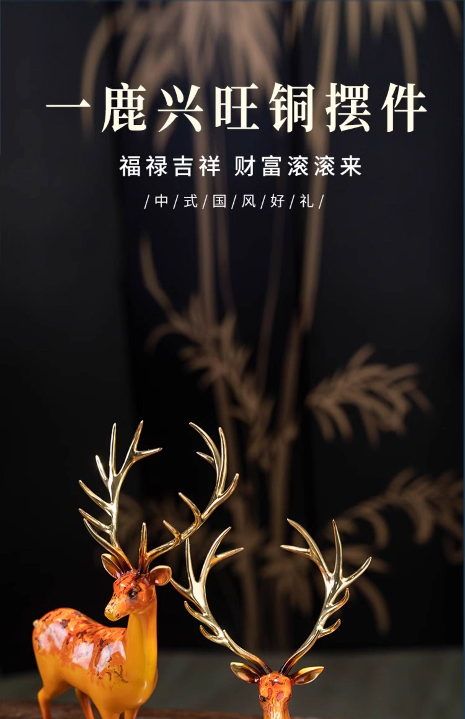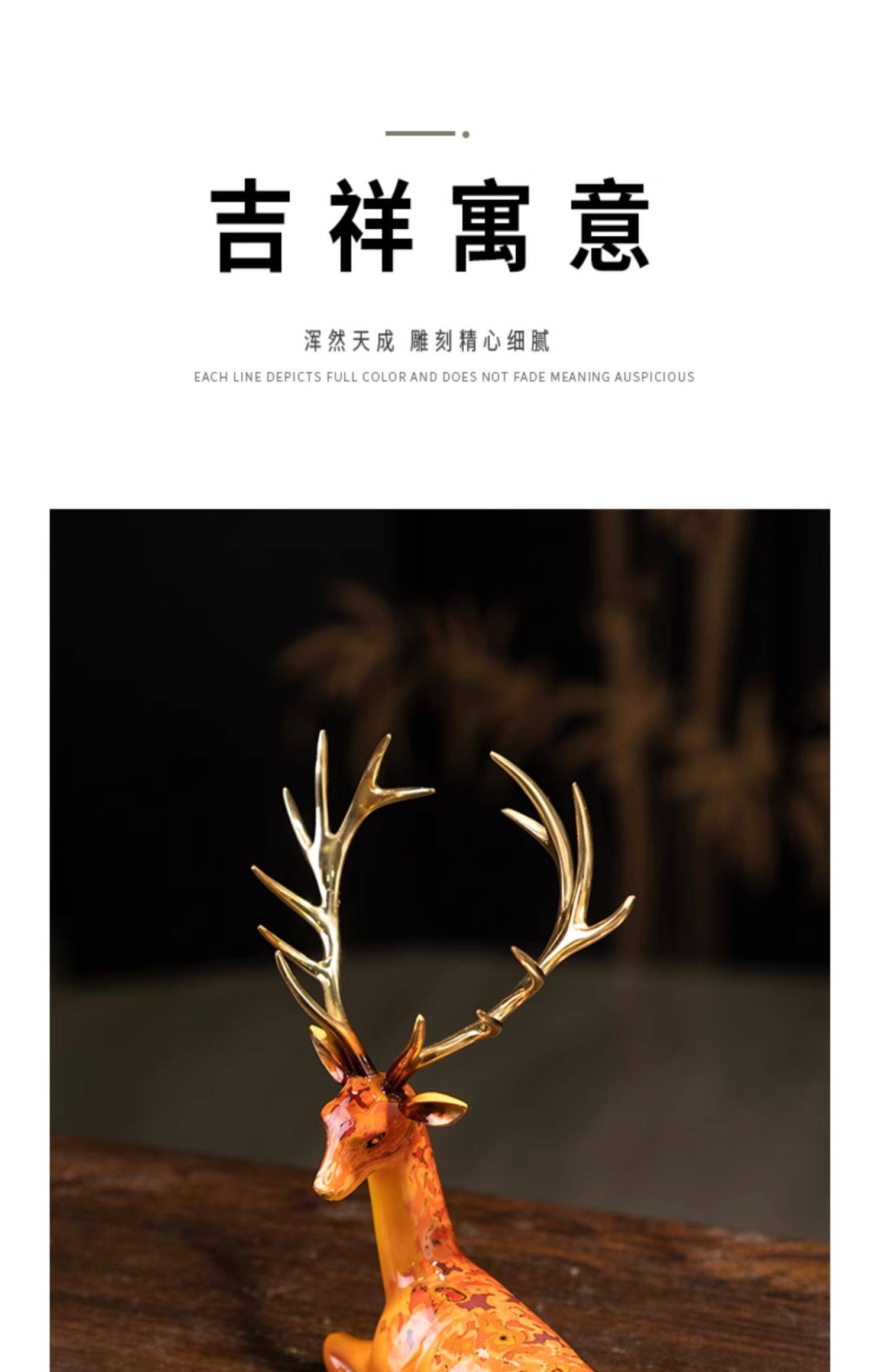 柏梵高档铜鹿摆件新中式客厅玄关大漆铜彩福禄装饰乔迁新居礼品