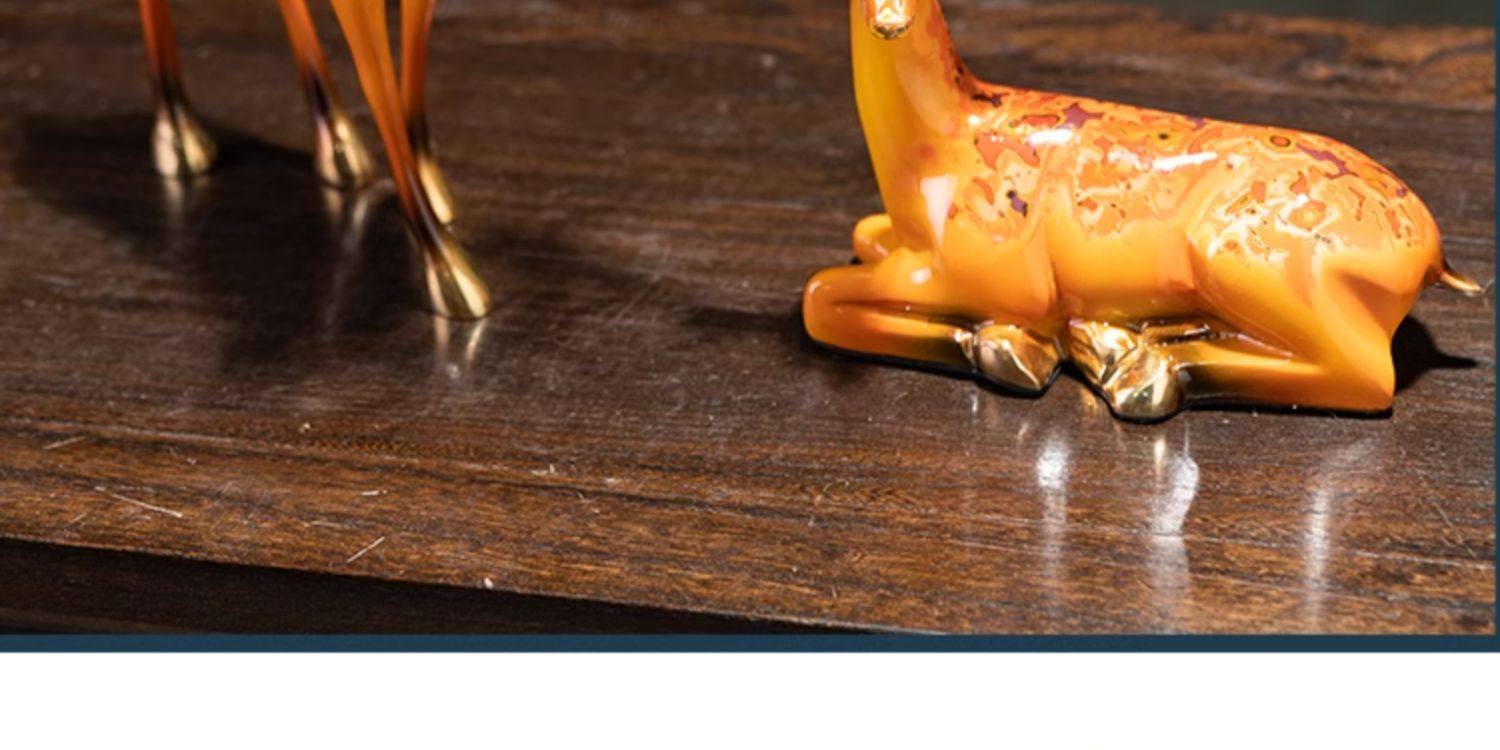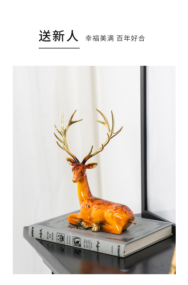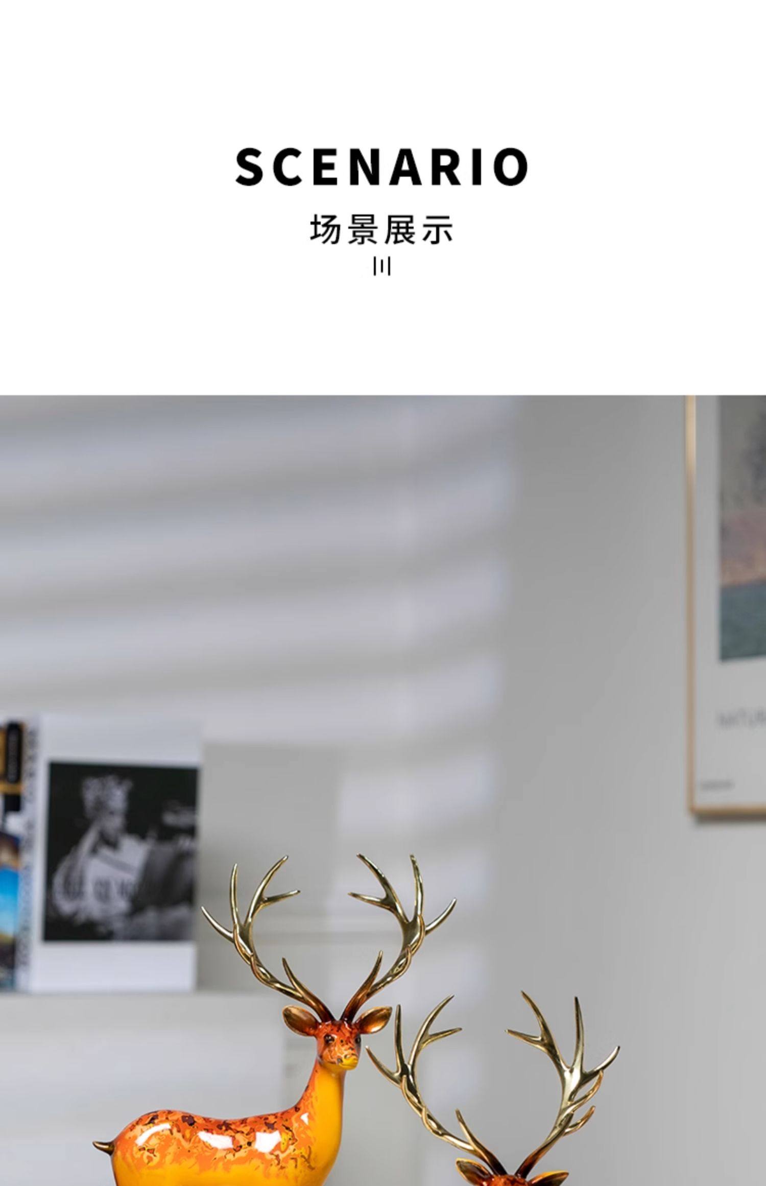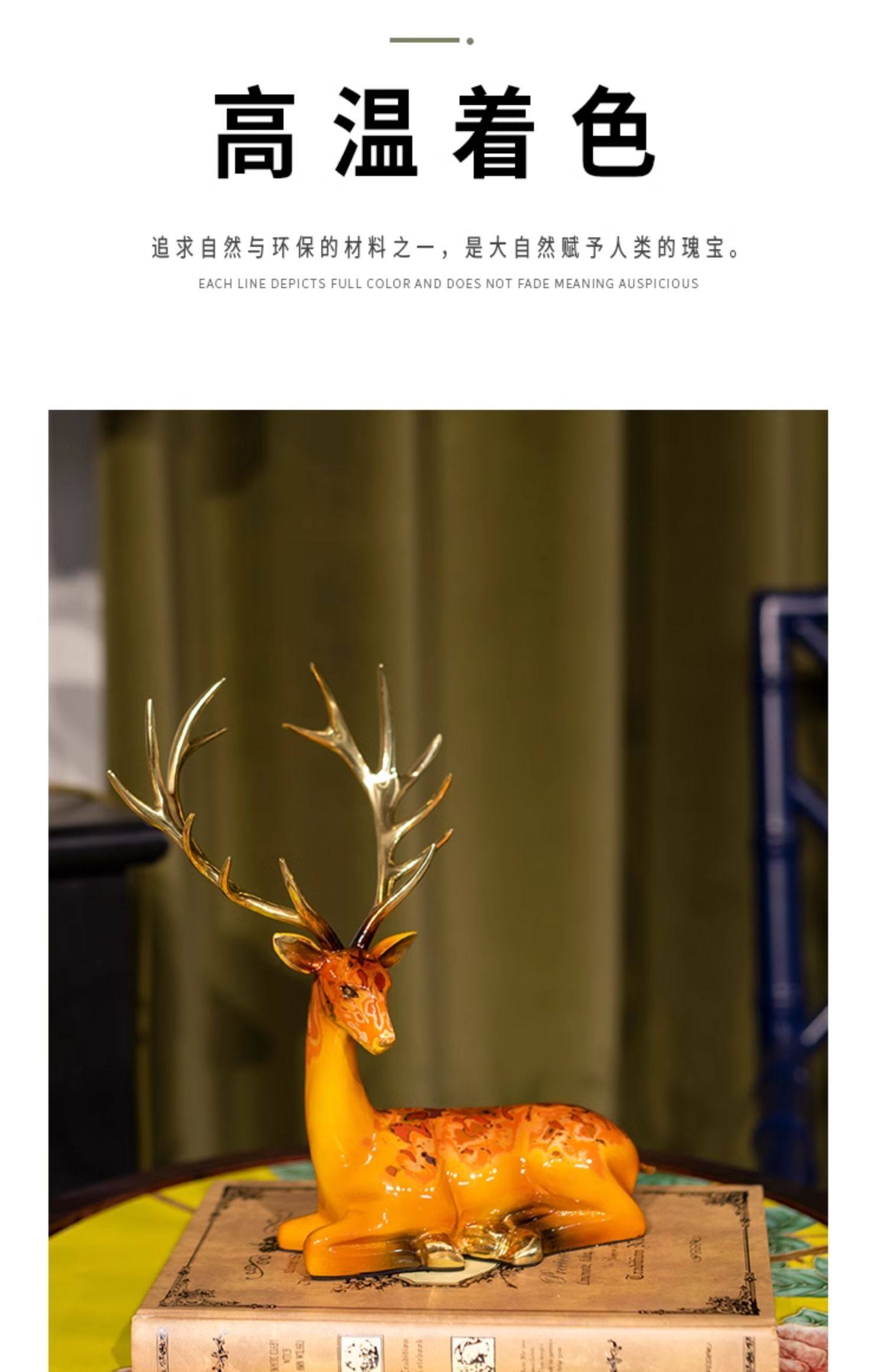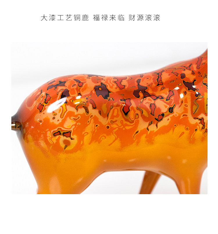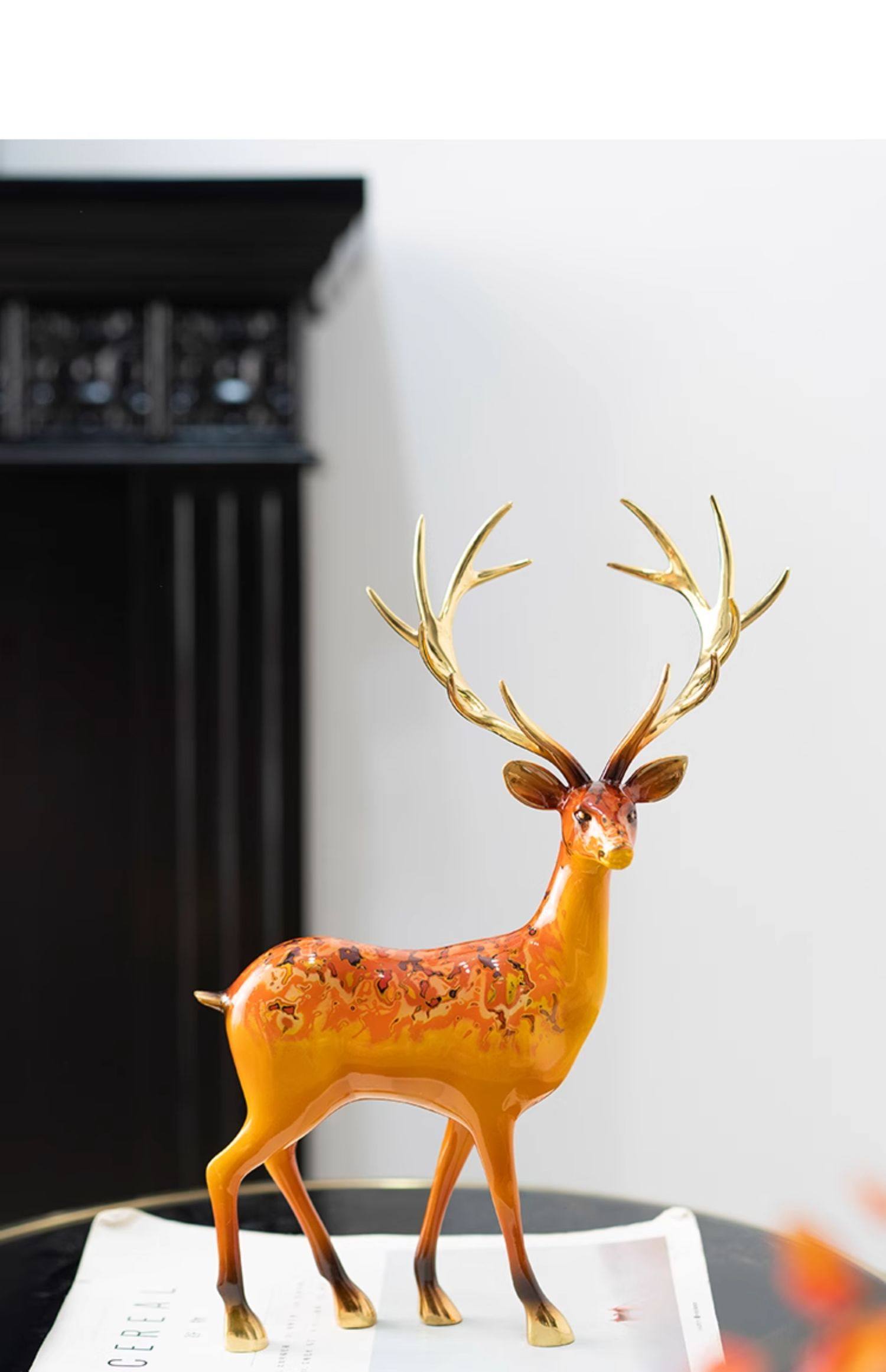 柏梵高档铜鹿摆件新中式客厅玄关大漆铜彩福禄装饰乔迁新居礼品