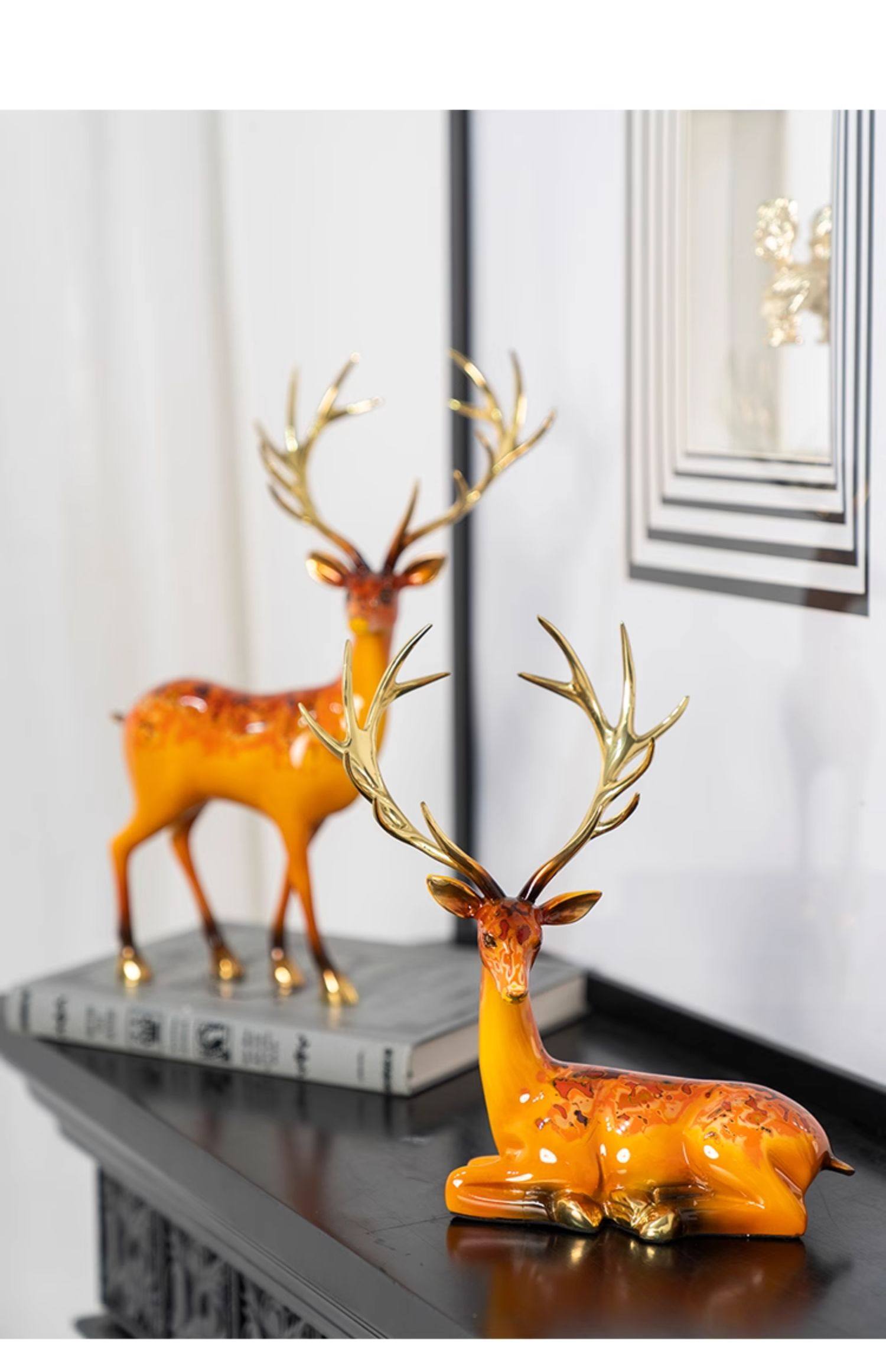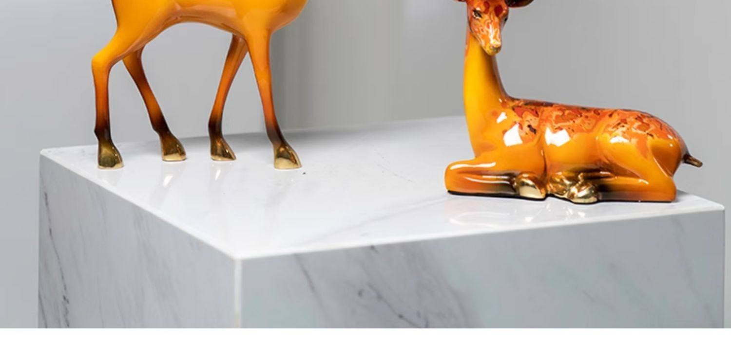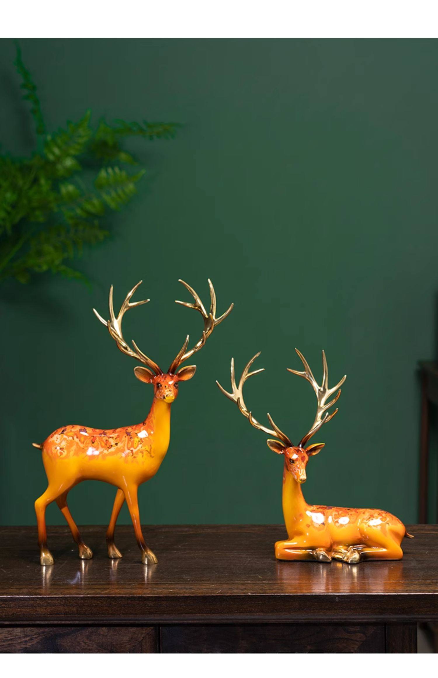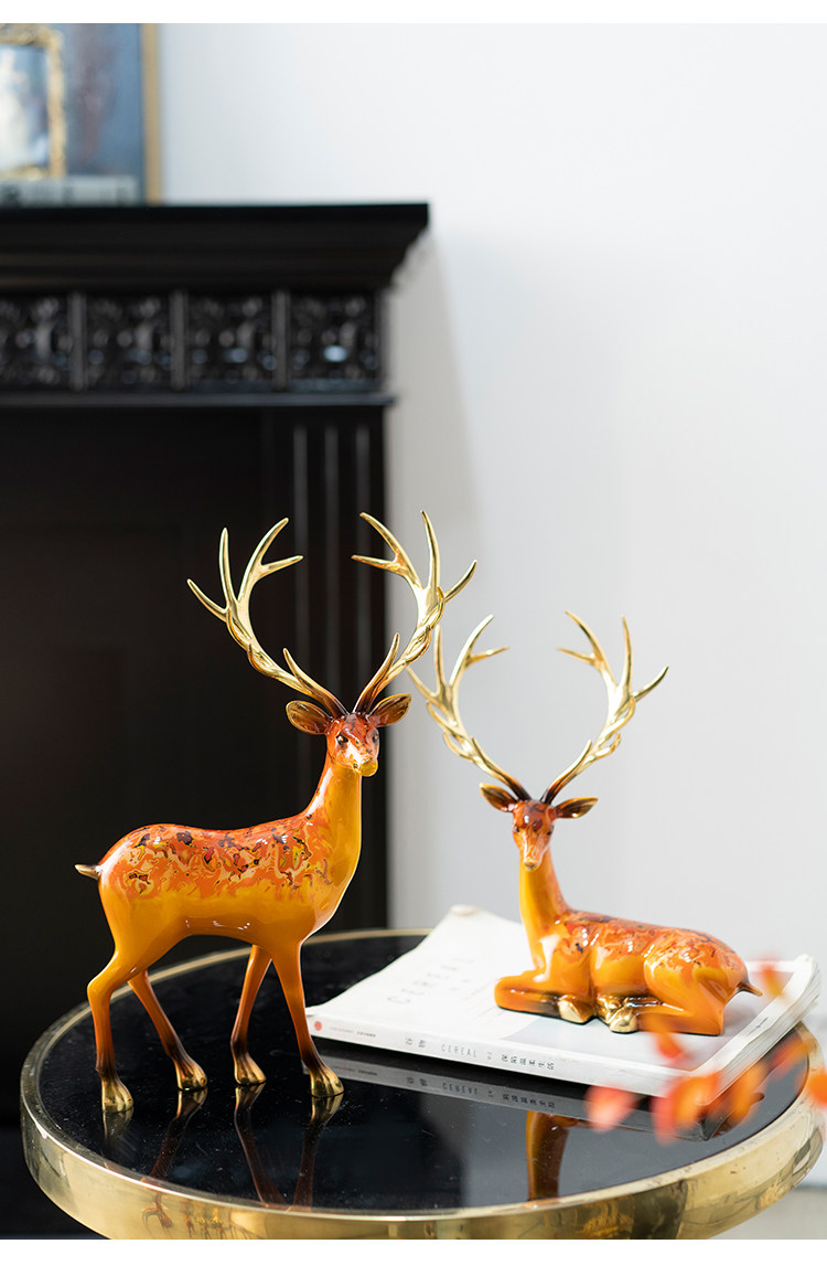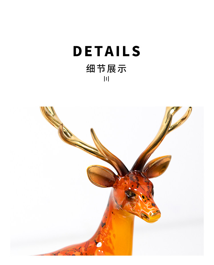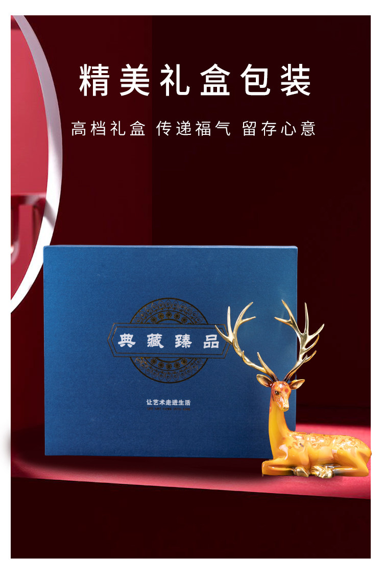 柏梵高档铜鹿摆件新中式客厅玄关大漆铜彩福禄装饰乔迁新居礼品