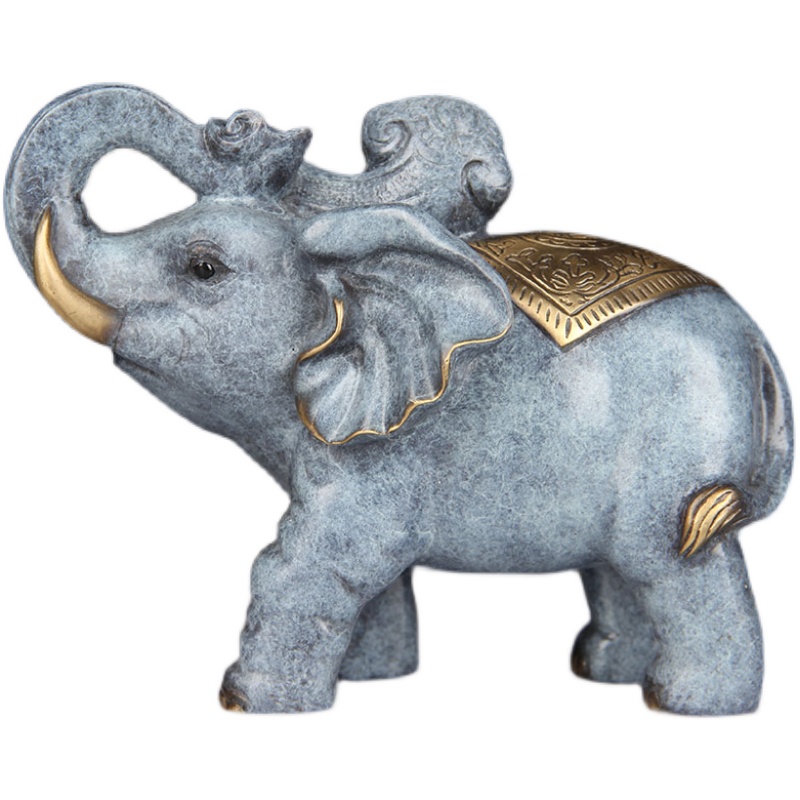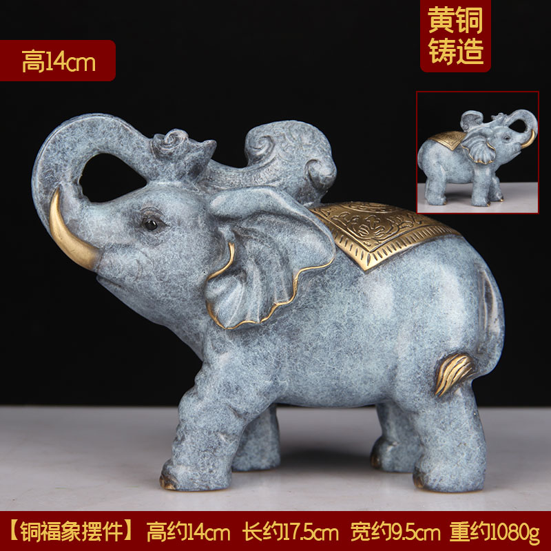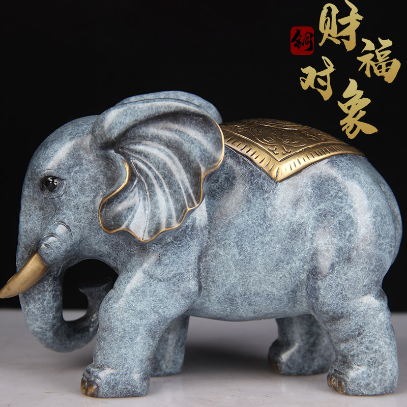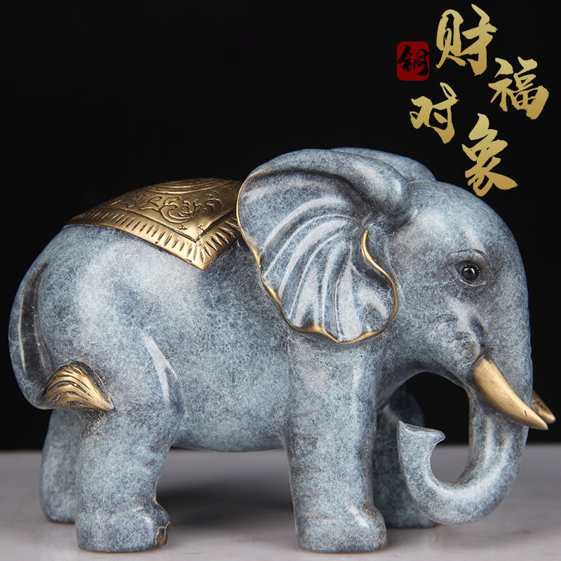 铜大小摆件 彩绘蓝白色铜财福象摆件 铜吸水象