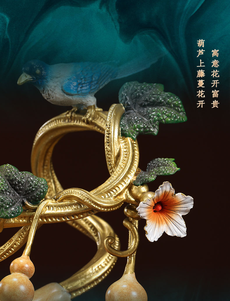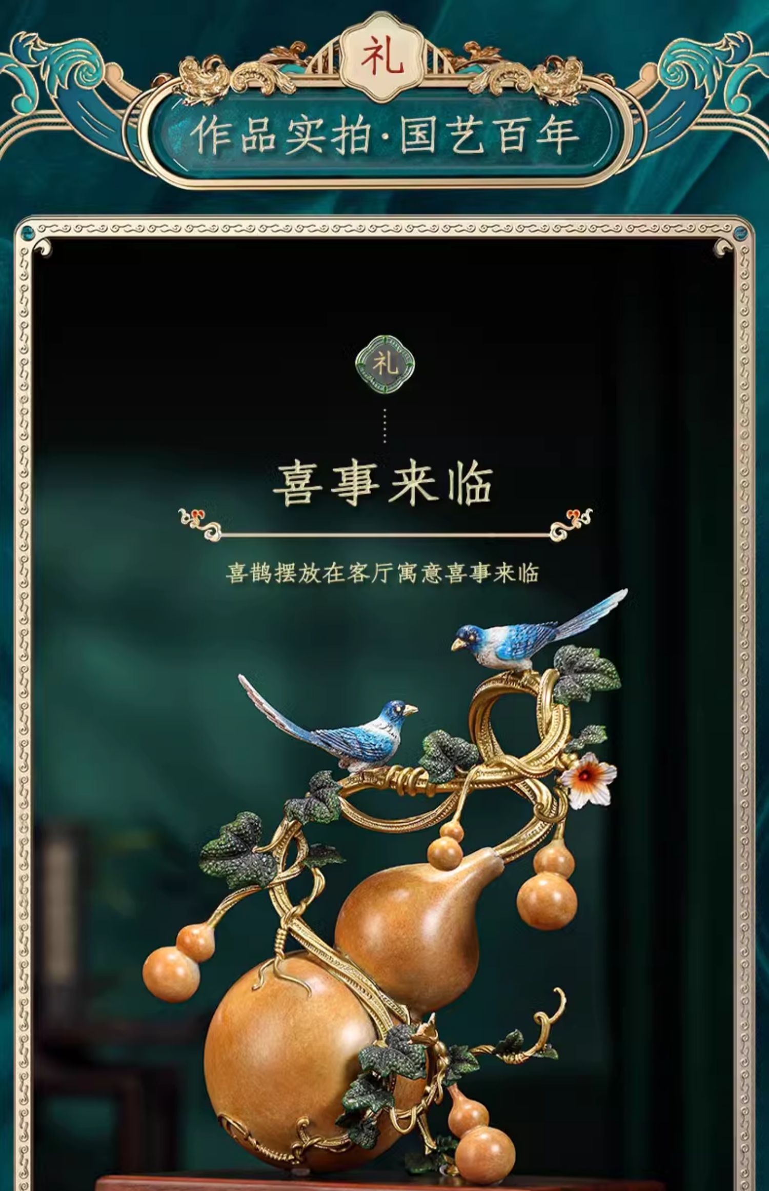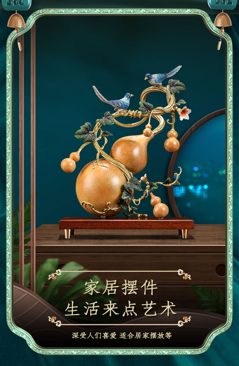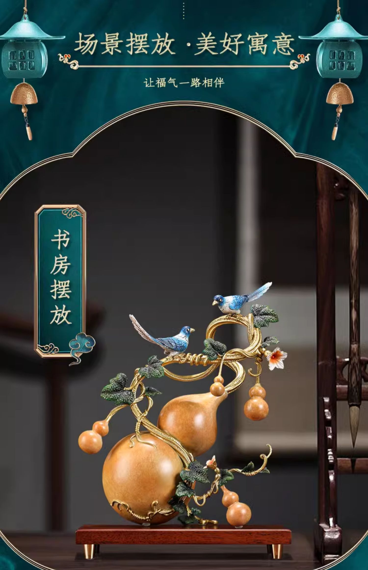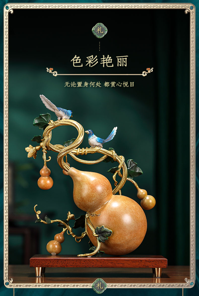 福禄满堂黄铜葫芦摆件中式家居客厅办公室收藏装饰品乔迁新居礼品