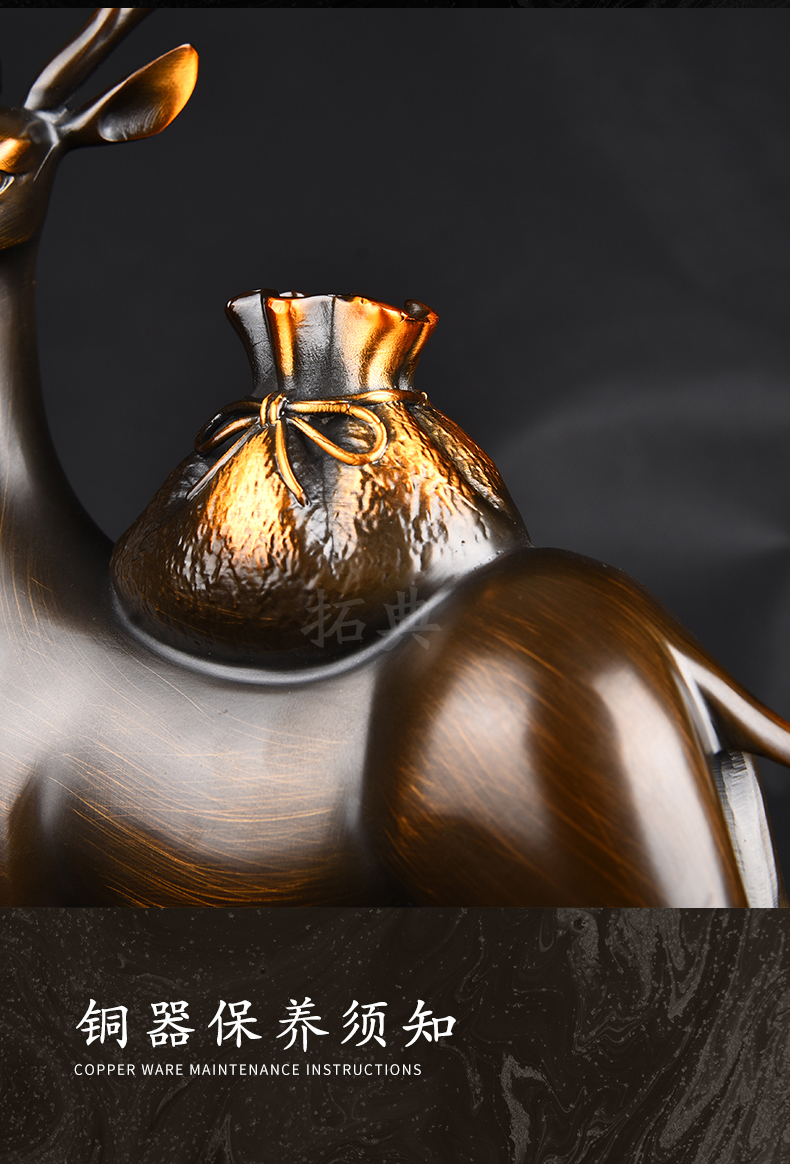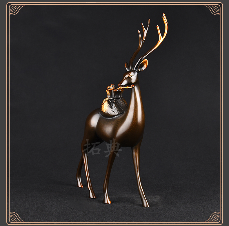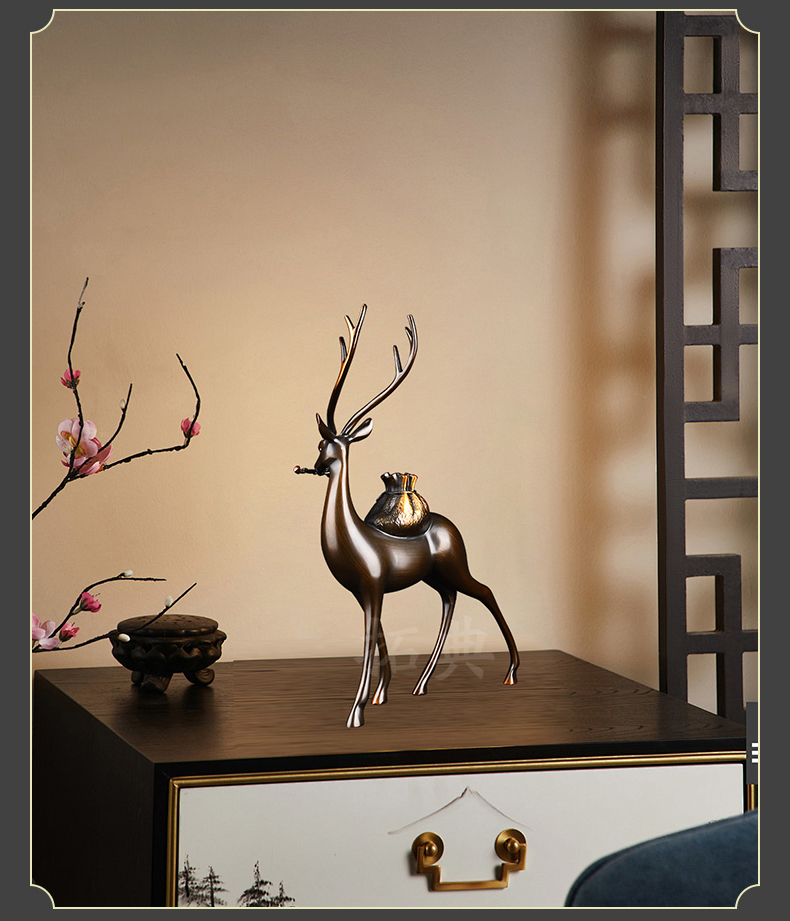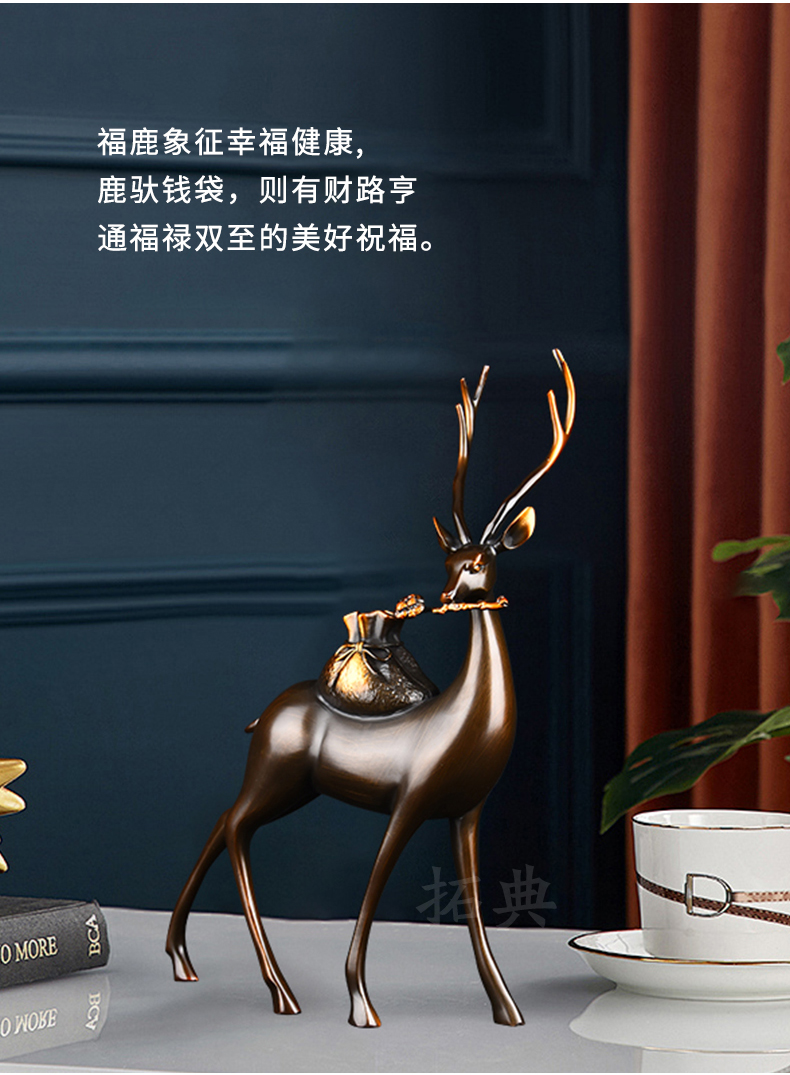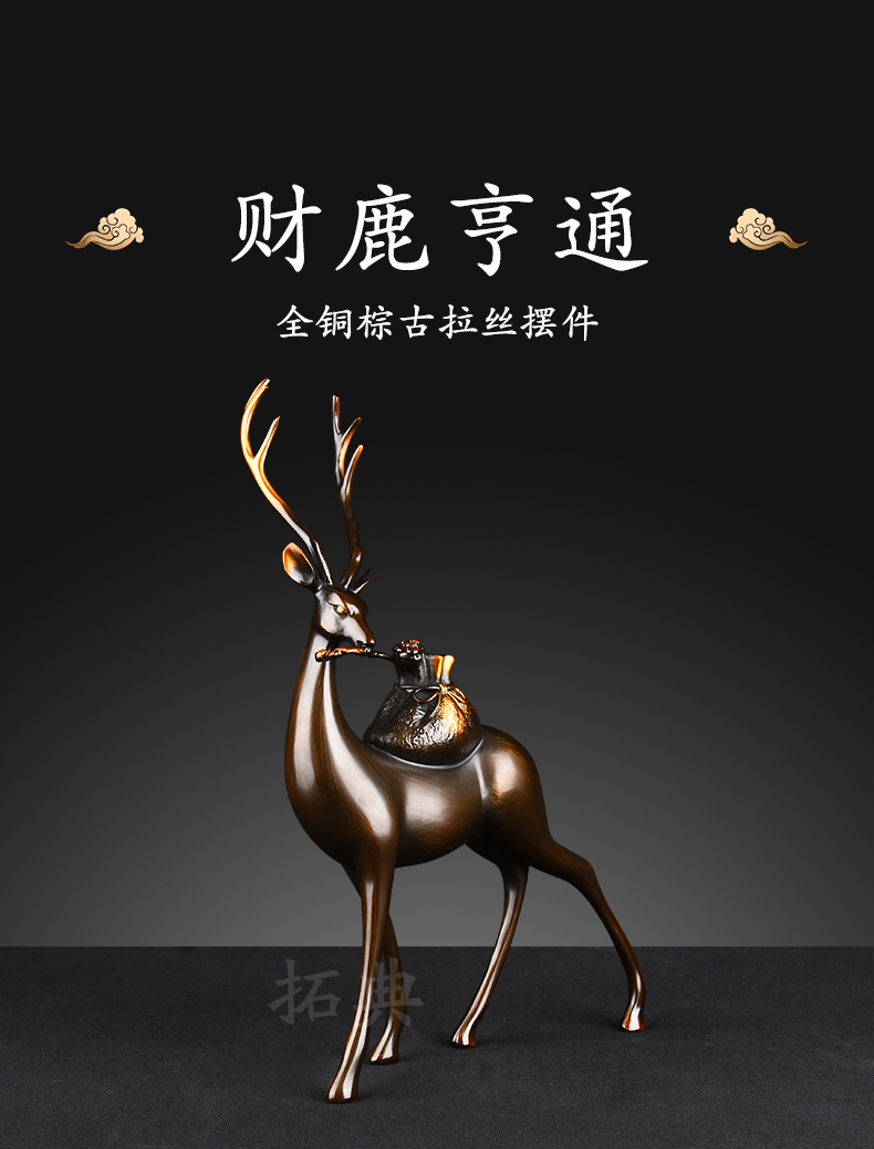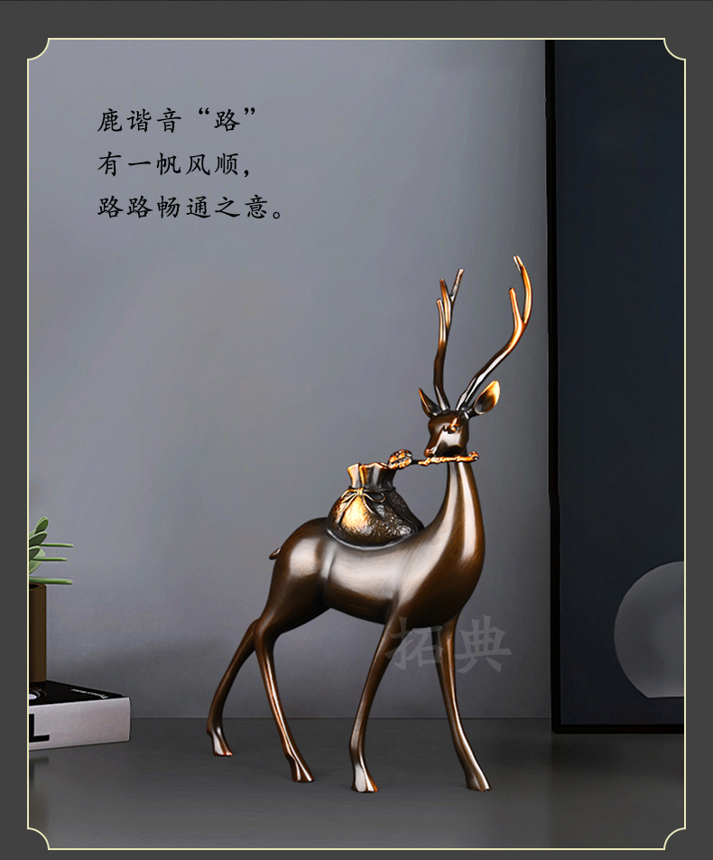 财鹿亨通招财铜鹿摆件电视柜客厅书房玄关装饰办公室礼物桌面摆设
