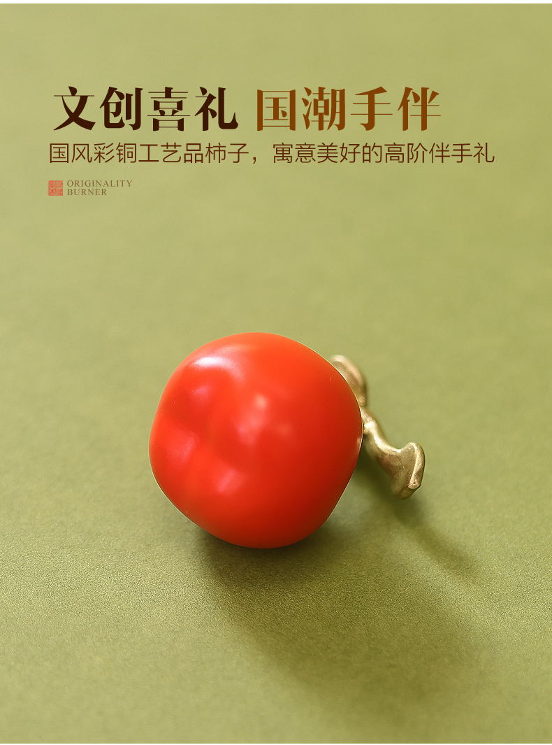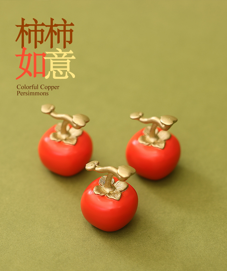 铜柿子小摆件家居装饰乔迁搬家开业送礼工艺品彩铜失蜡法创意礼品