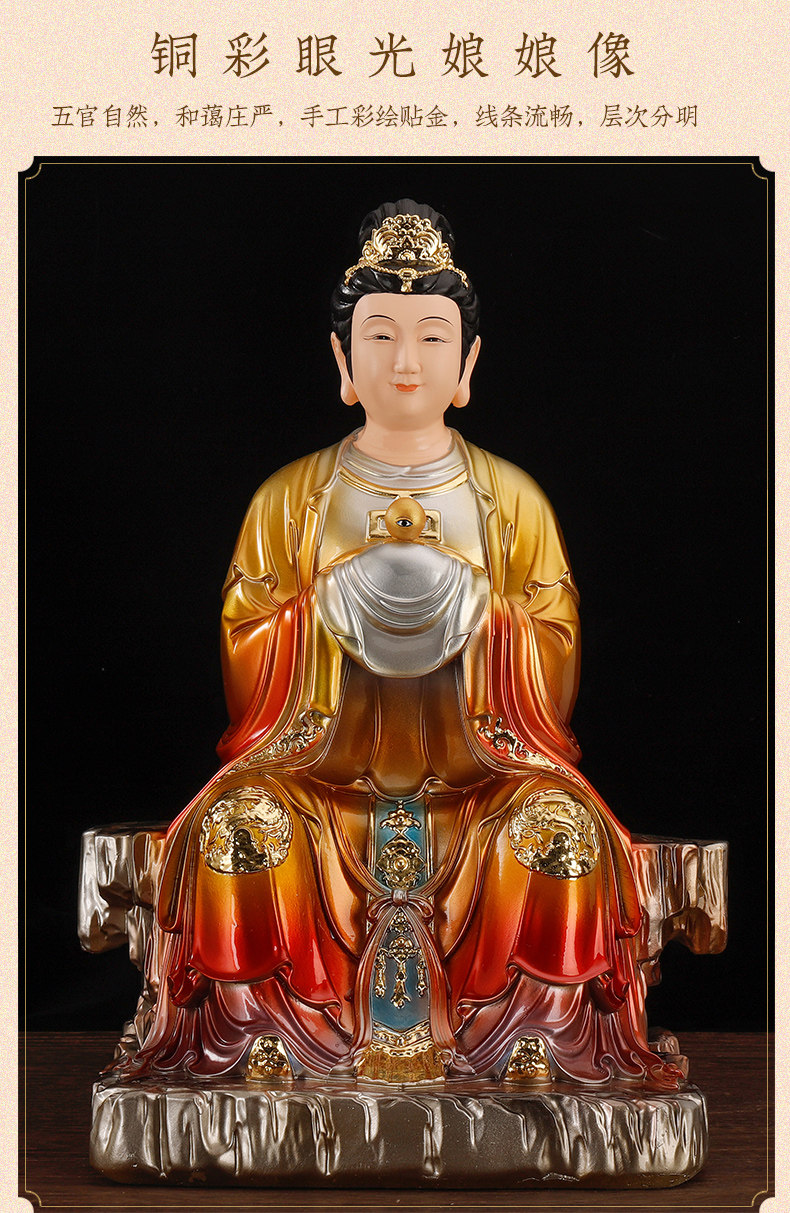 新款树脂铜彩眼光娘娘眼王奶奶像眼光圣母明目元君家用供奉摆件