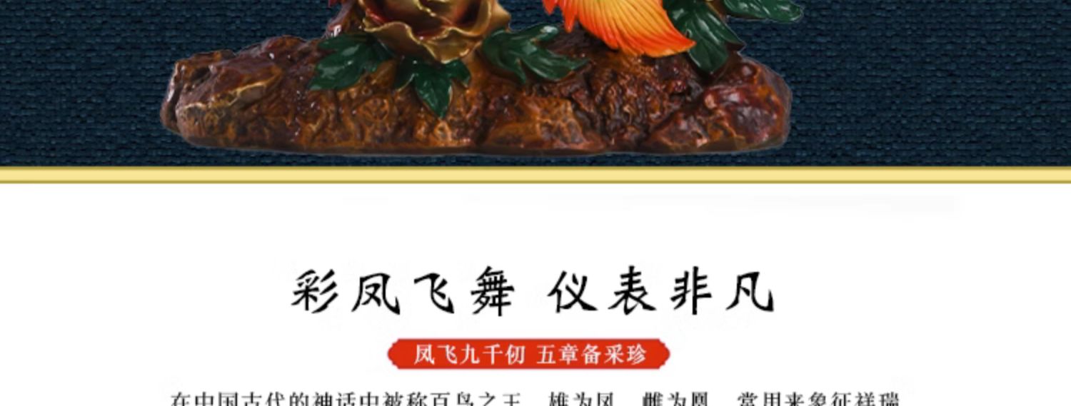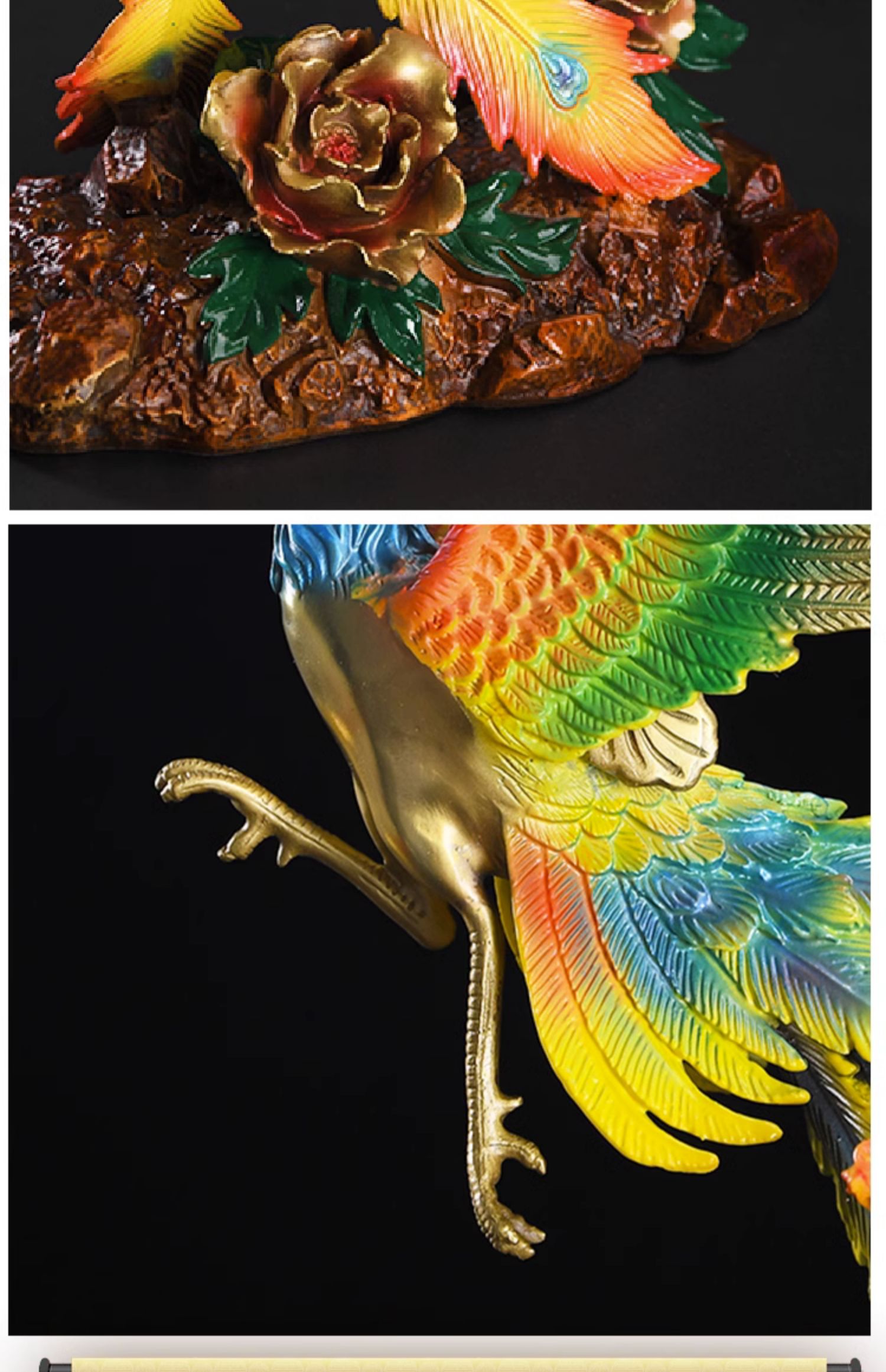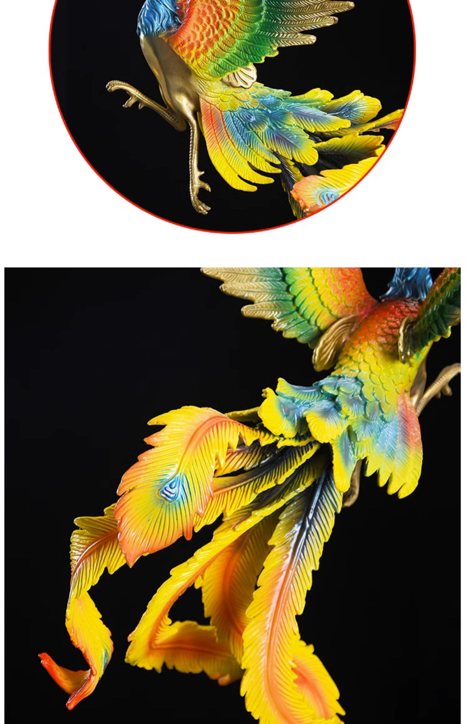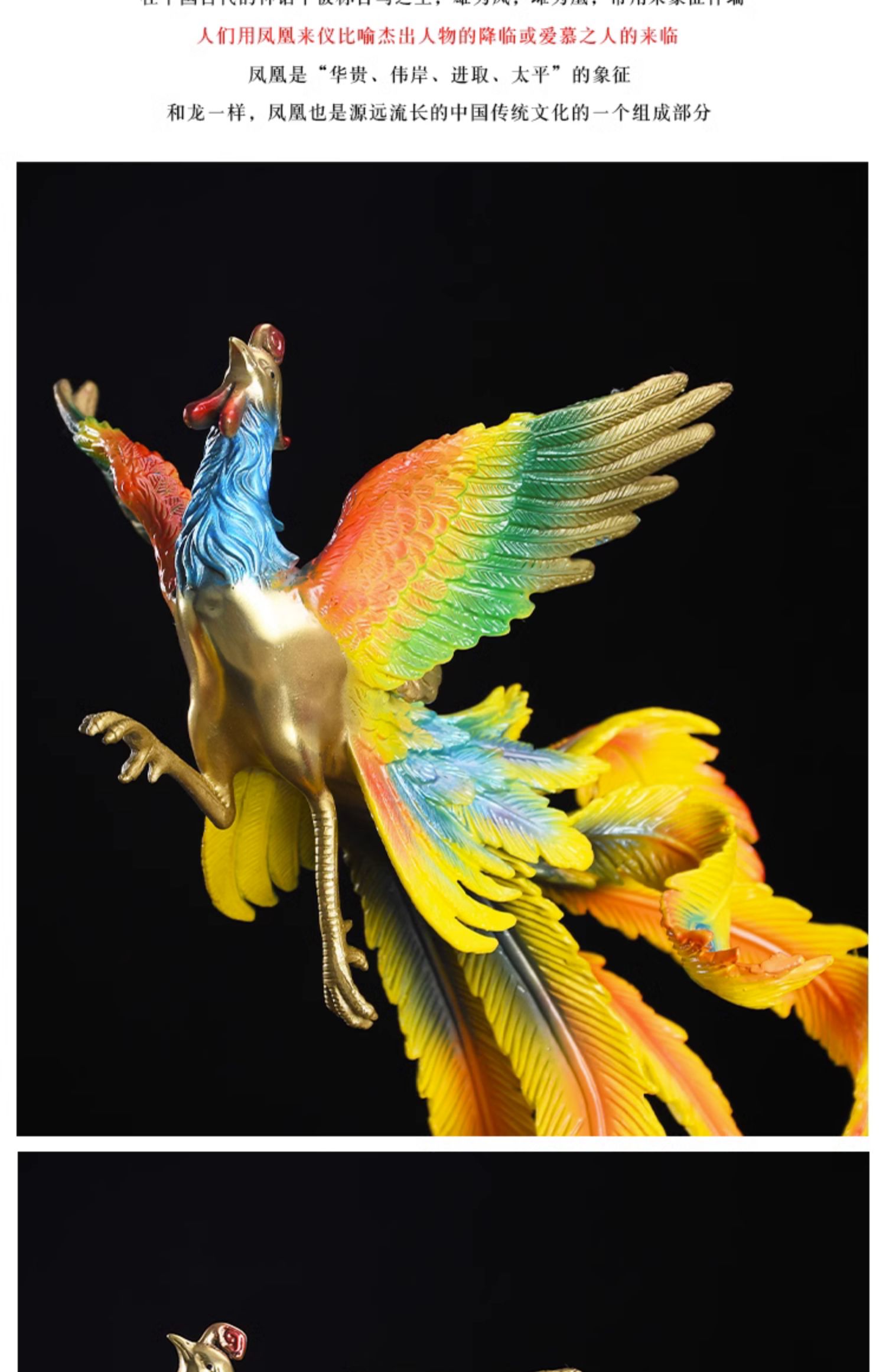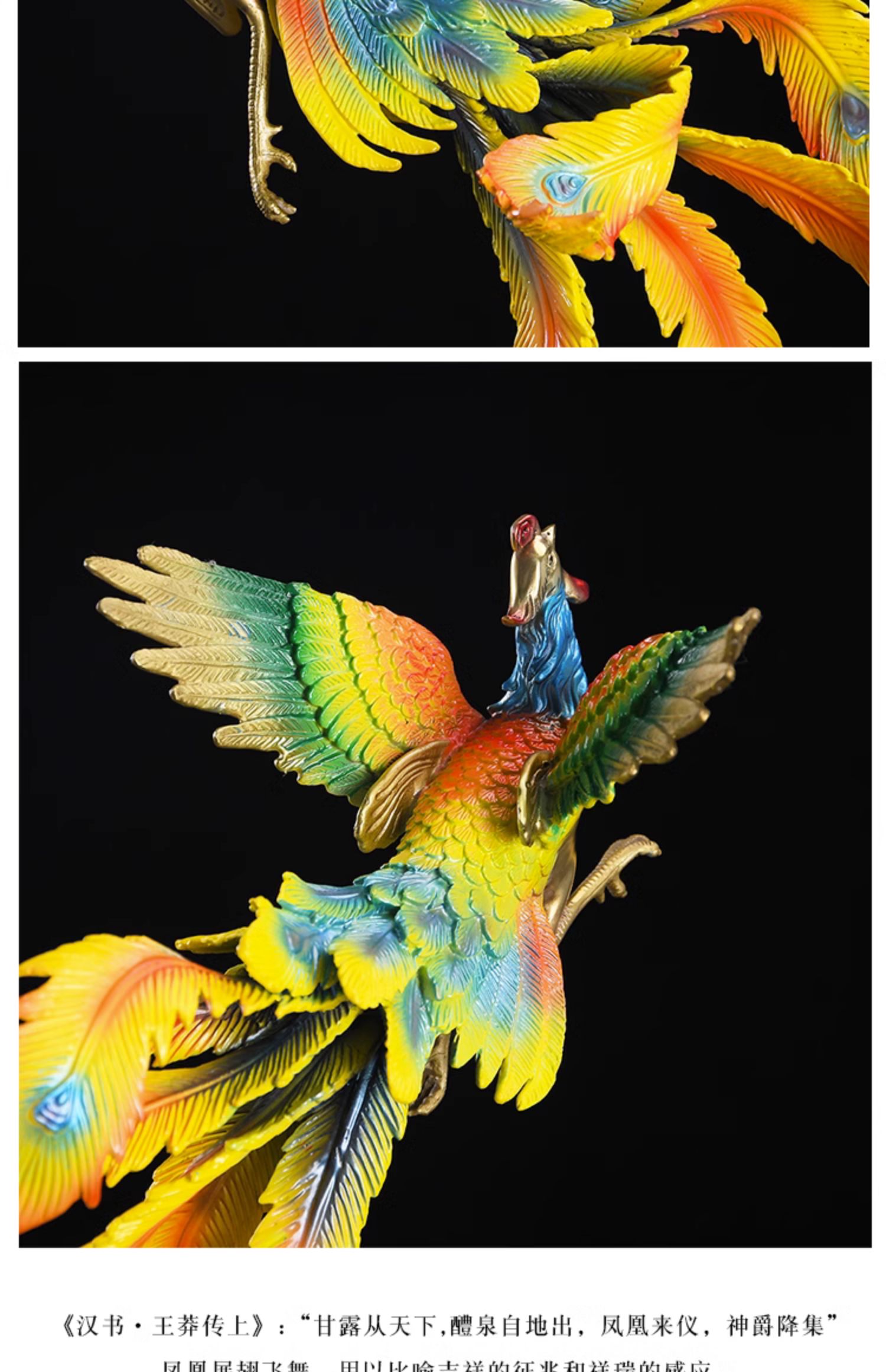 《凤凰来仪》黄铜彩绘凤凰摆件居家装饰品前台酒柜开业礼品工艺品