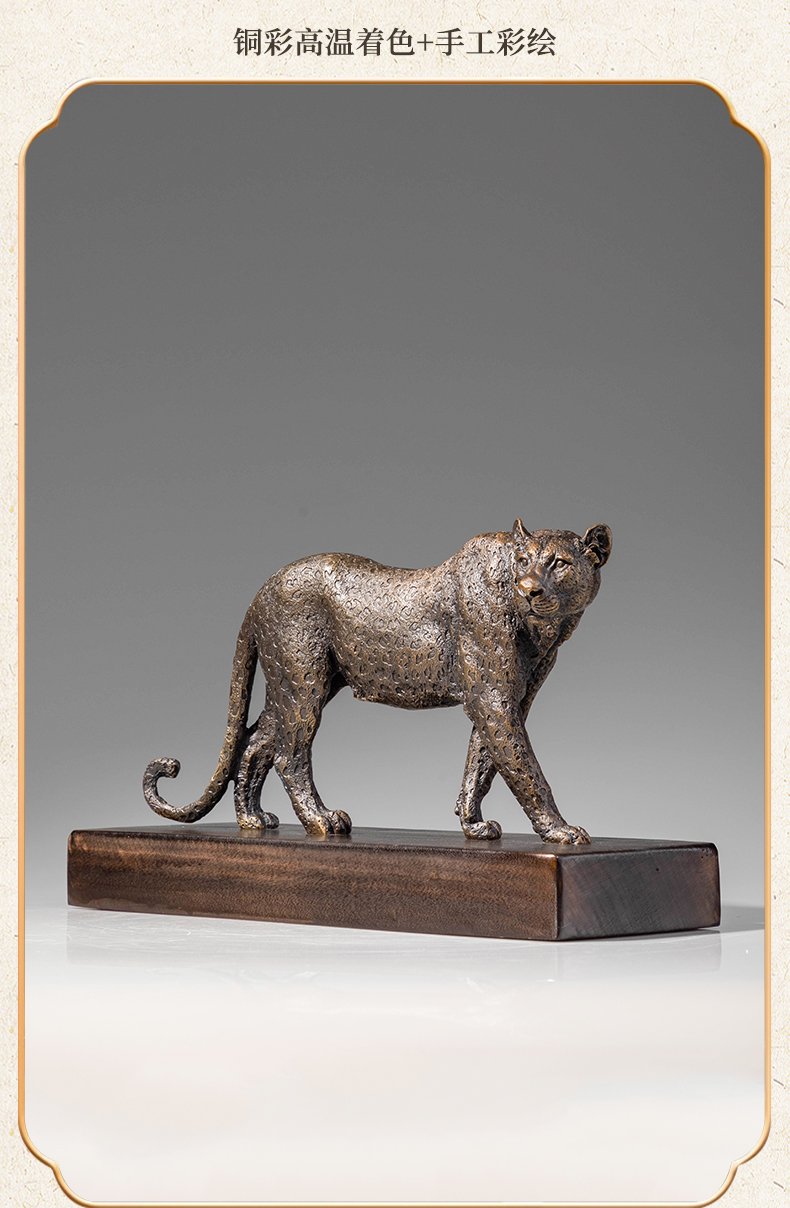 《金钱豹》全黄铜豹子摆件工艺品铜器办公室书房客厅过道桌面装饰
