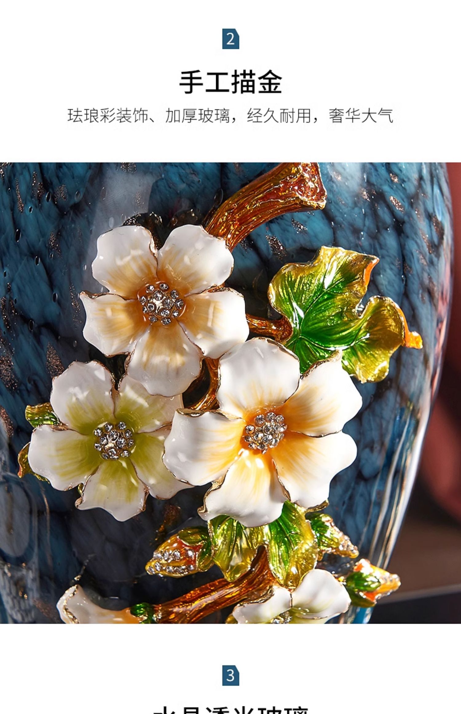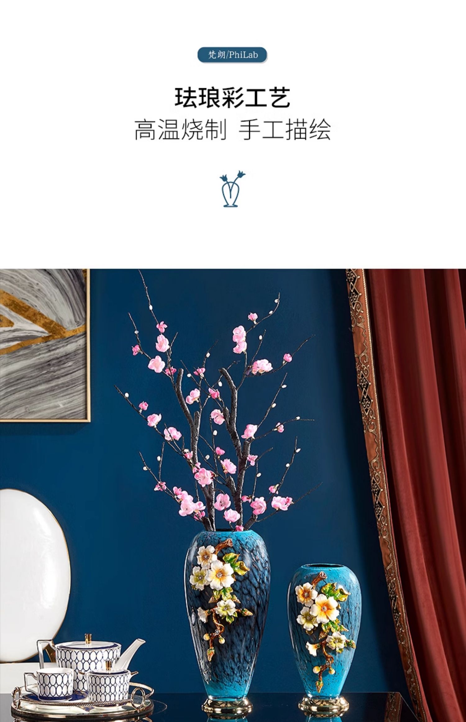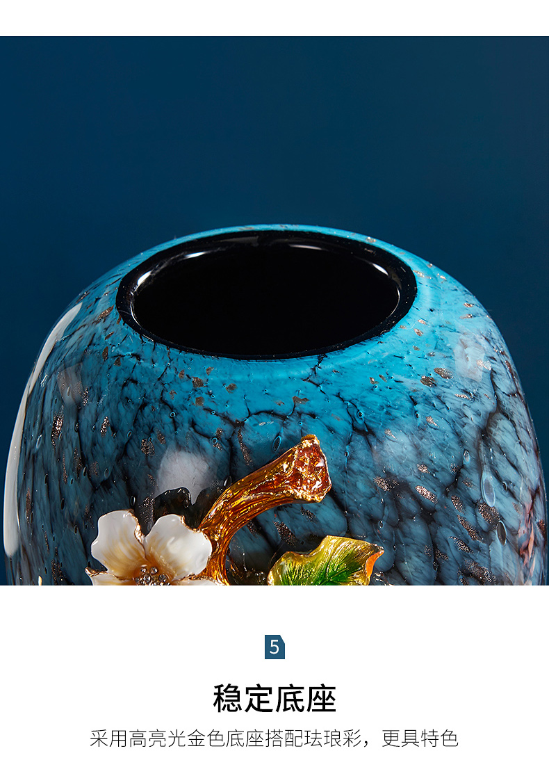 轻奢高端珐琅彩玻璃花瓶摆件客厅玄关欧式家居插花美式家居装饰品