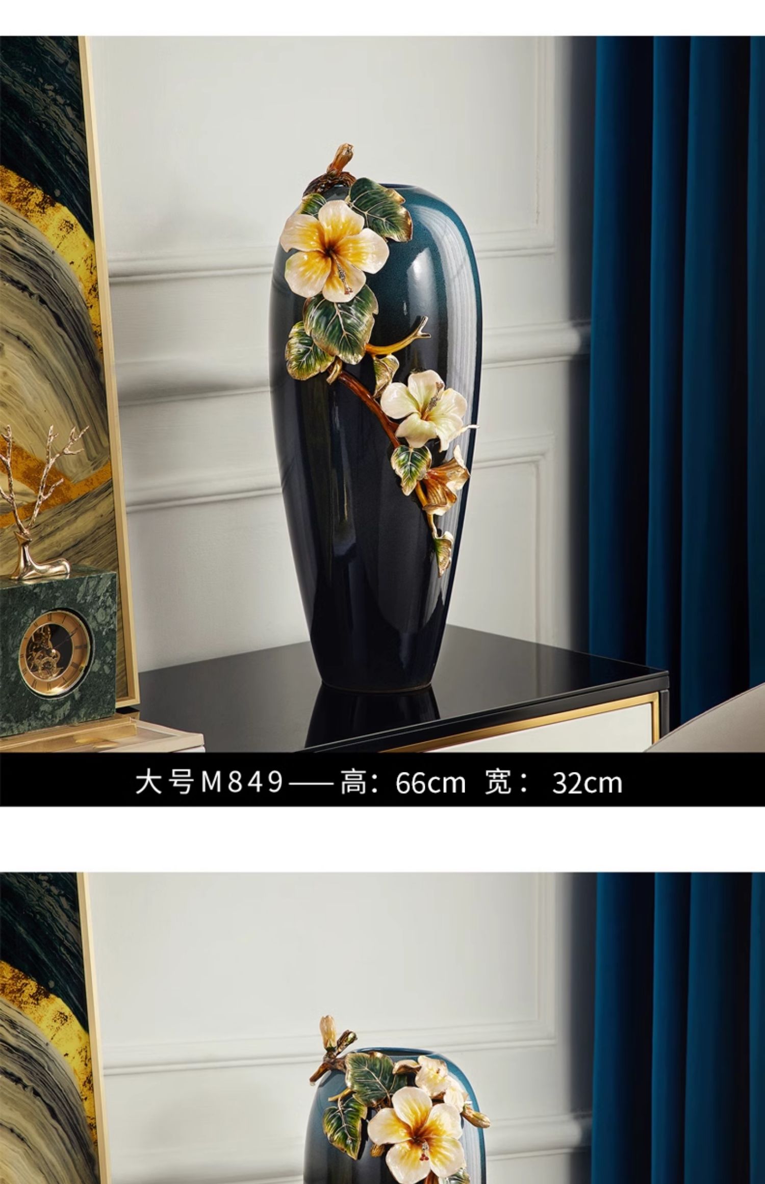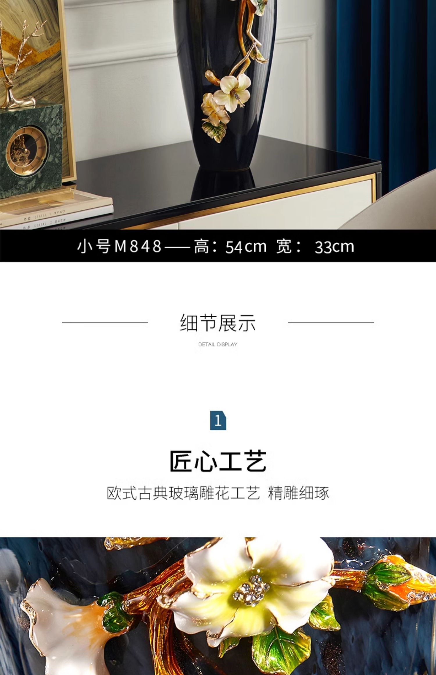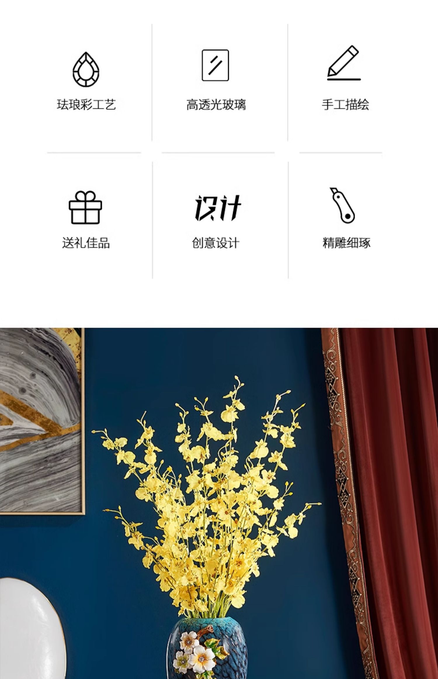 轻奢高端珐琅彩玻璃花瓶摆件客厅玄关欧式家居插花美式家居装饰品