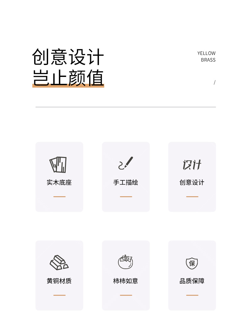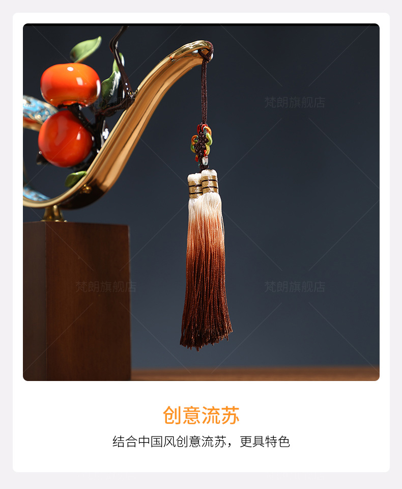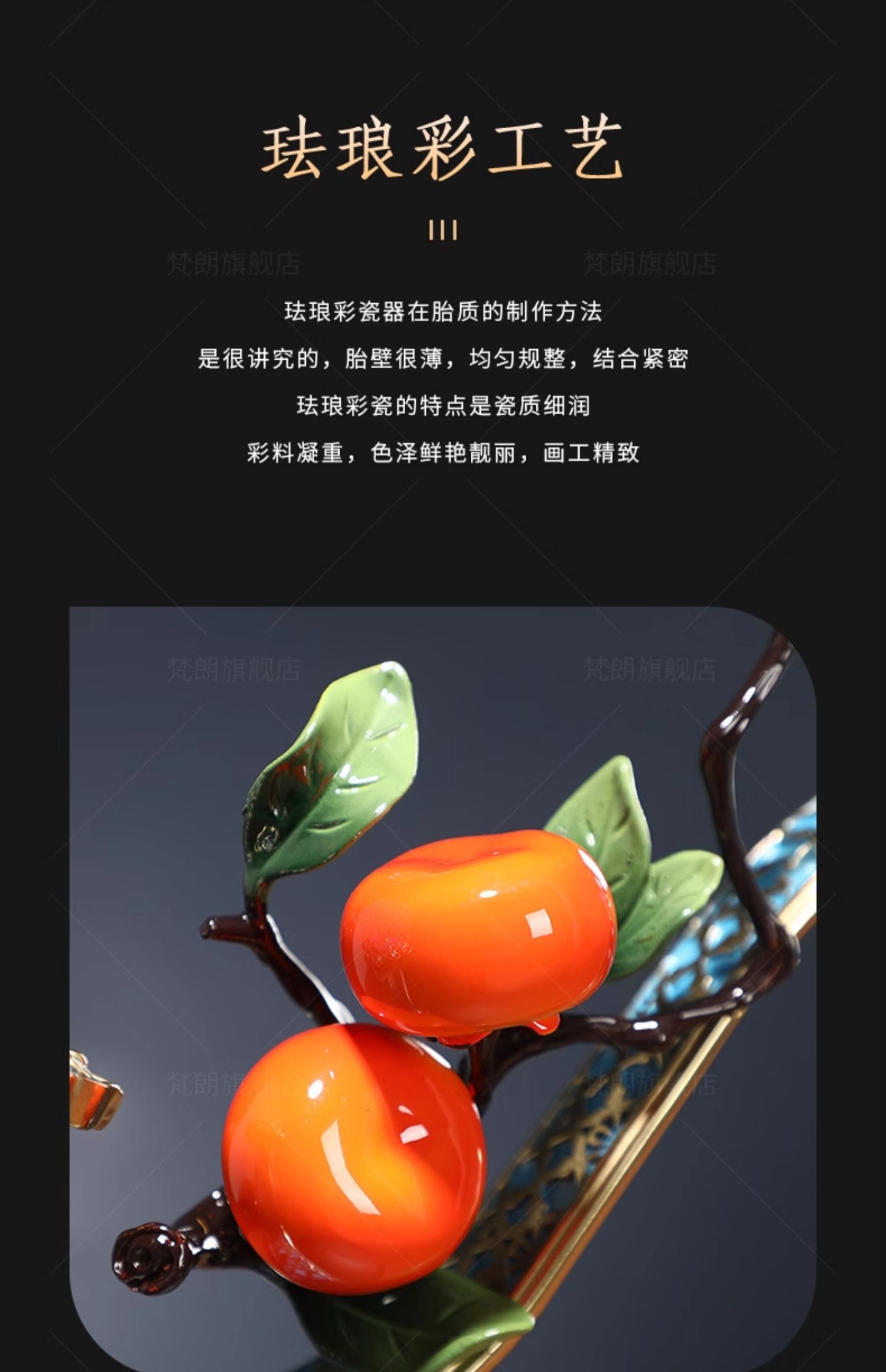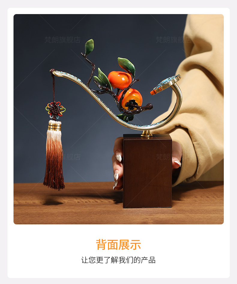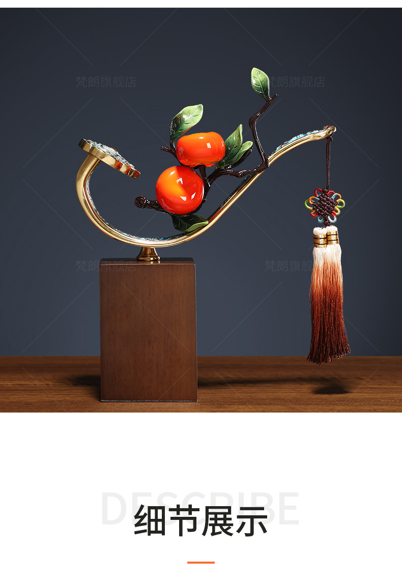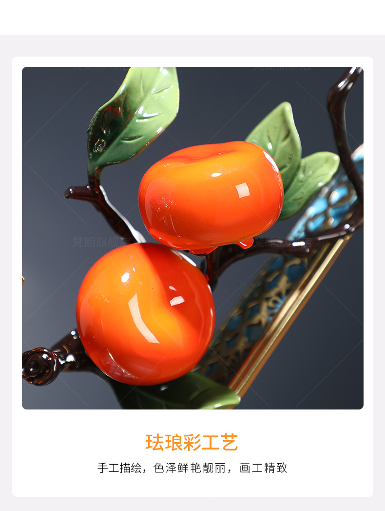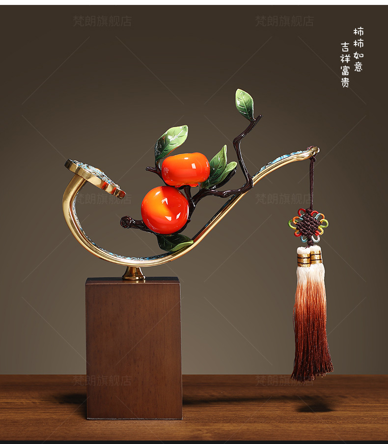 新中式黄铜摆件家用客厅柿柿如意摆设中国风玄关创意珐琅彩装饰品