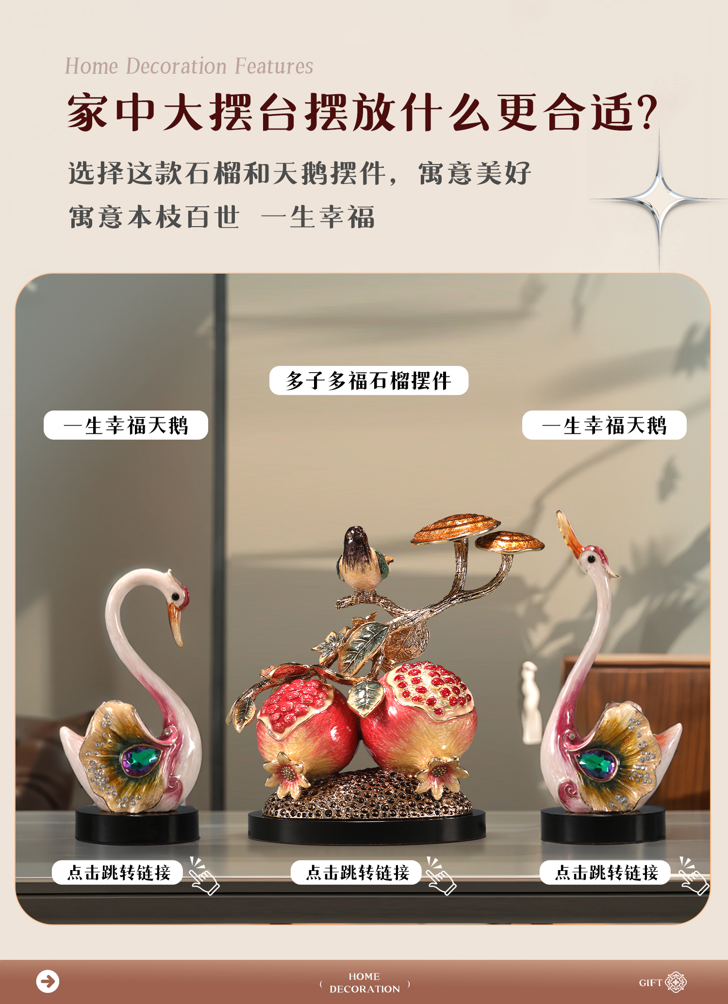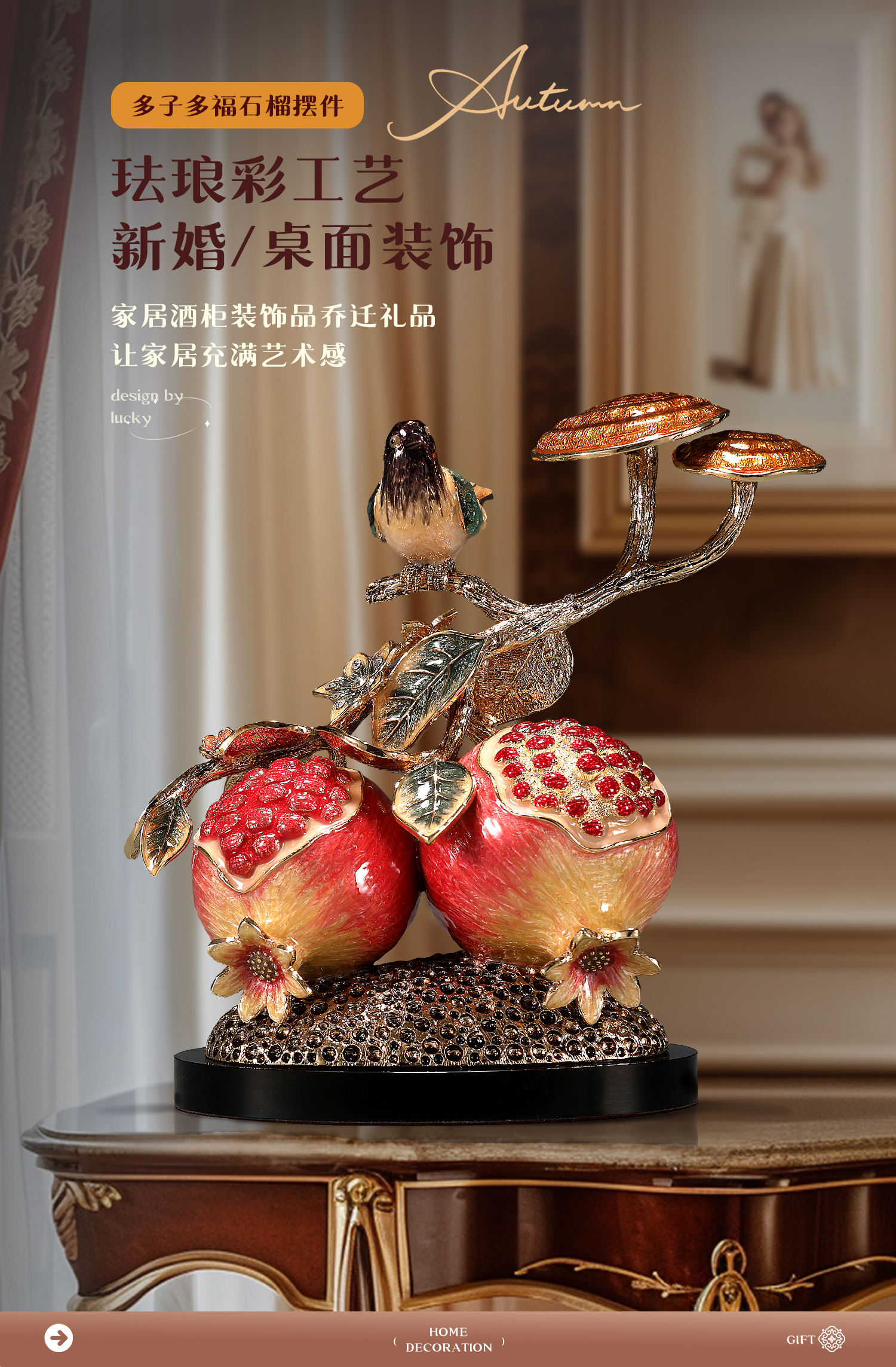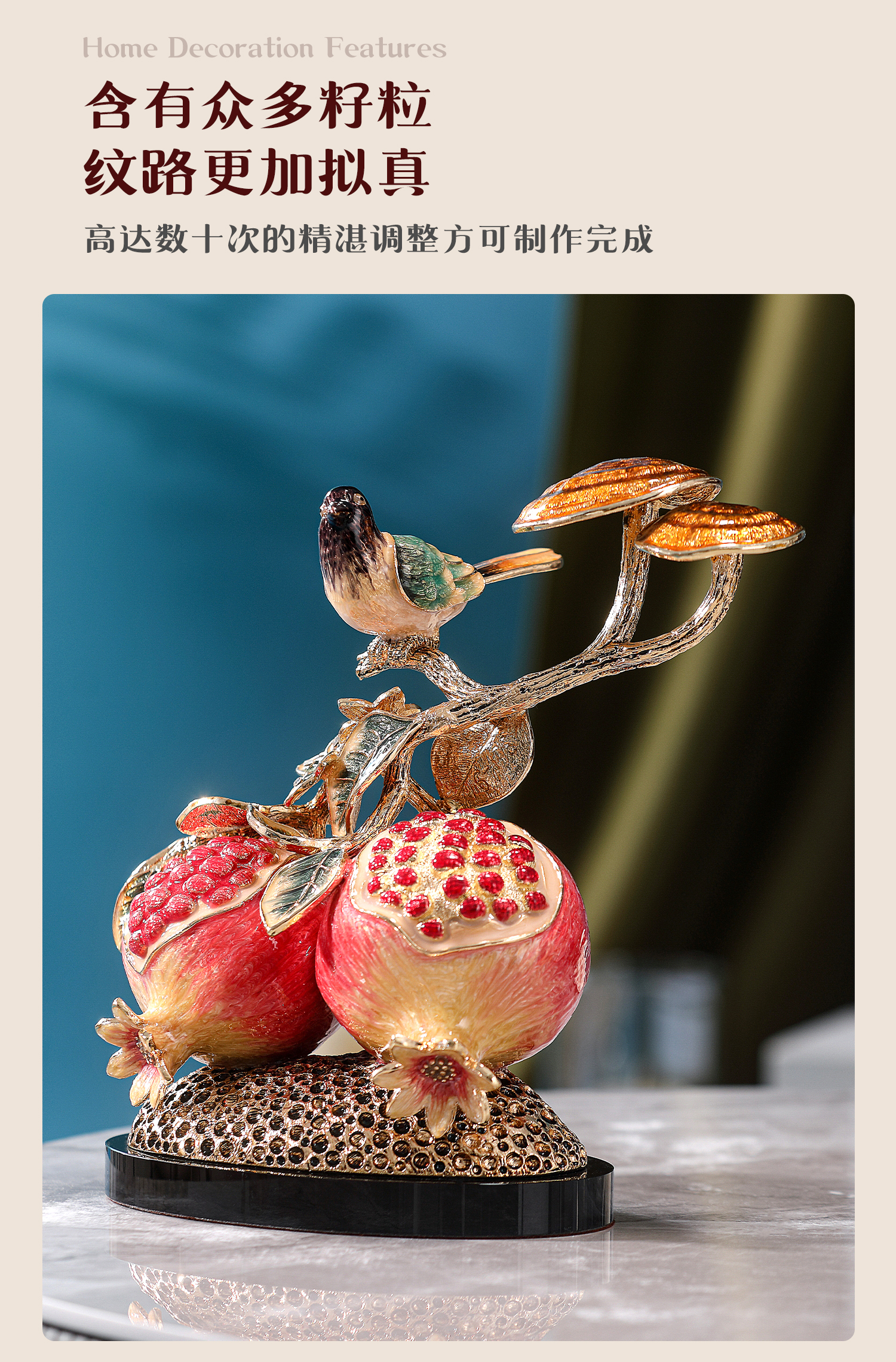 珐琅彩多子多福石榴摆件酒柜桌面布置装饰乔迁新婚结婚礼物送闺蜜