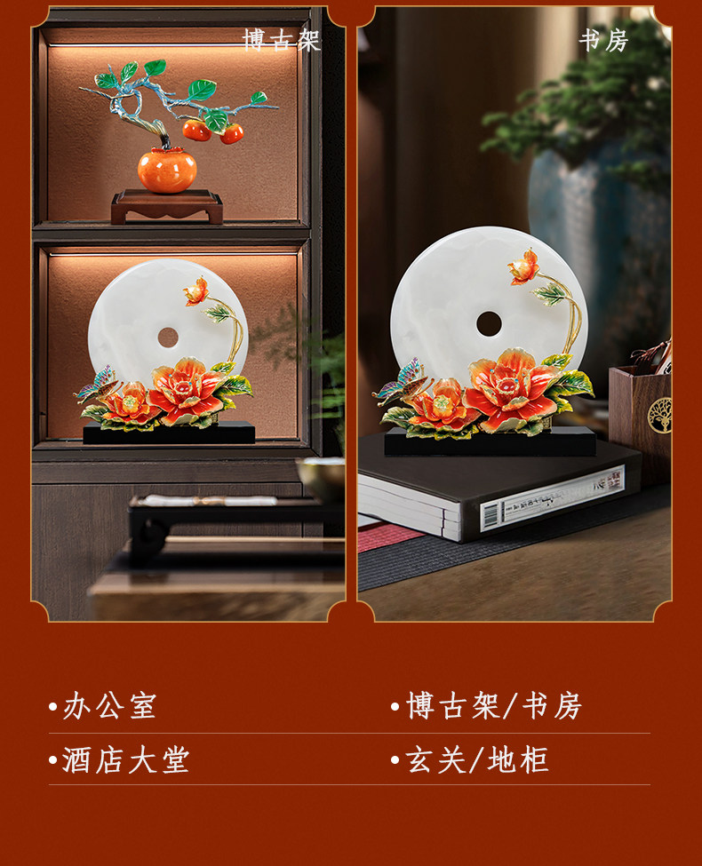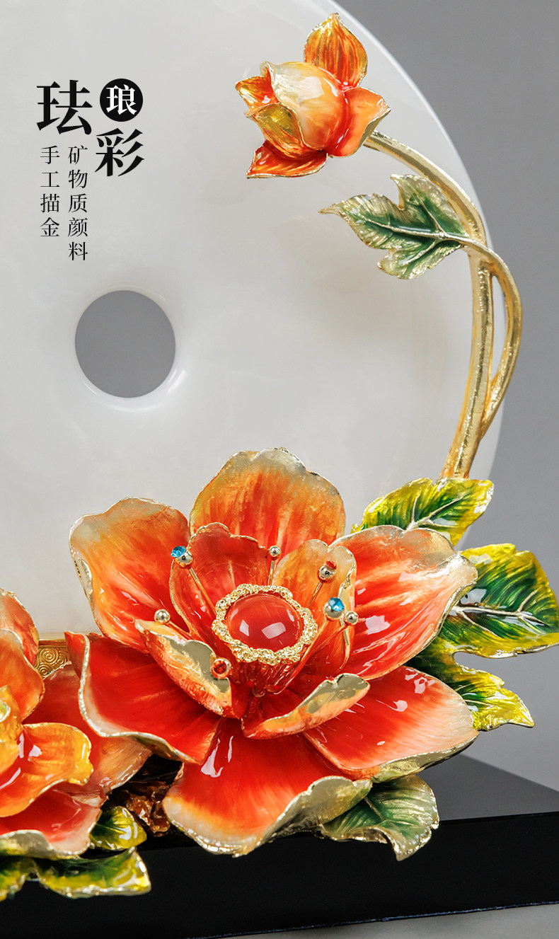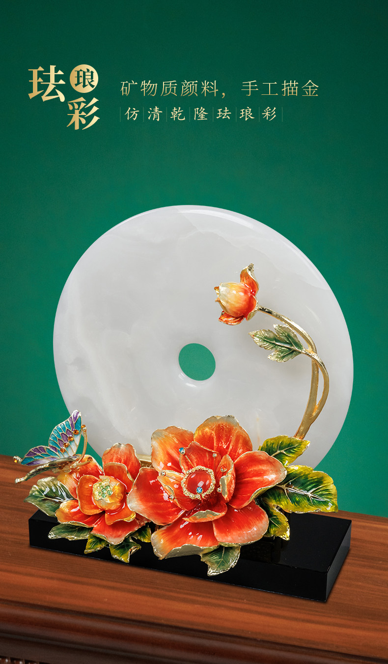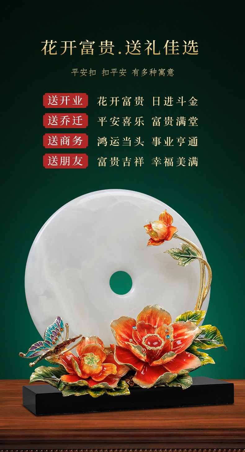 花开富贵高端珐琅彩平安扣摆件中式客厅办公室装饰工艺品乔迁礼物