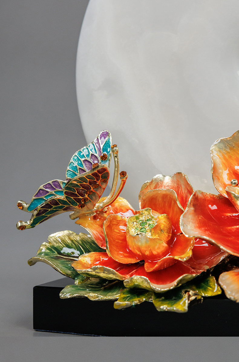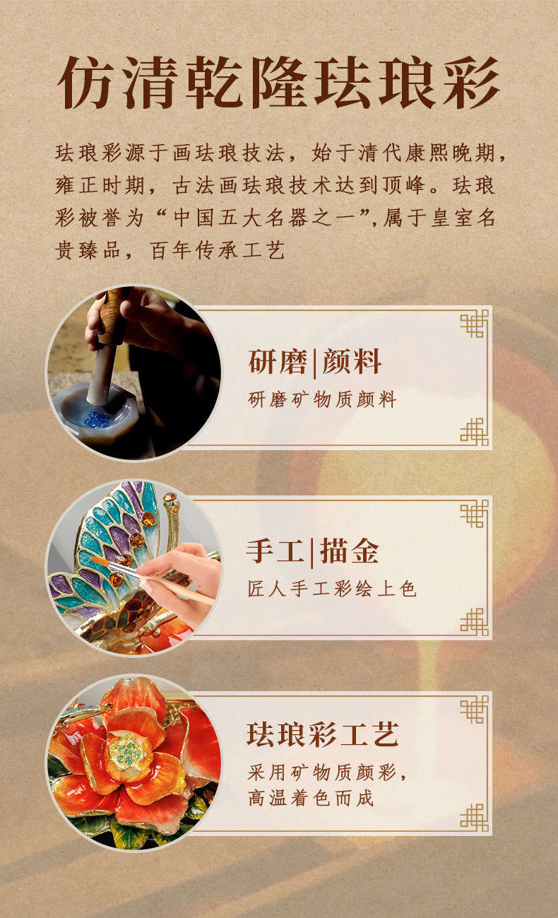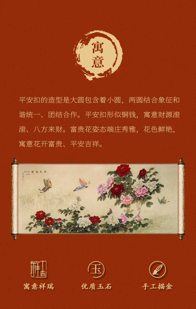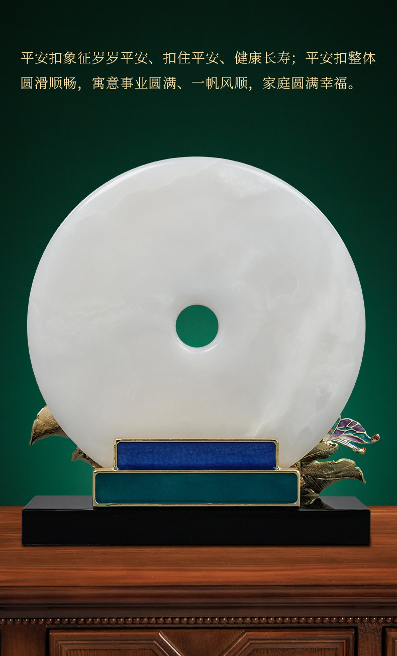 花开富贵高端珐琅彩平安扣摆件中式客厅办公室装饰工艺品乔迁礼物