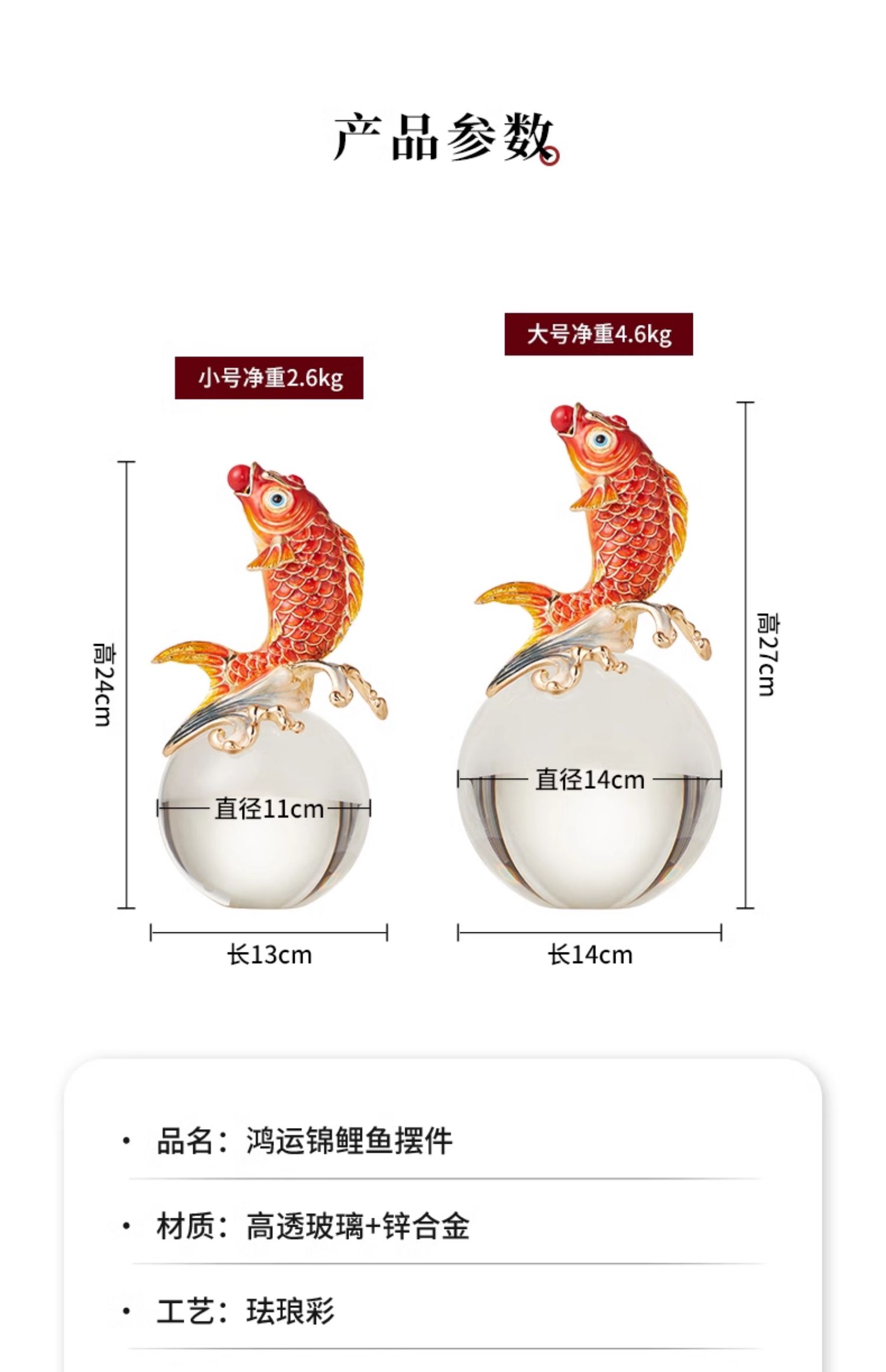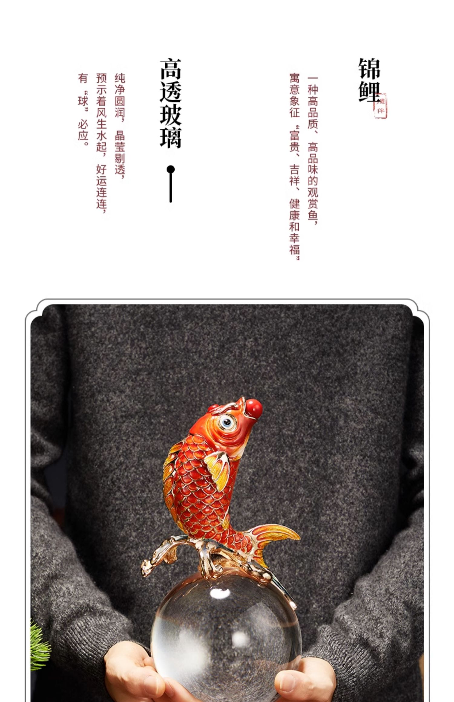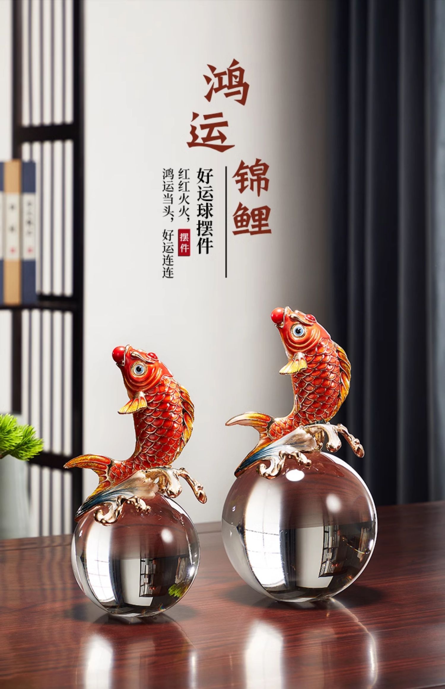 鸿运锦鲤珐琅彩鱼摆件招财好运球客厅电视柜书房创意家居装饰品