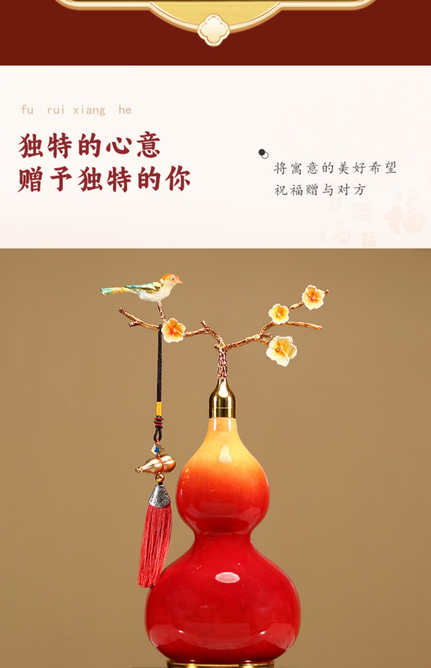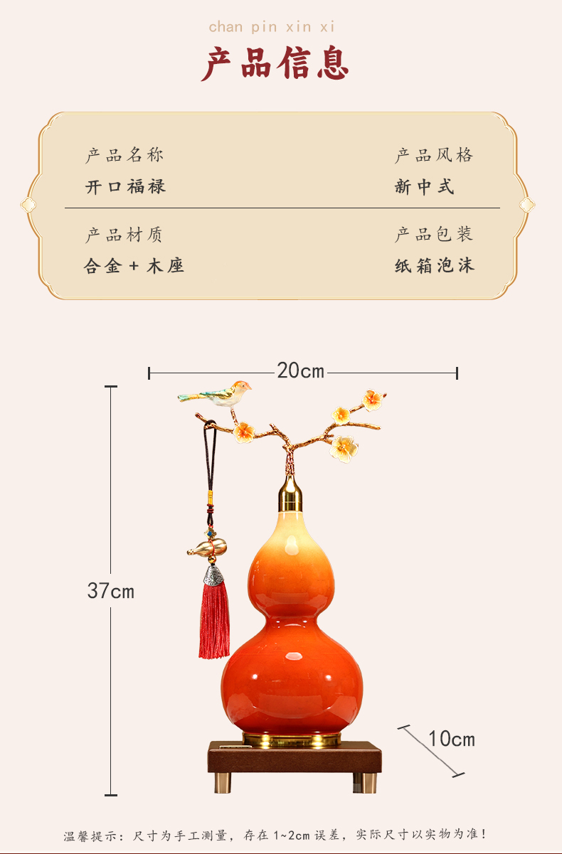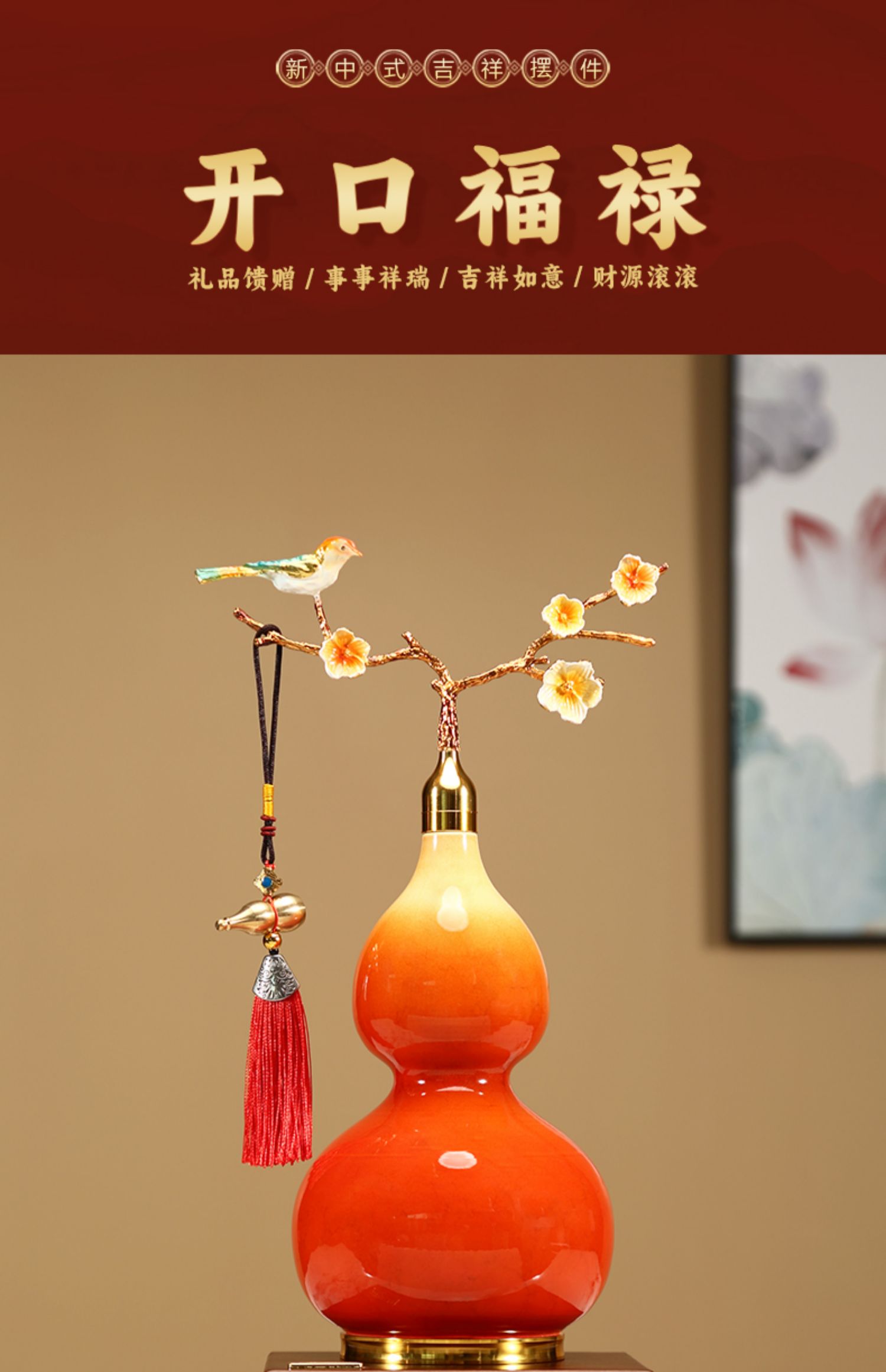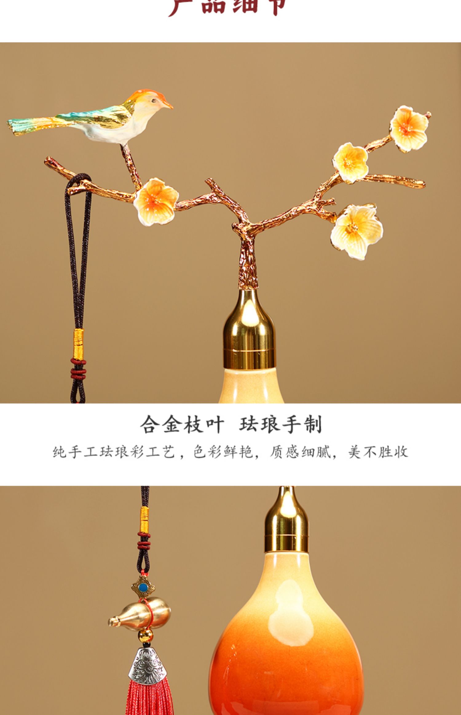 新中式开口葫芦摆件招财福禄金属珐琅彩办公室客厅玄关酒柜装饰品
