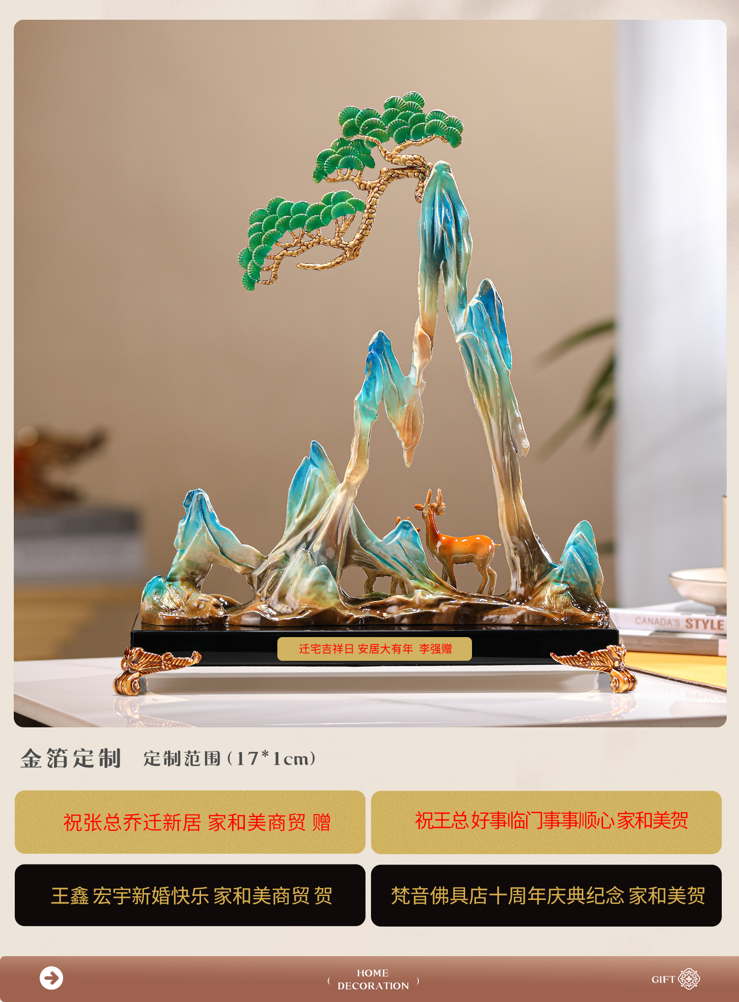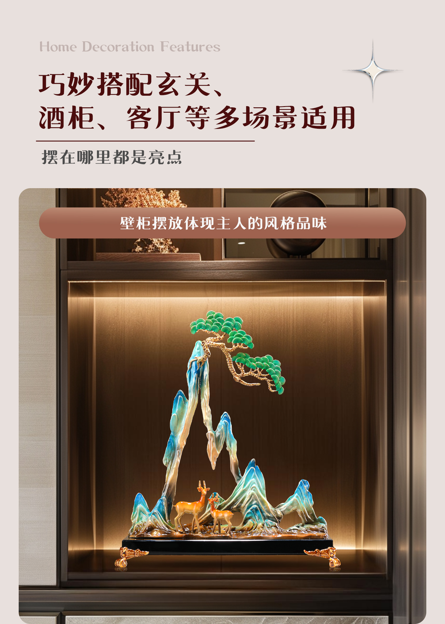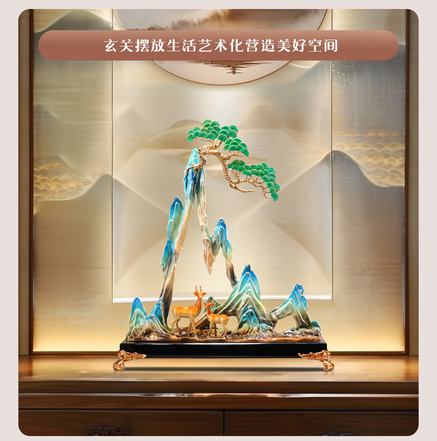 珐琅彩合金艺术品摆件青山有鹿新中式家居客厅酒柜玄关创意装饰品