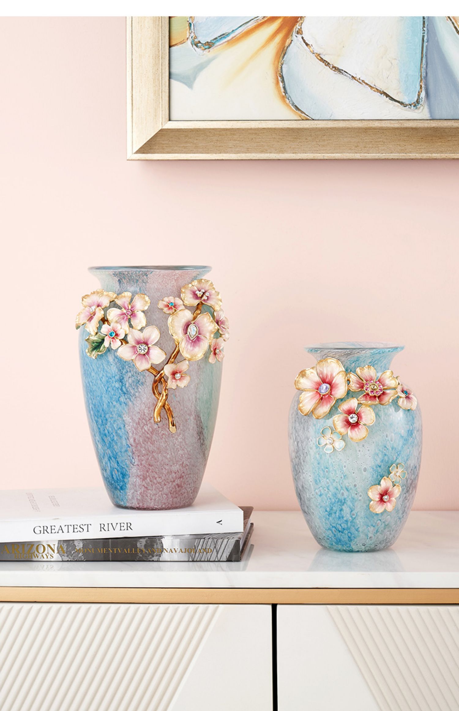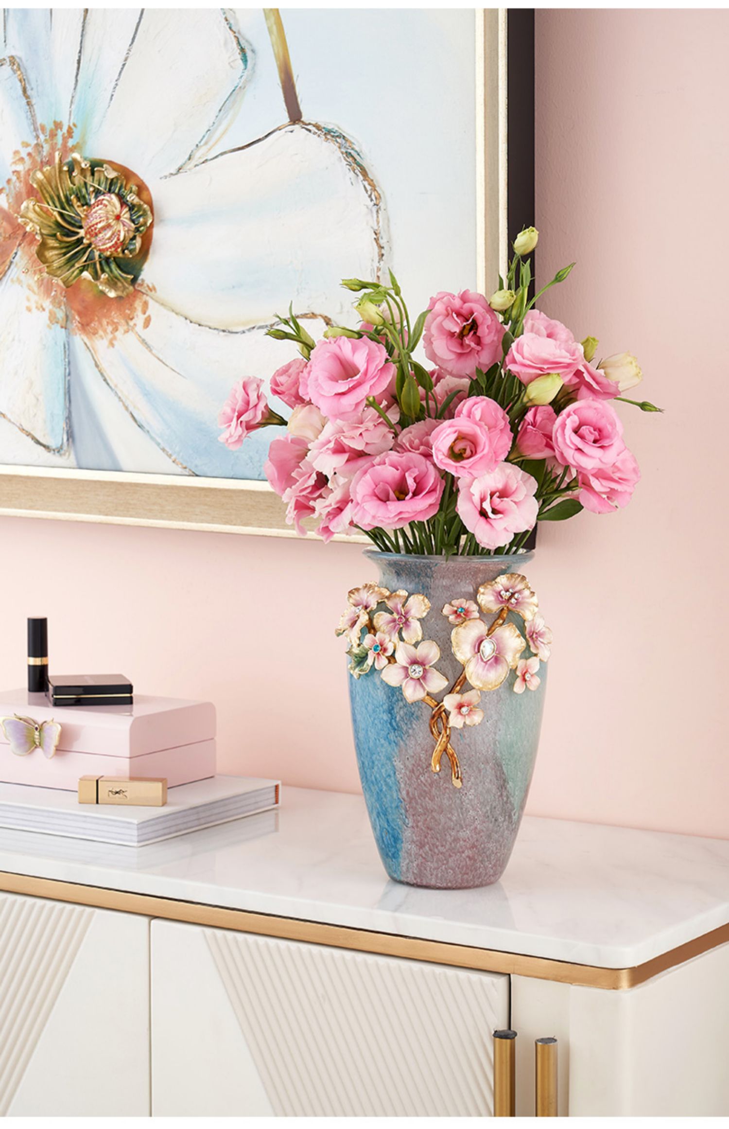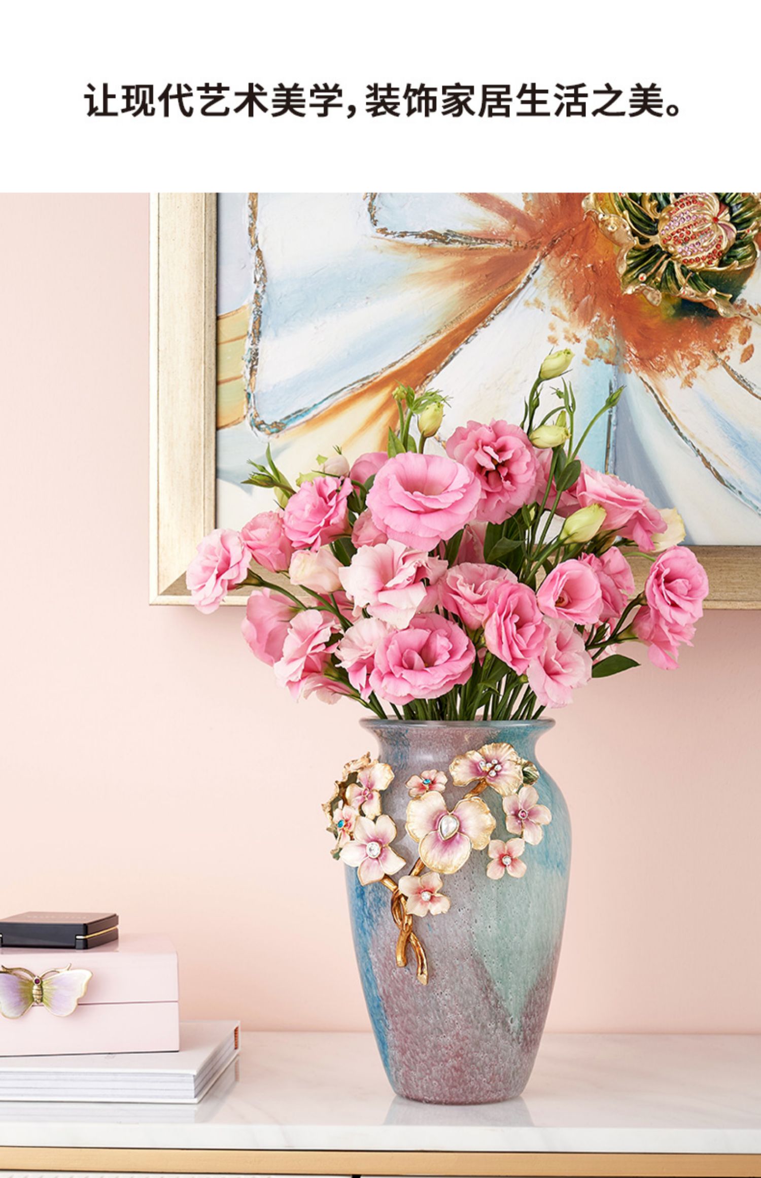 罗比罗丹锦上添花珐琅彩花瓶创意玄关插花摆件乔迁礼物