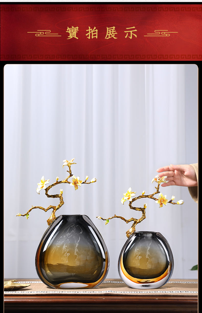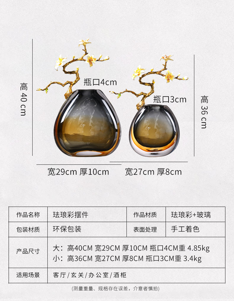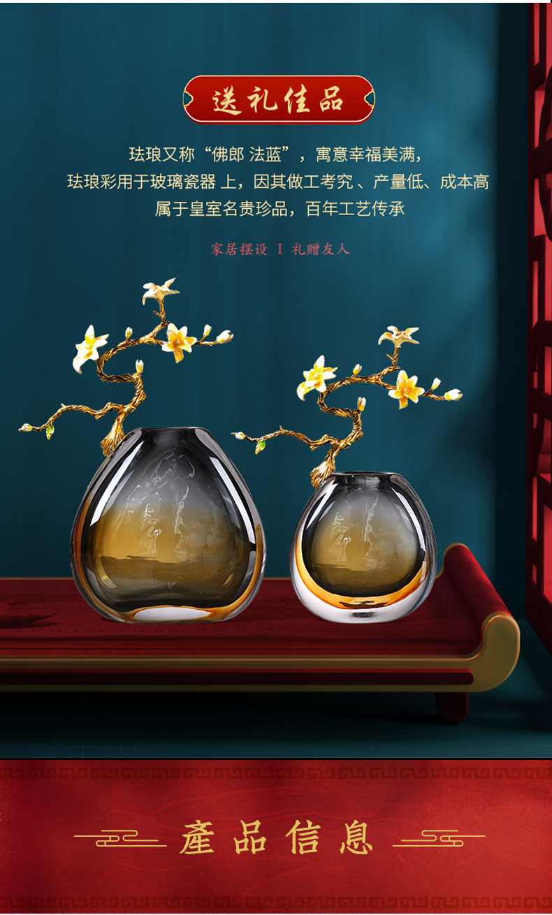 珐琅彩工艺品轻奢装饰中式花瓶摆件家居乔迁高级客厅高端大气玄关