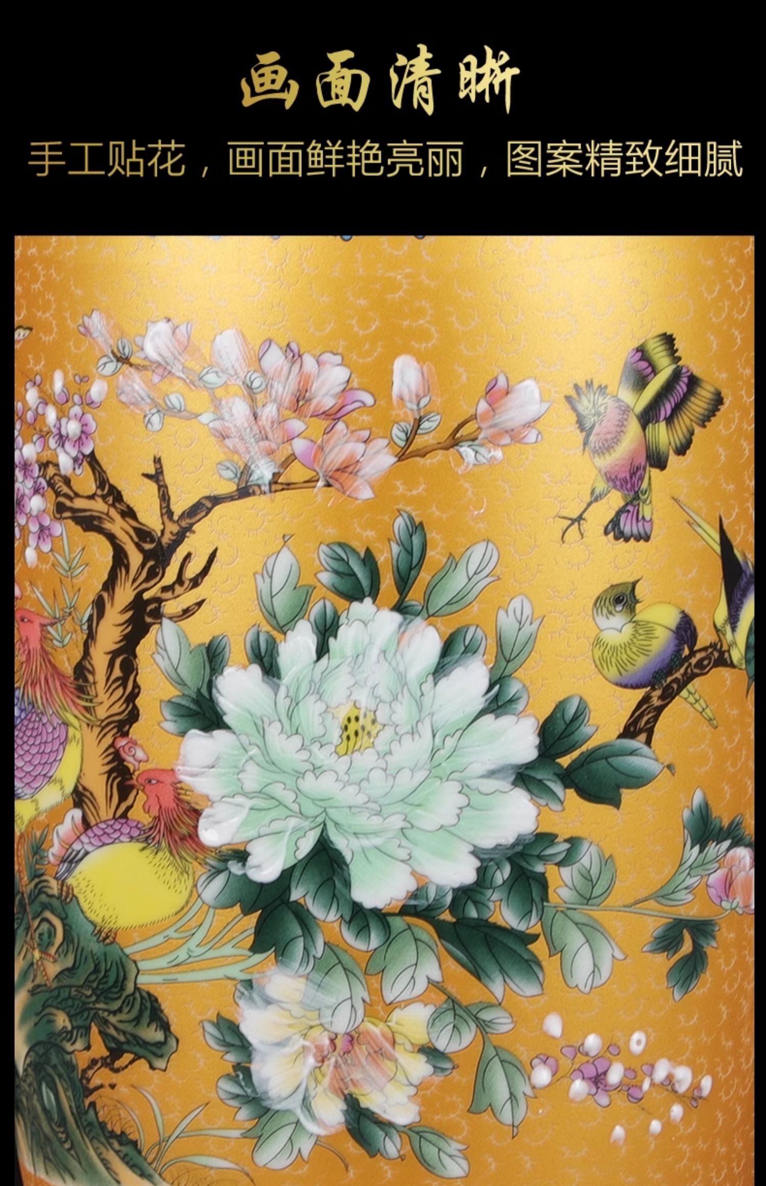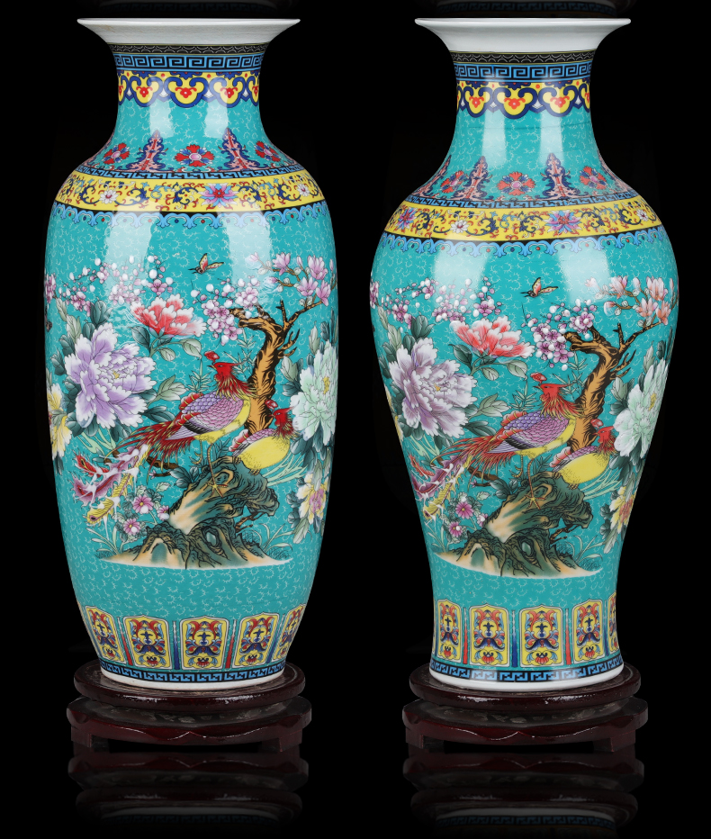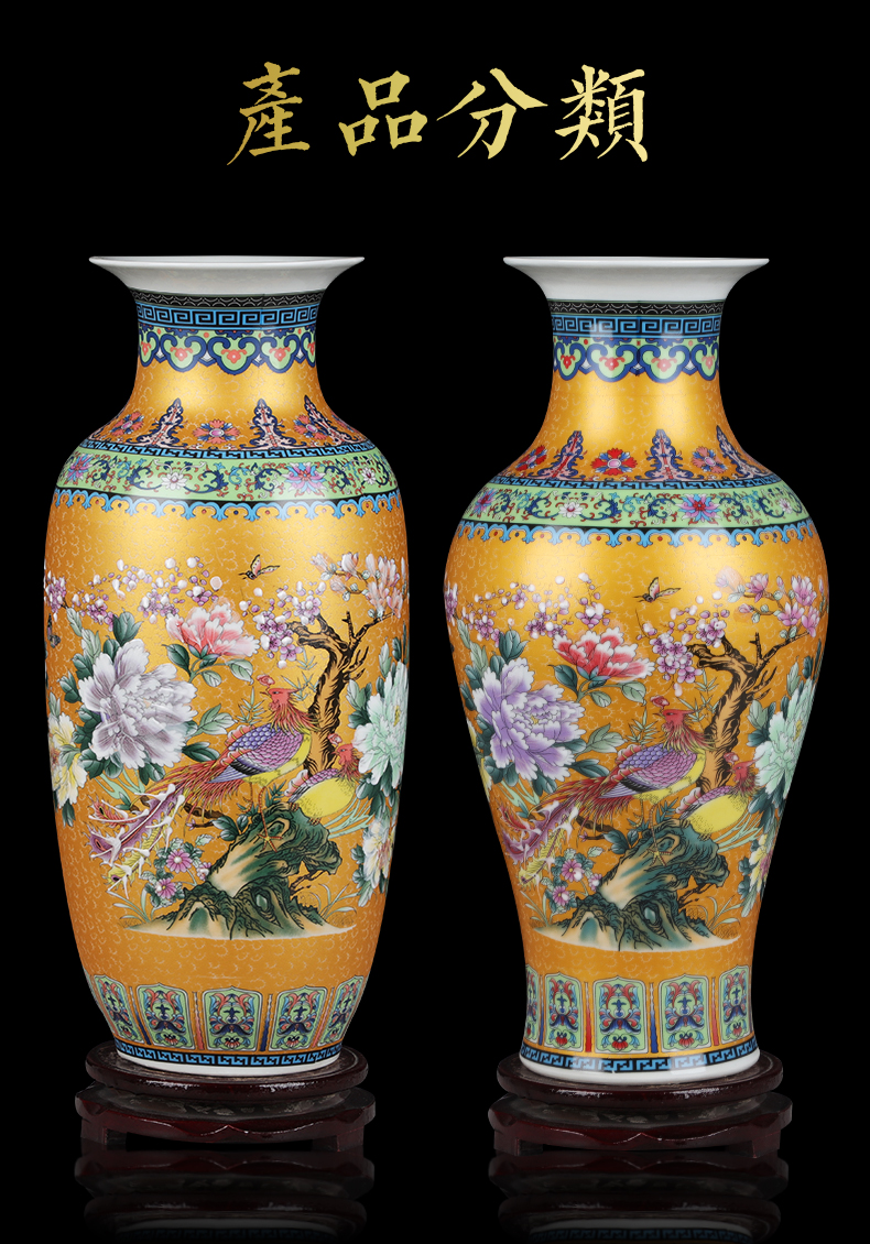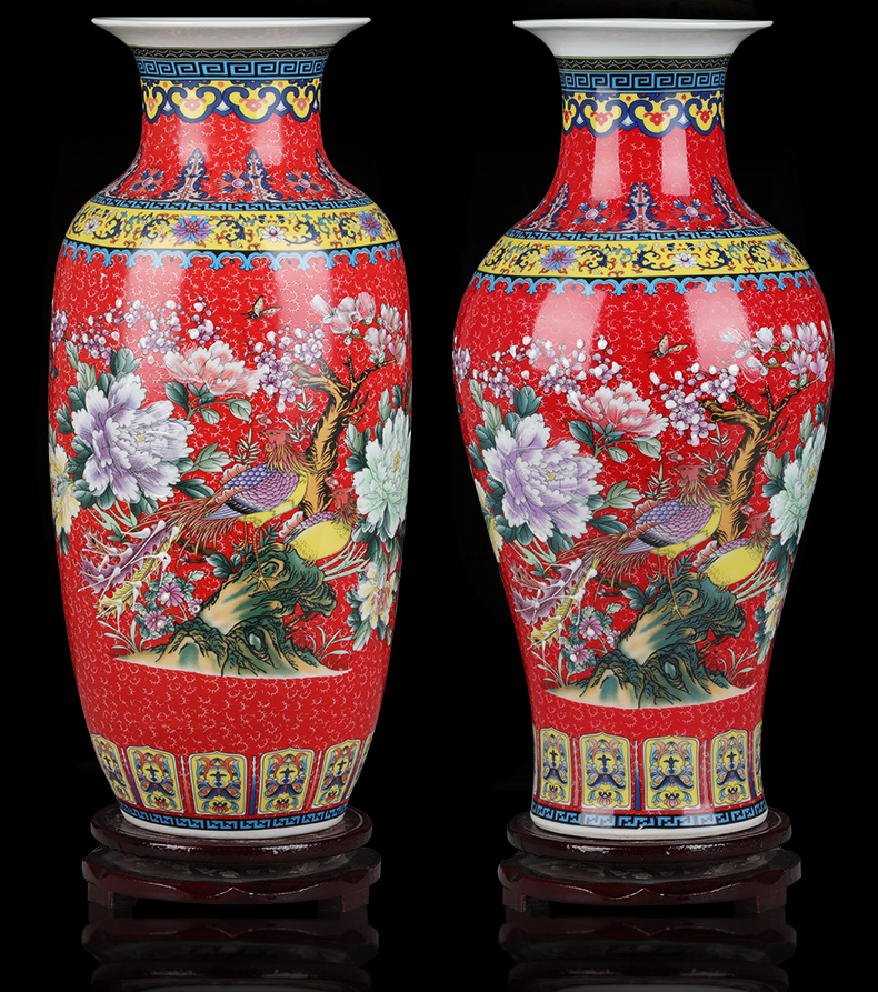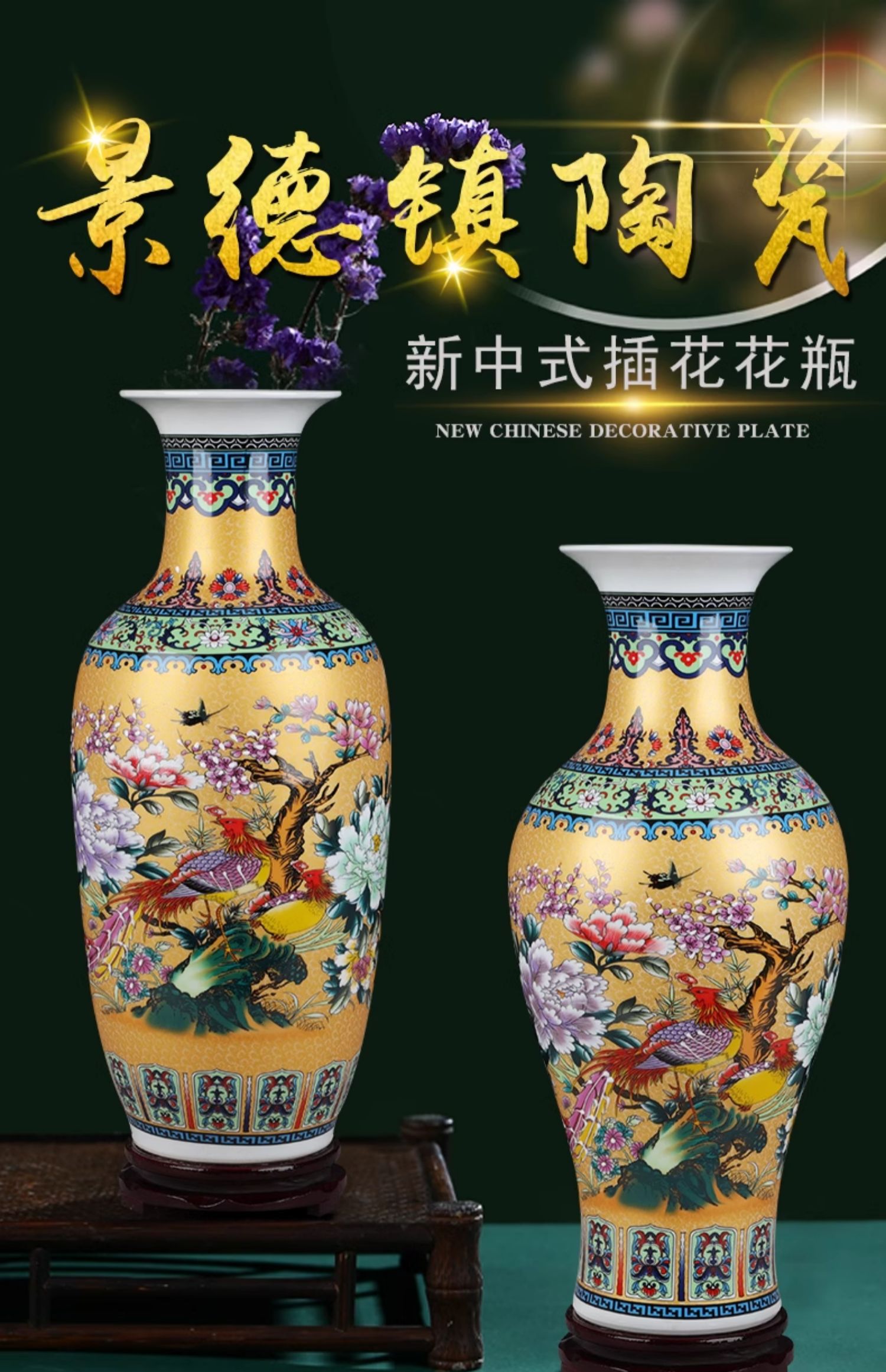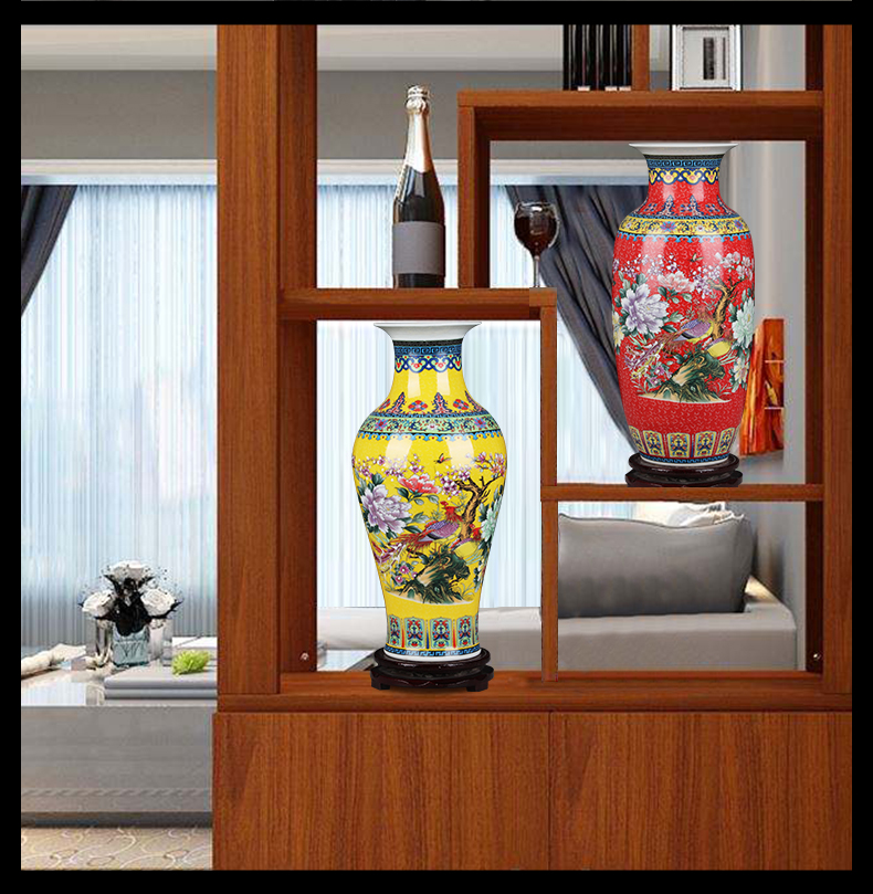 景德镇陶瓷器花瓶花插珐琅彩凤凰仿古中式客厅卧室摆件送底座包邮