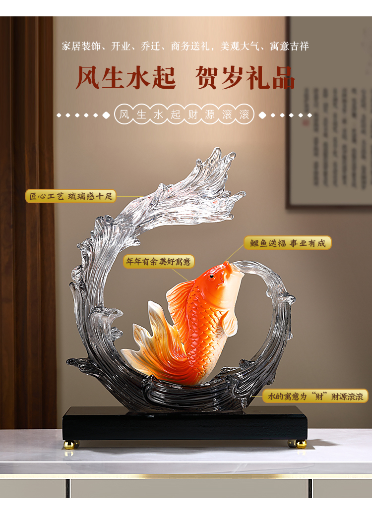 风生水起锦鲤招财葫芦桌面摆件入户玄关客厅酒柜装饰品乔迁礼品