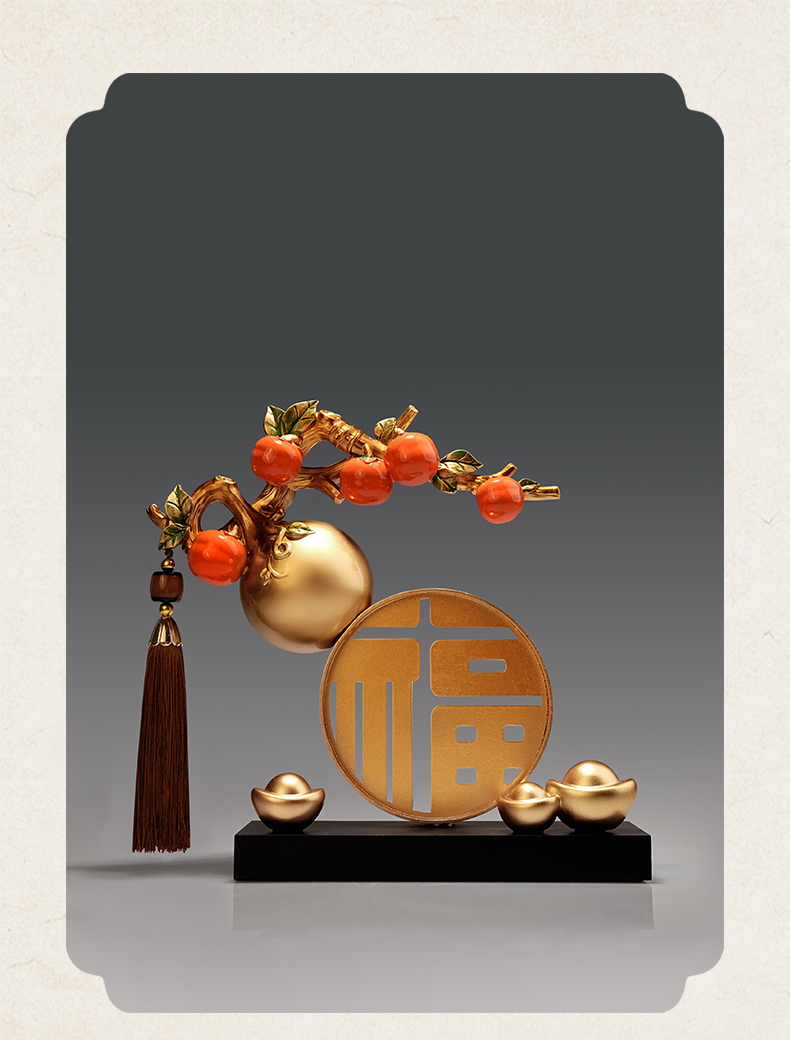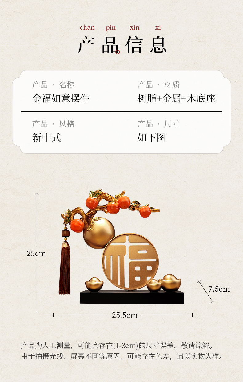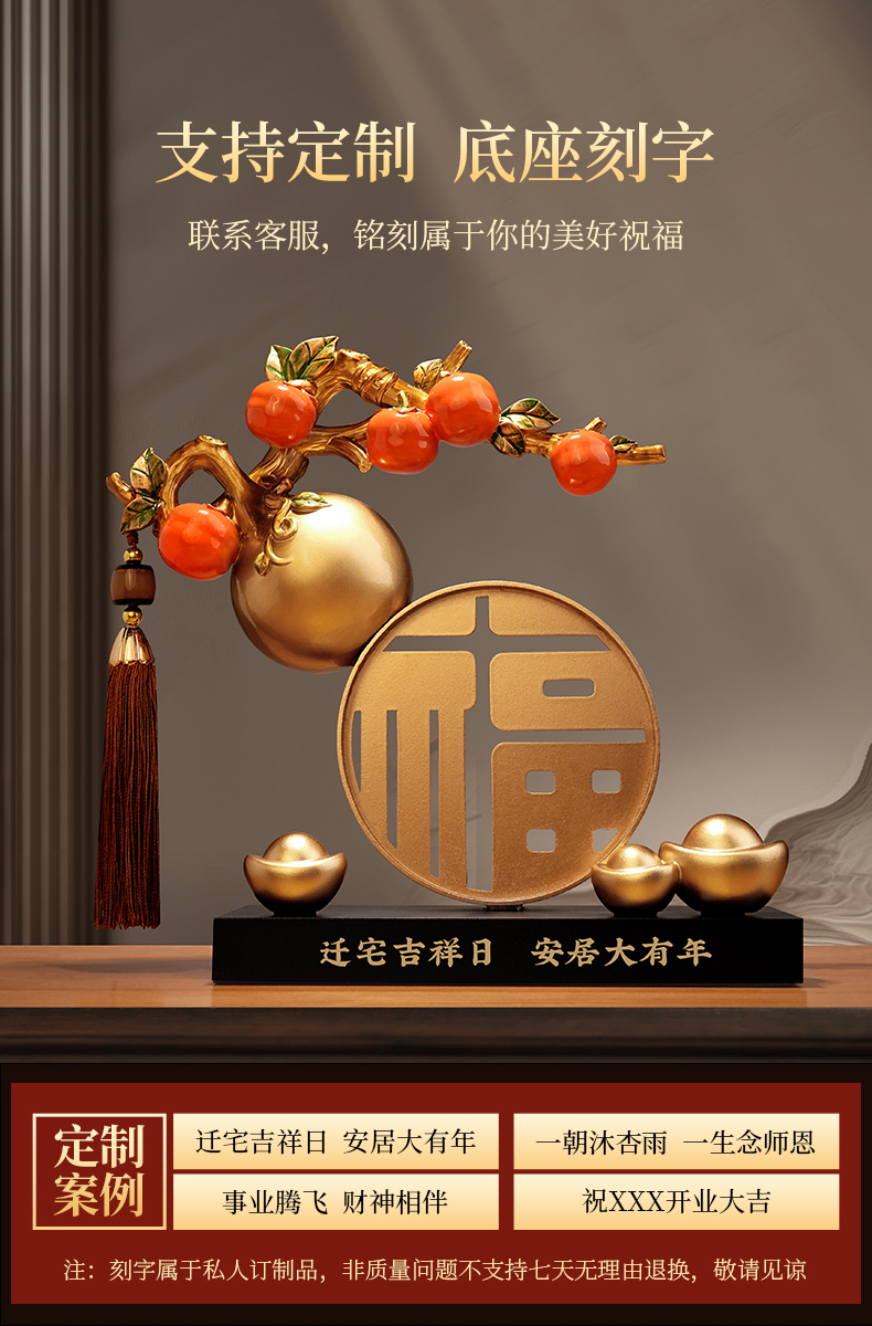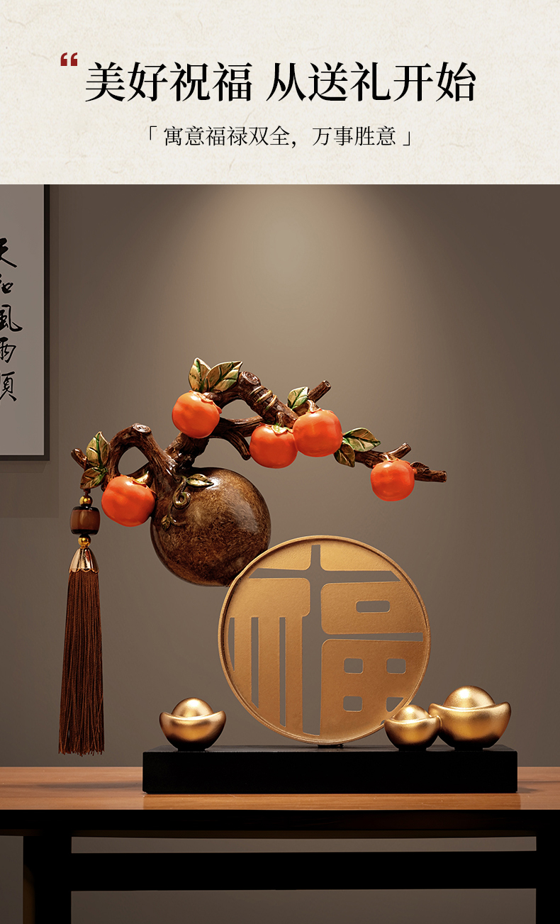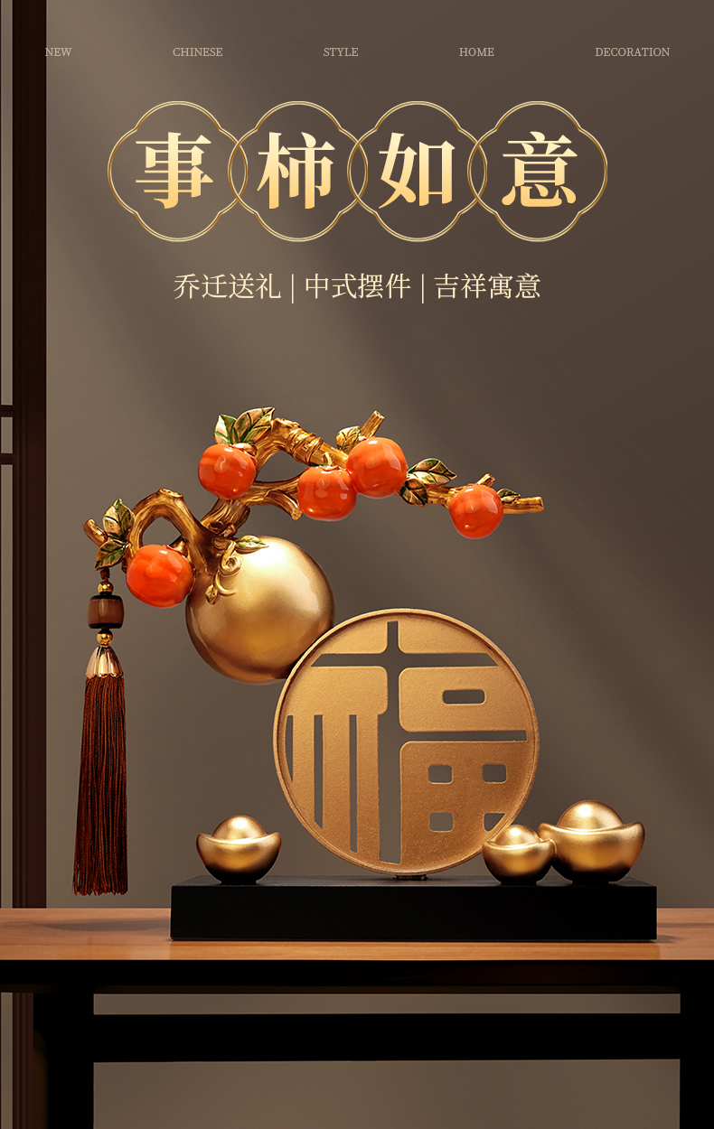 乔迁新居礼物福字柿柿如意摆件新中式家居饰品客厅玄关装饰高级感