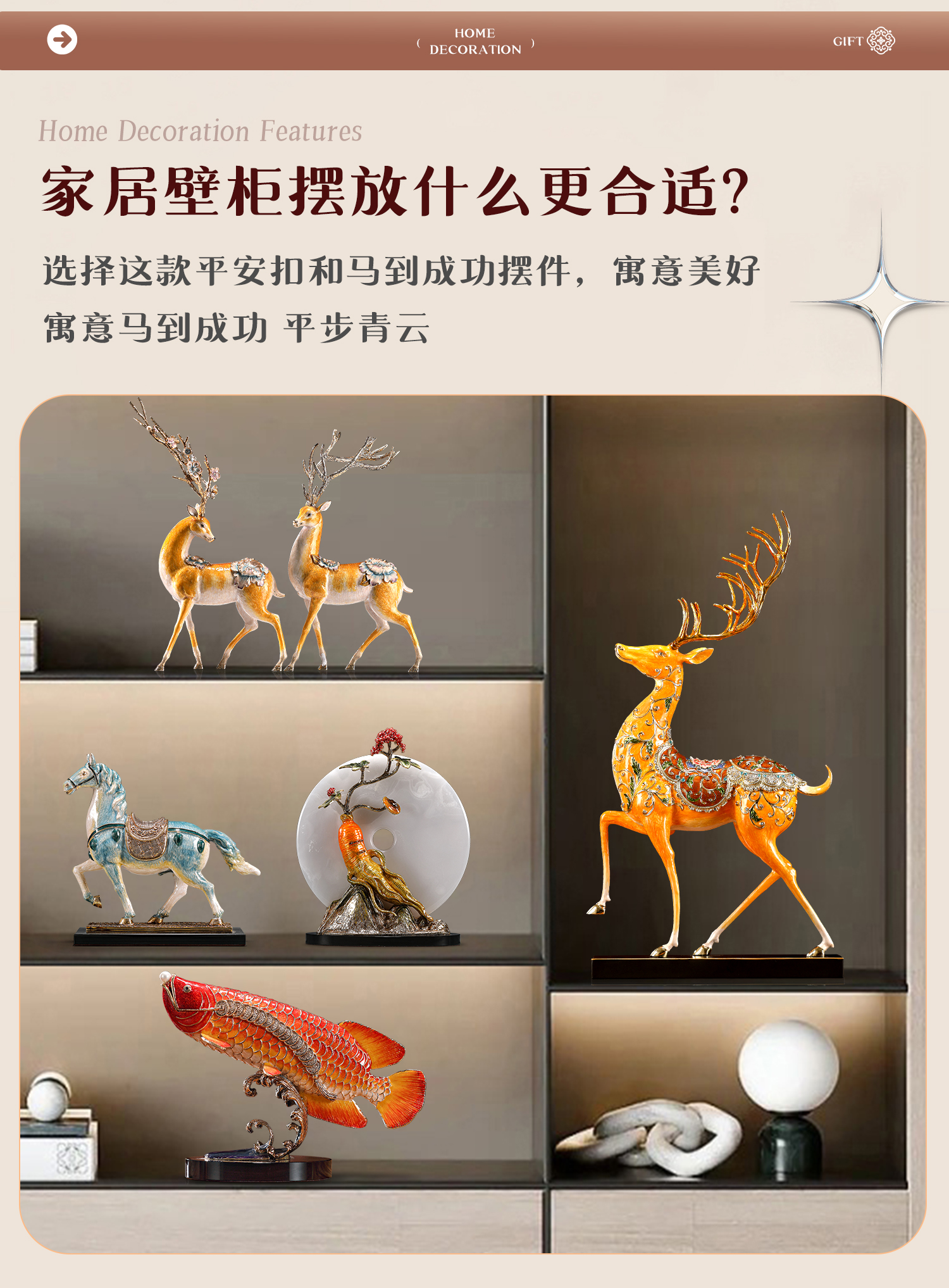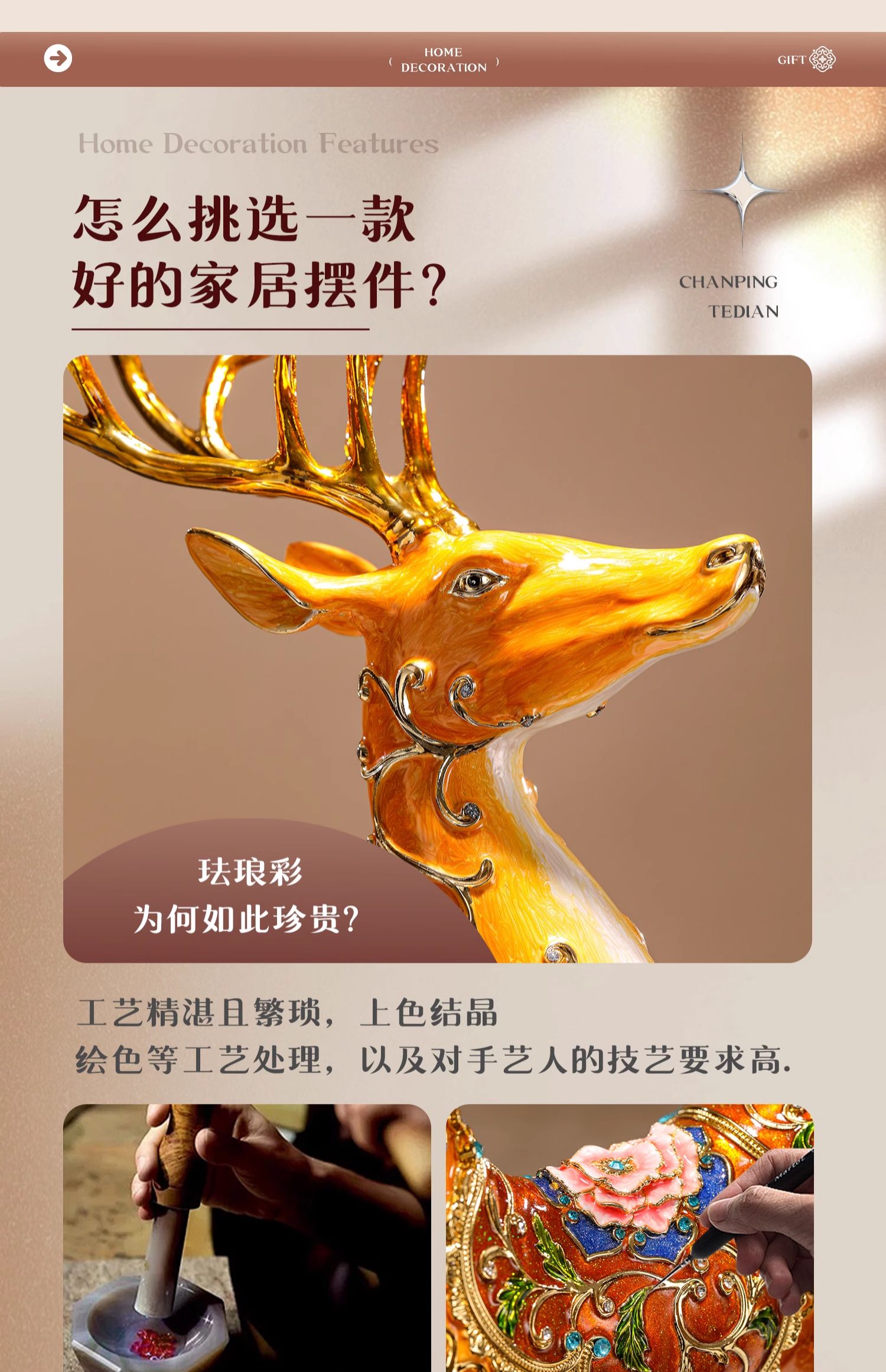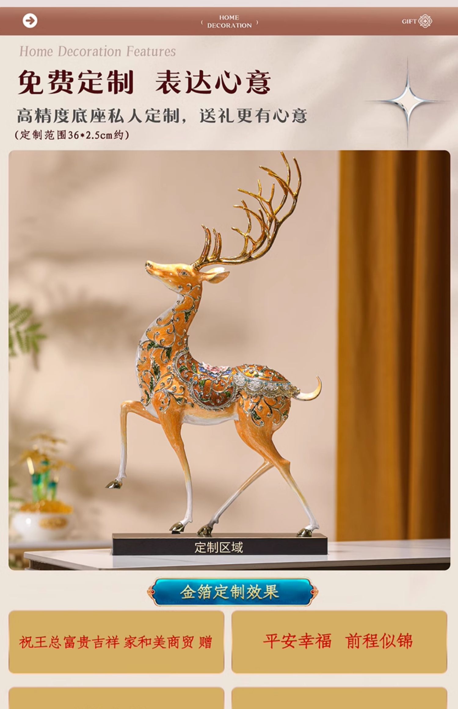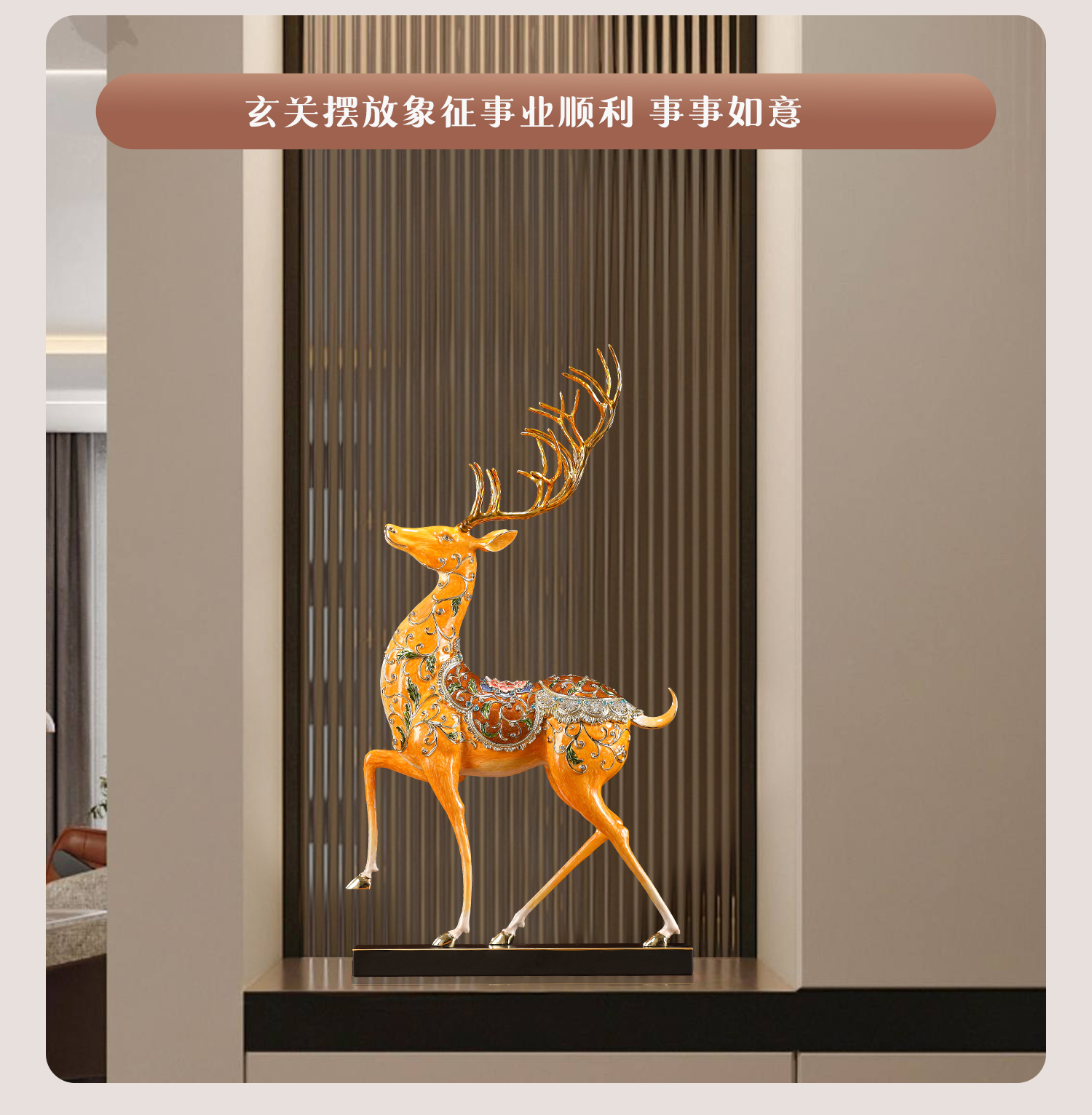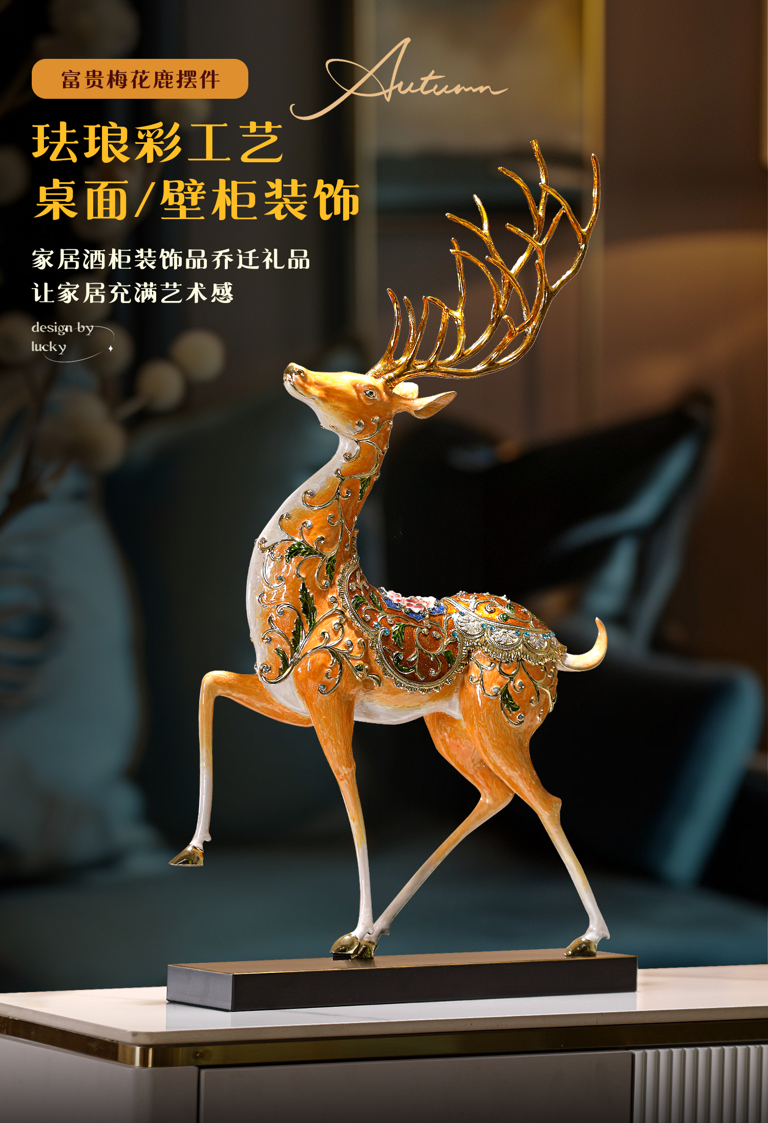 珐琅彩梅花鹿摆件家居客厅办公室玄关轻奢高端装饰品乔迁开业礼品