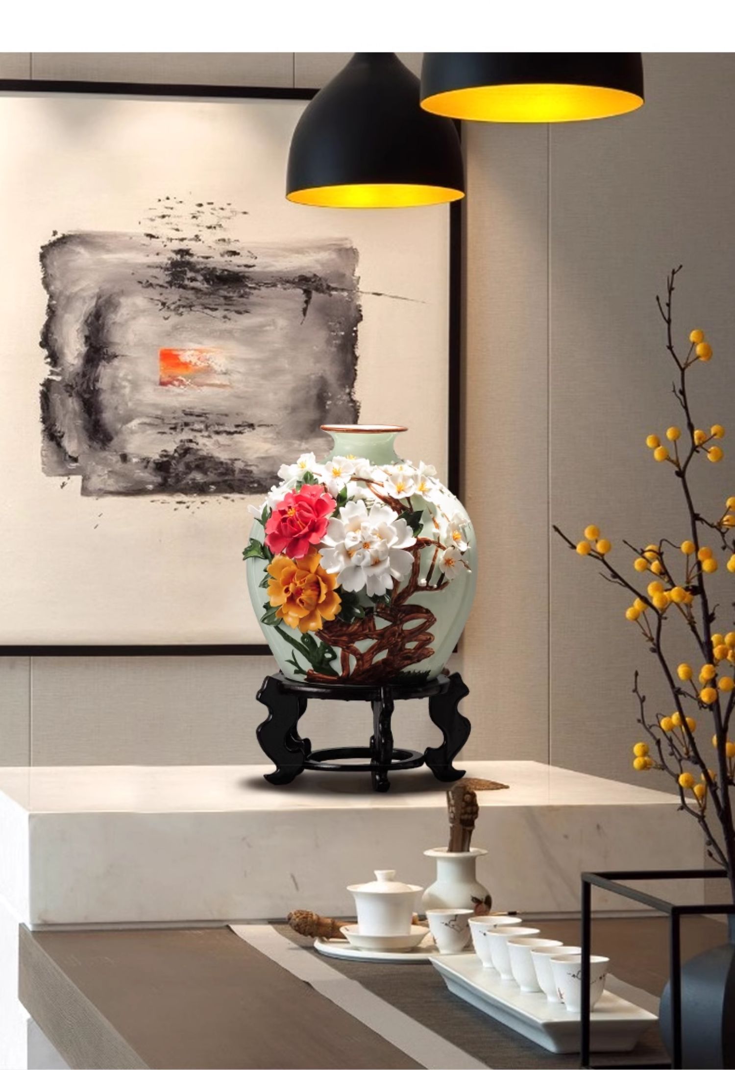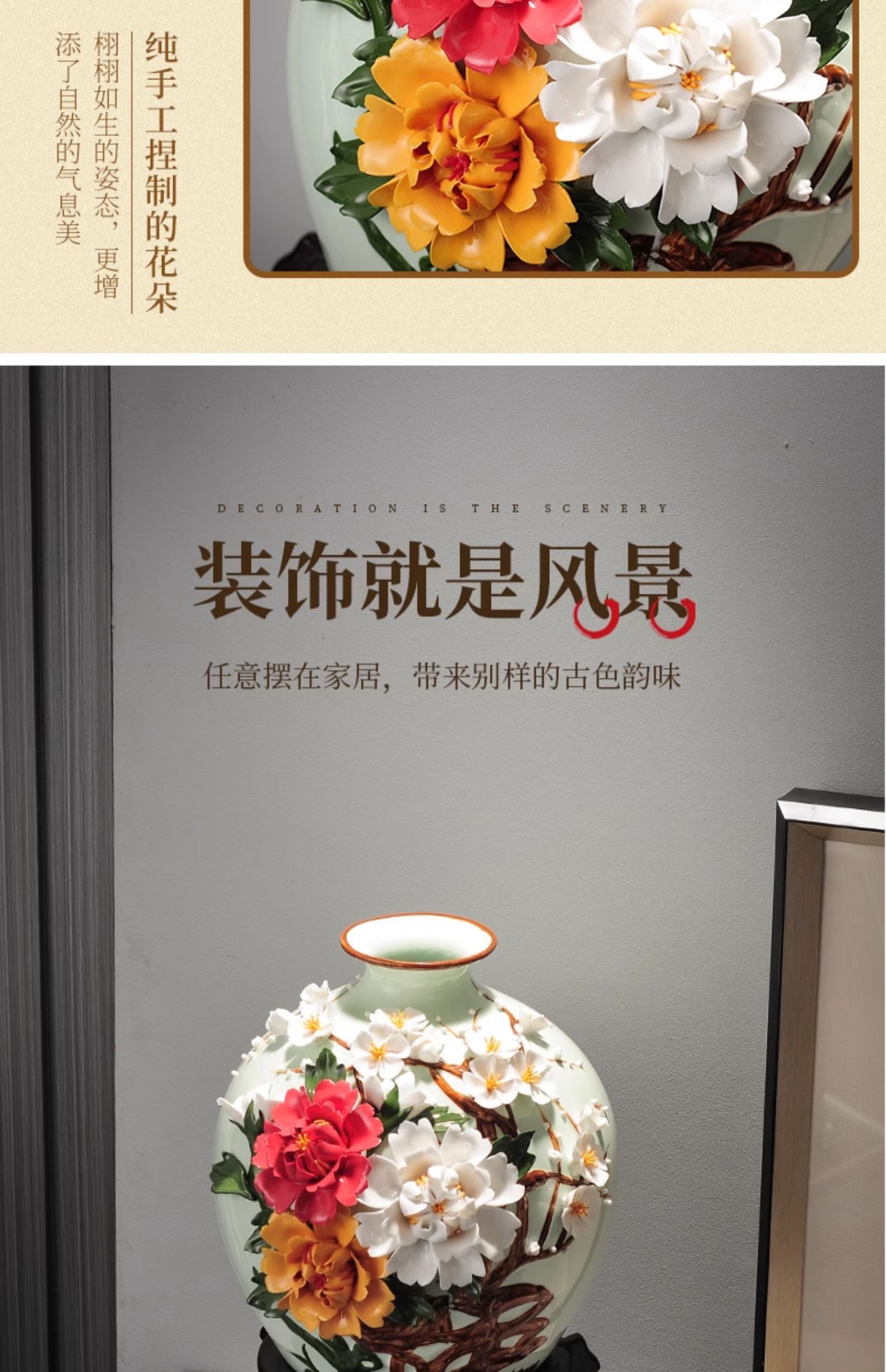 花开富贵陶瓷器摆件家居客厅新中式玄关装饰乔迁新居礼品搬家礼物
