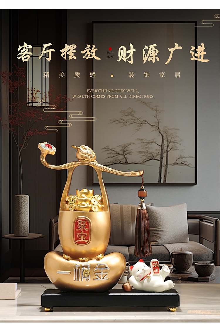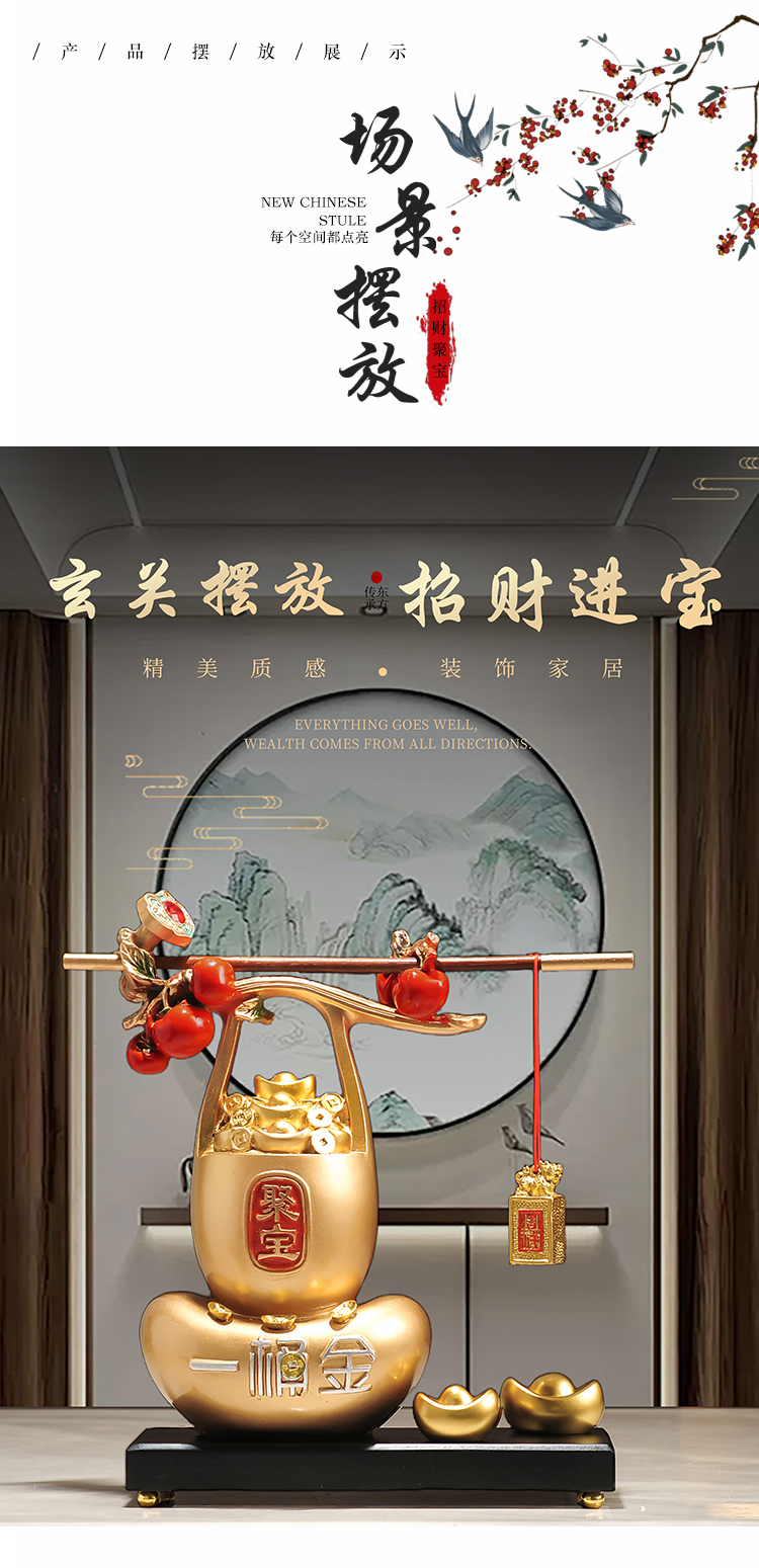 称心如意聚宝盆摆件新中式家居客厅玄关电视酒柜装饰品乔迁搬新家