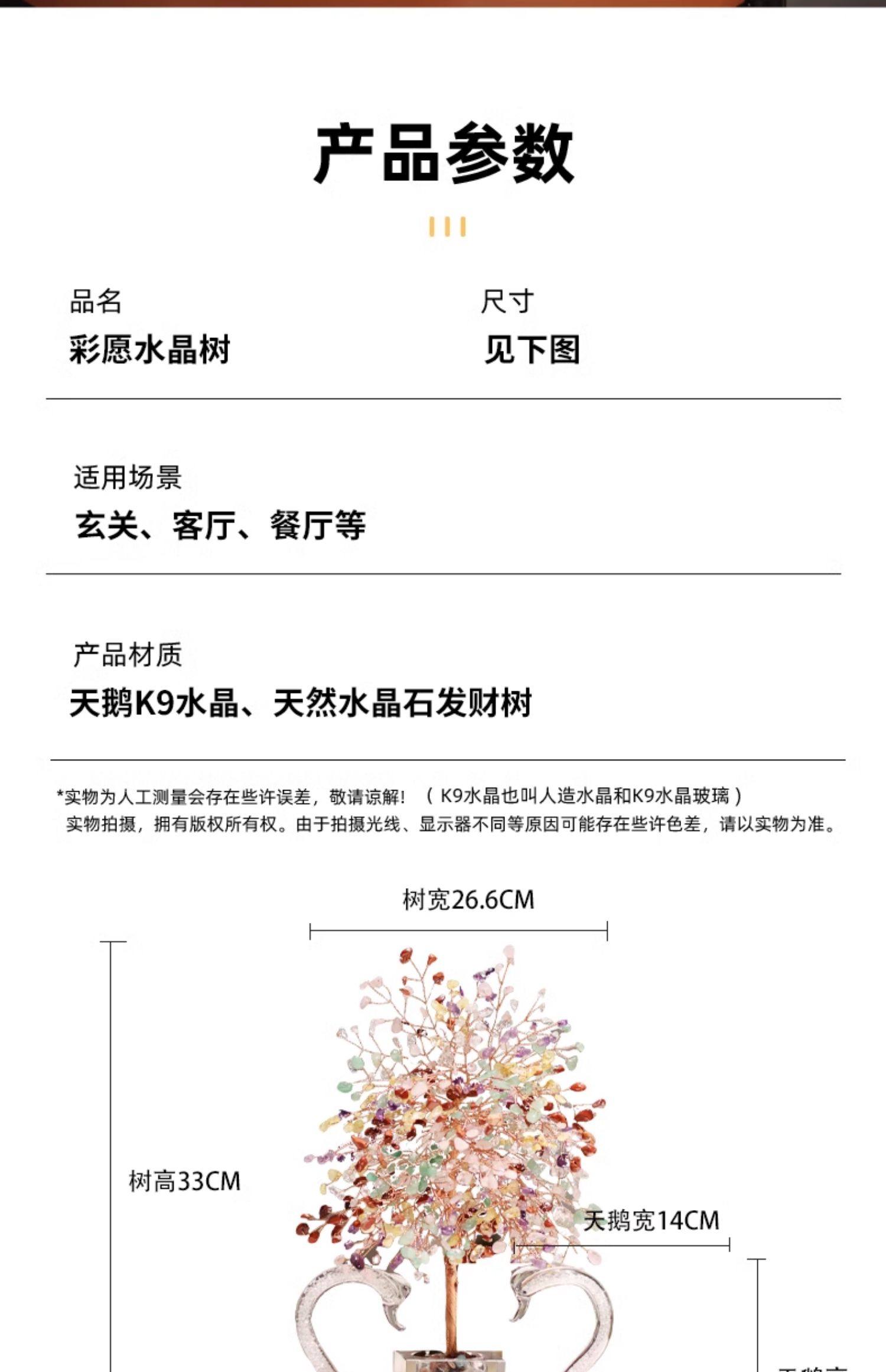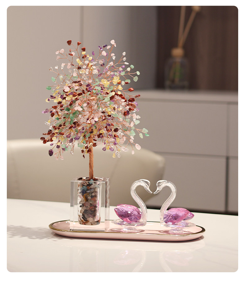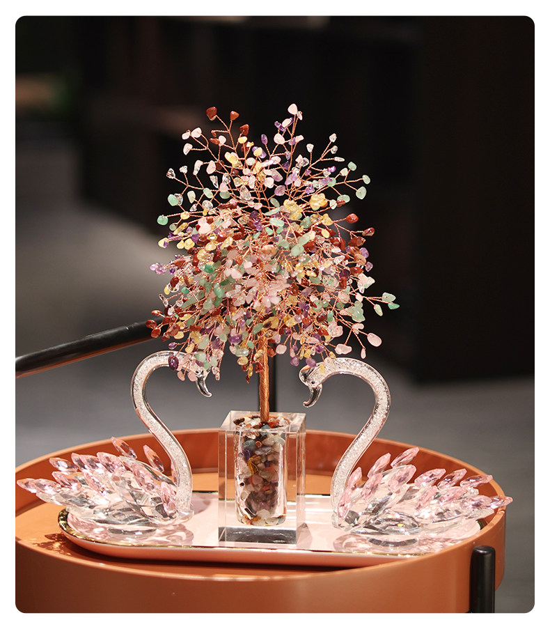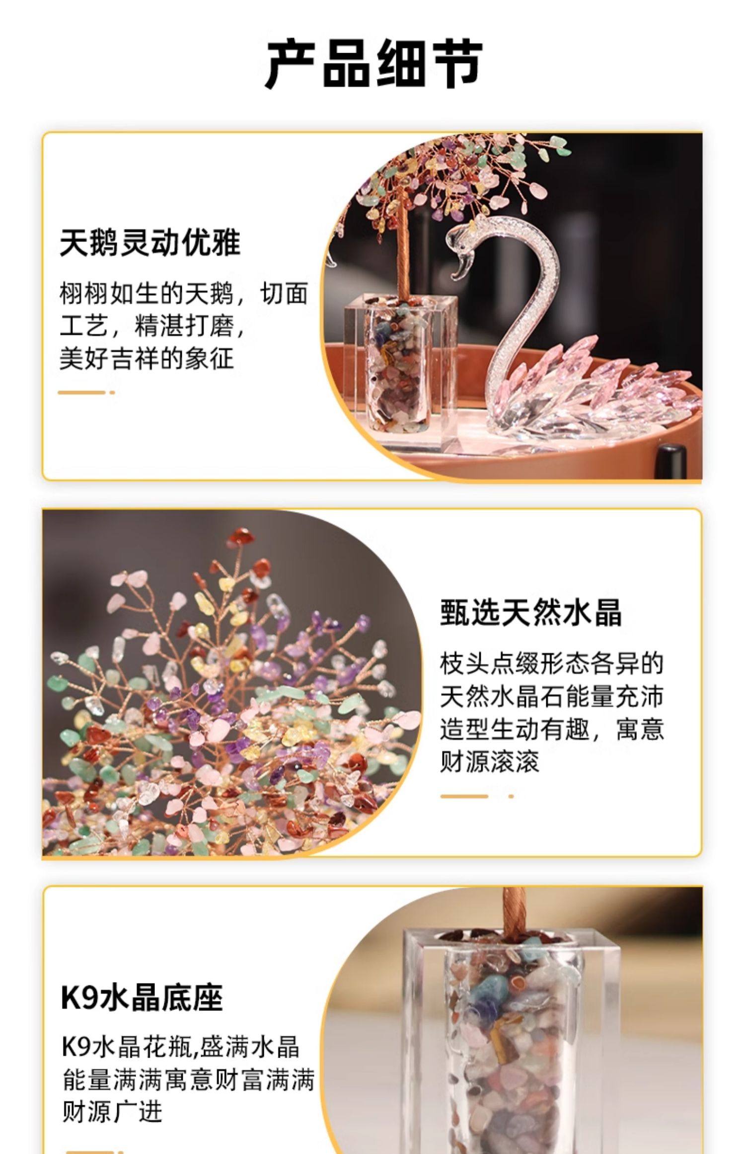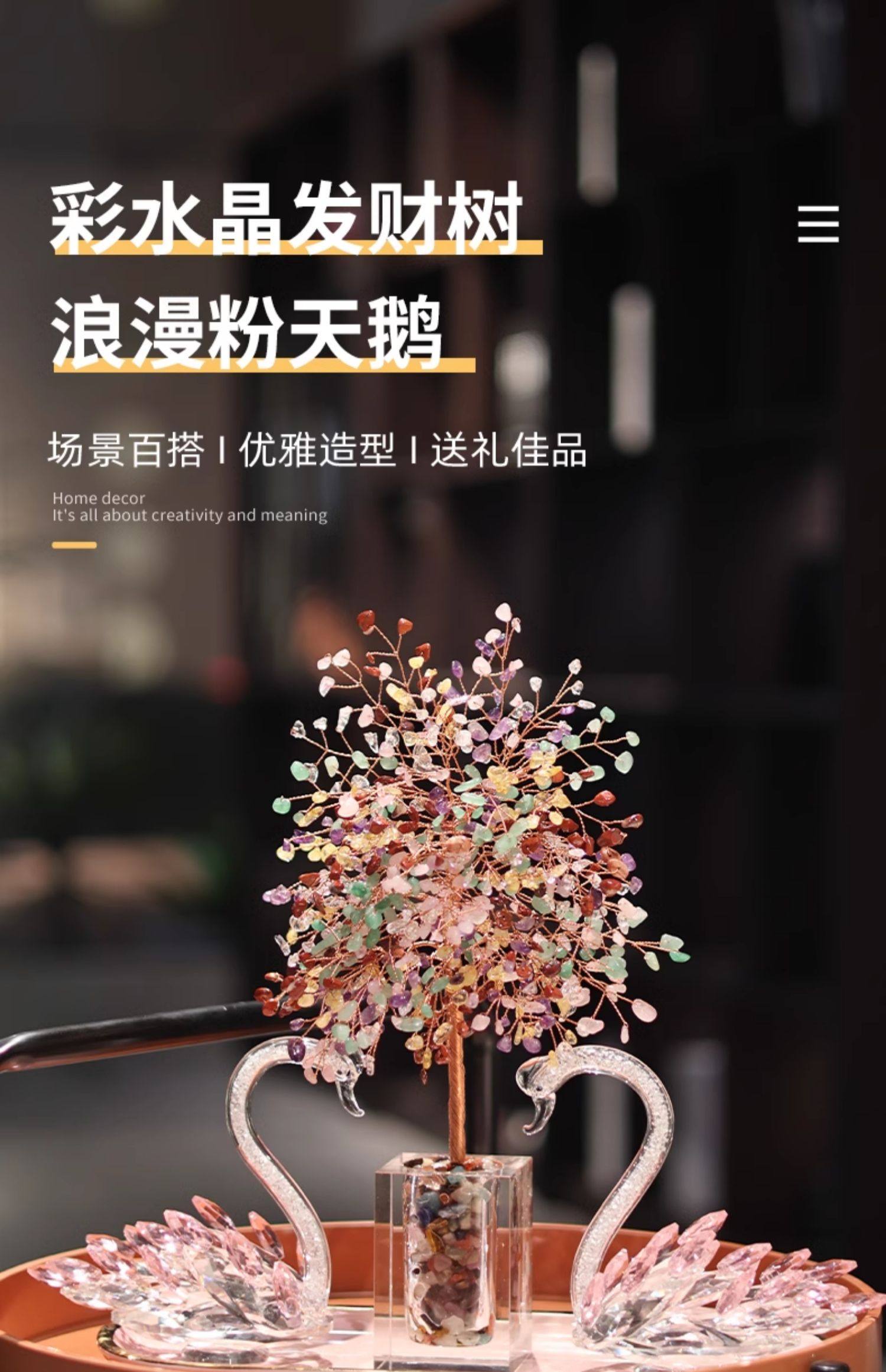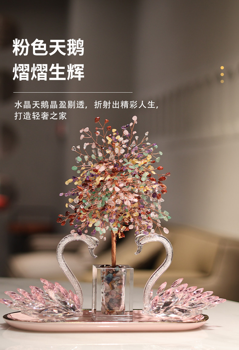 彩愿水晶发财树玄关天鹅摆件轻奢高档客厅家居装饰品乔迁开业礼物