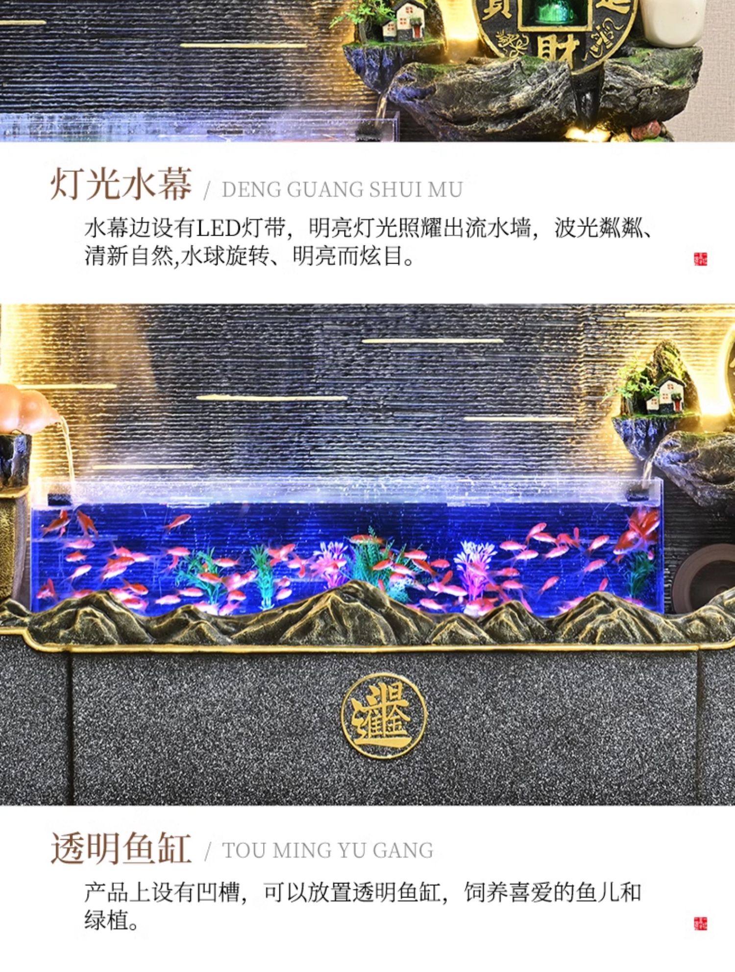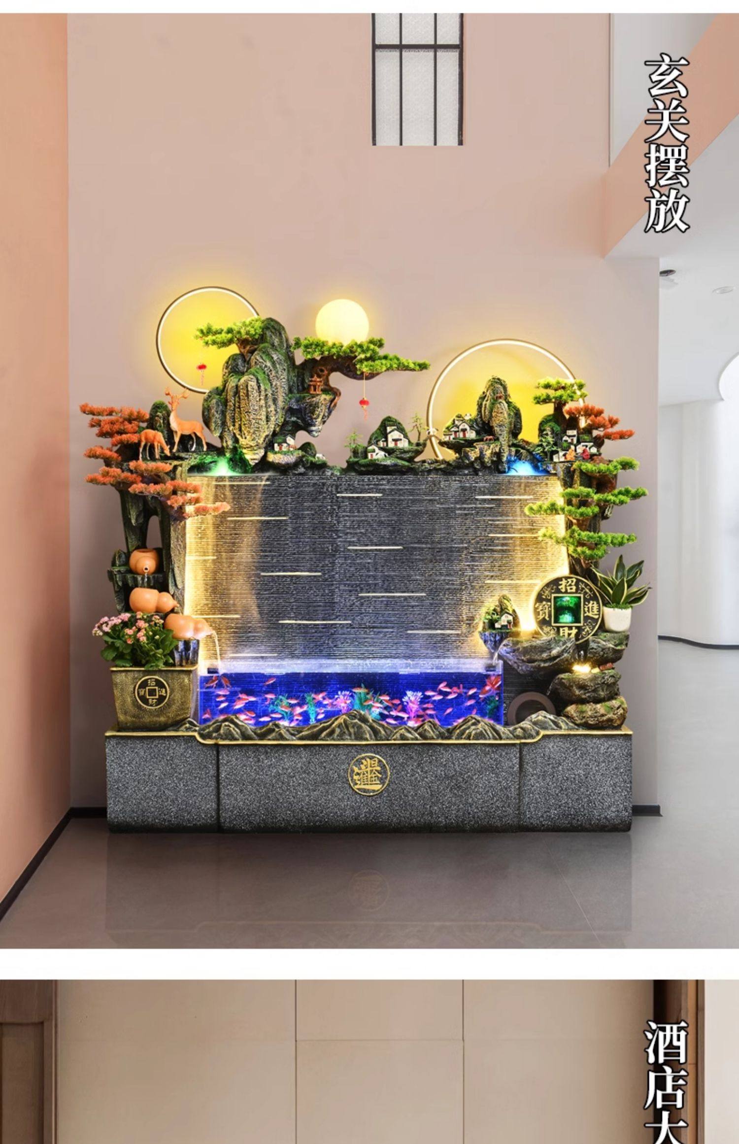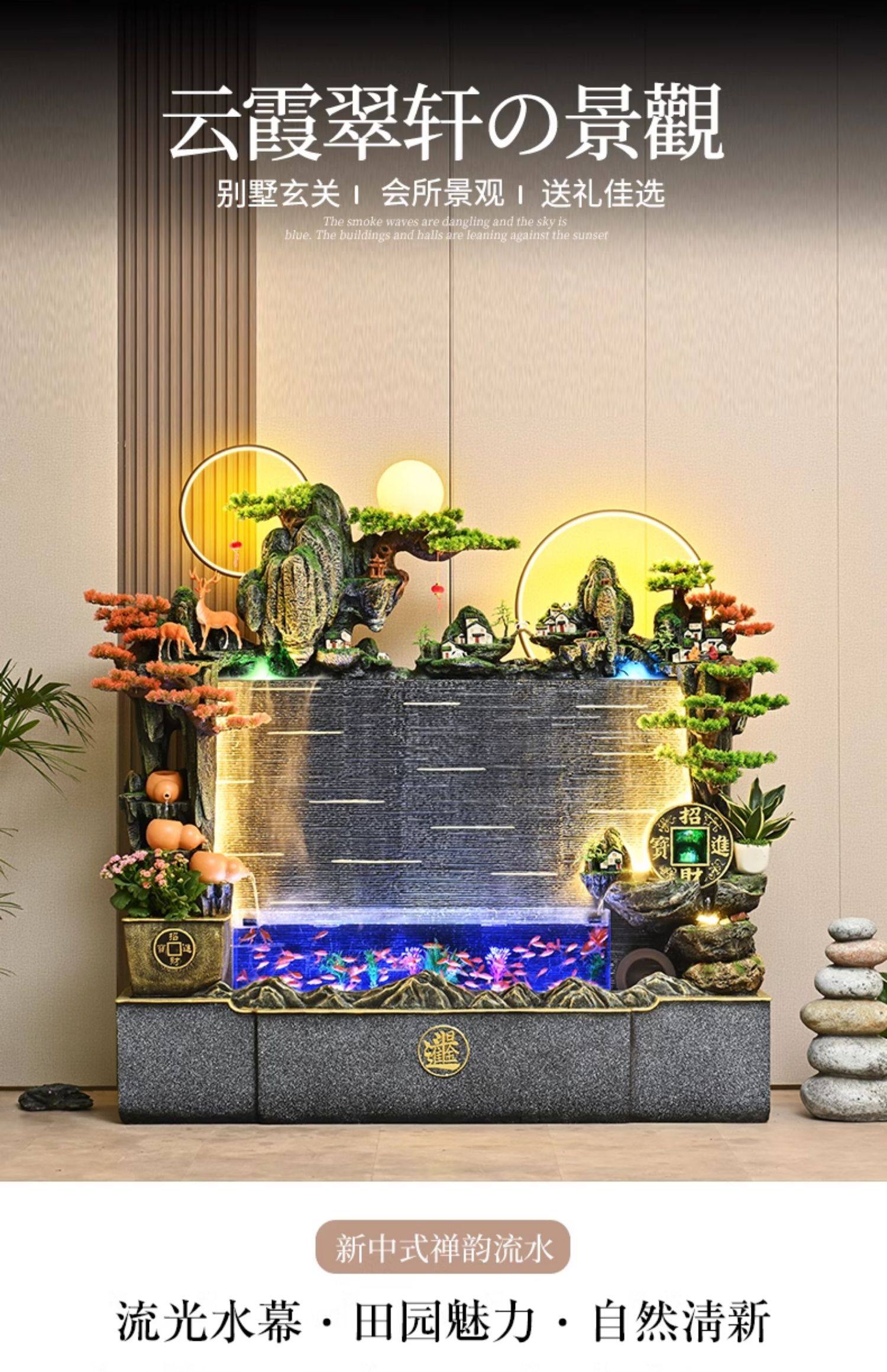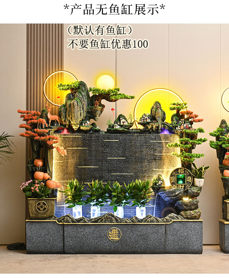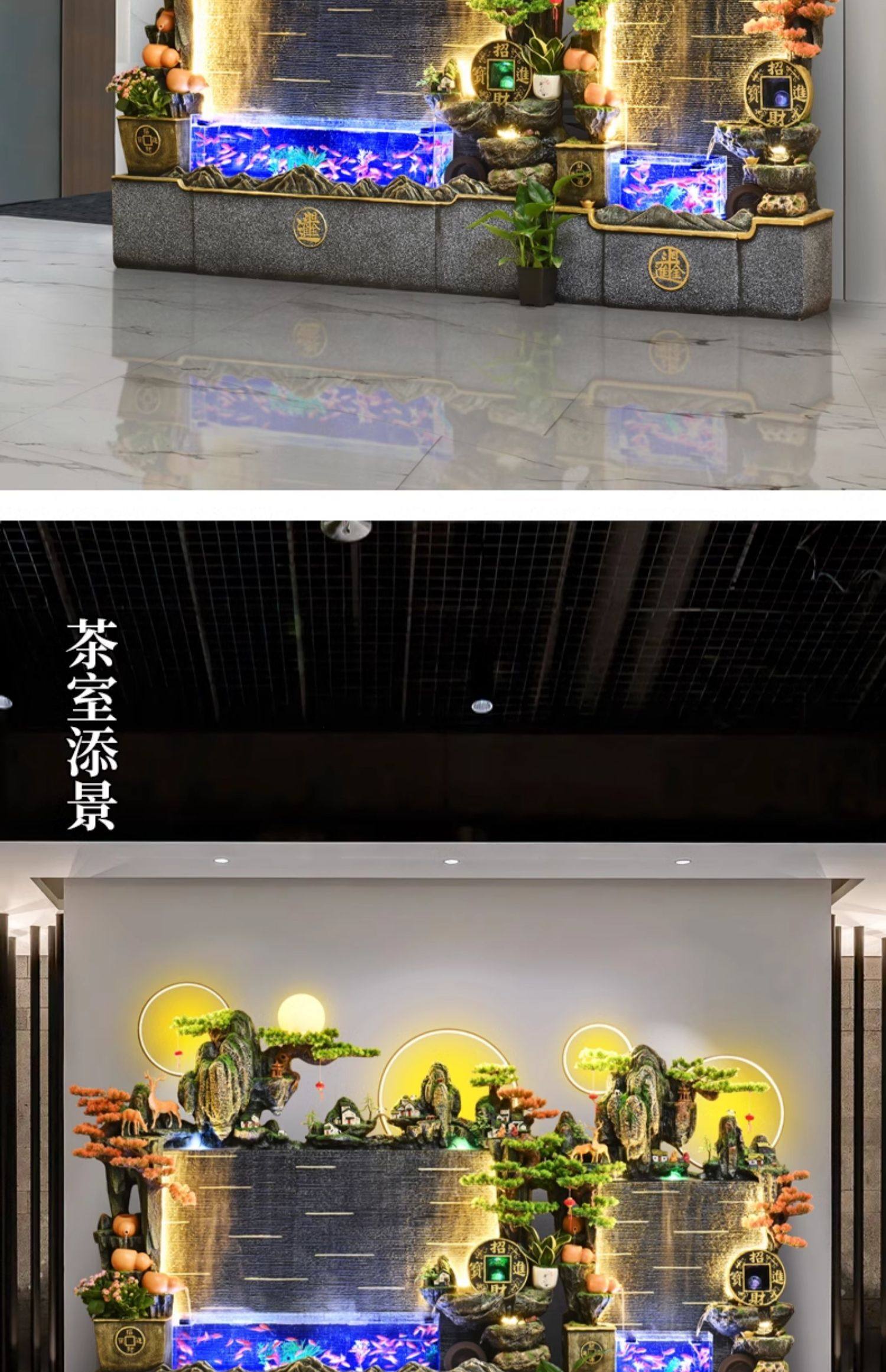 水幕墙假山循环流水酒店落地鱼缸办公室水景观送礼招财屏风摆件