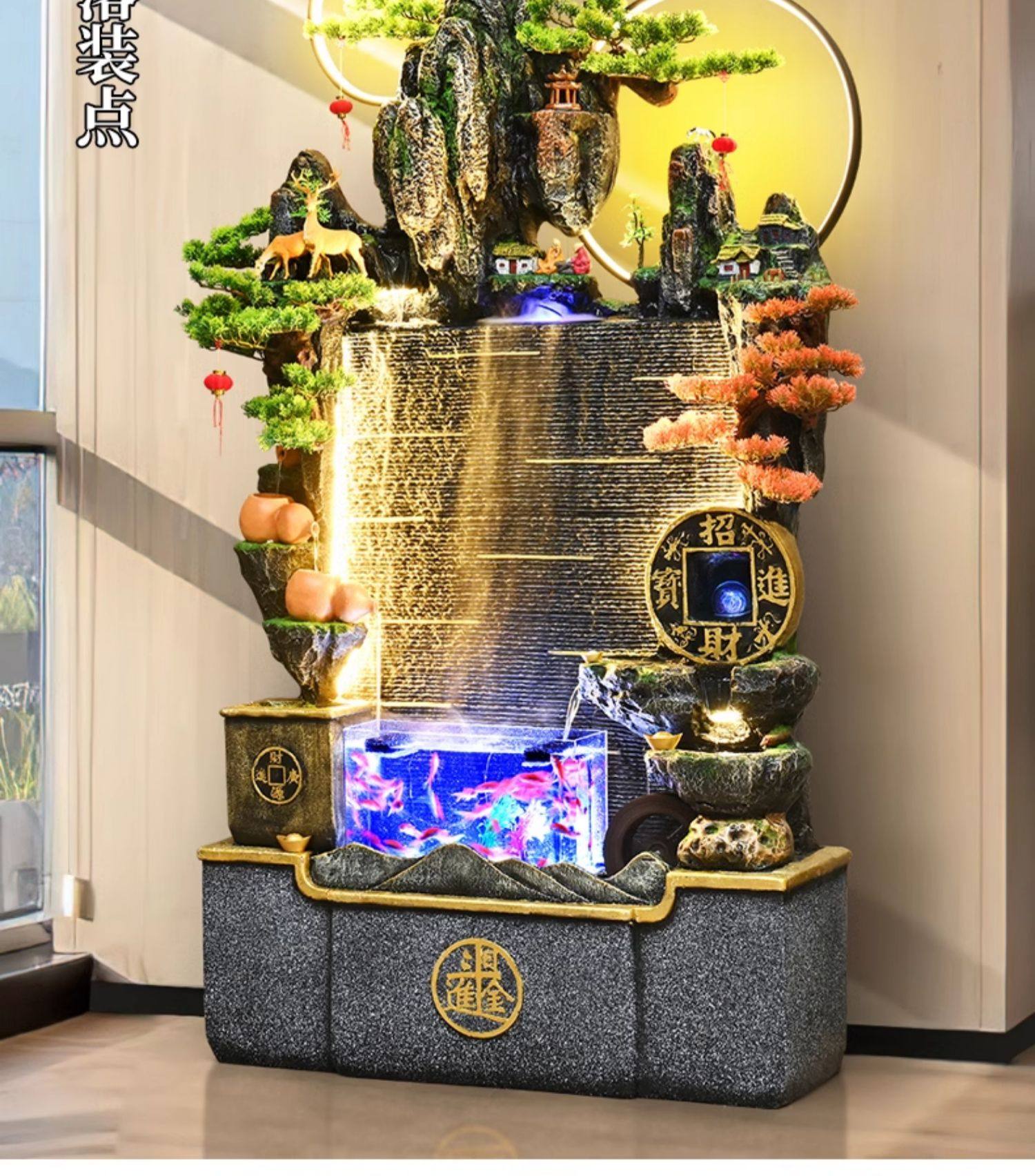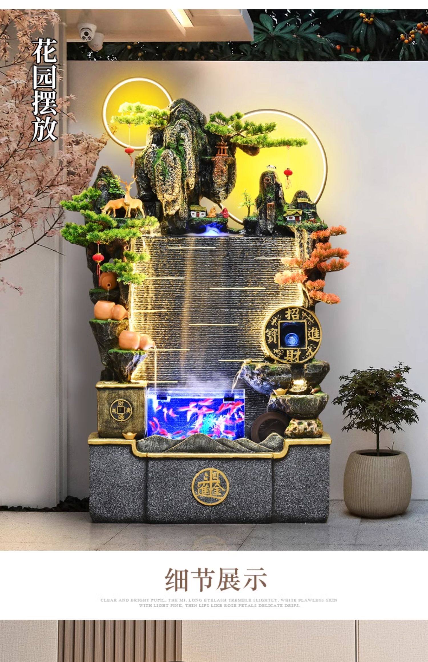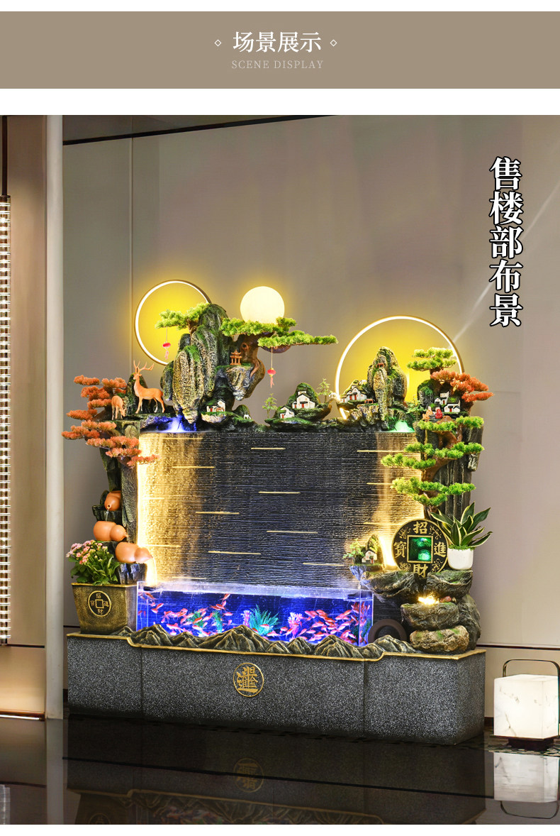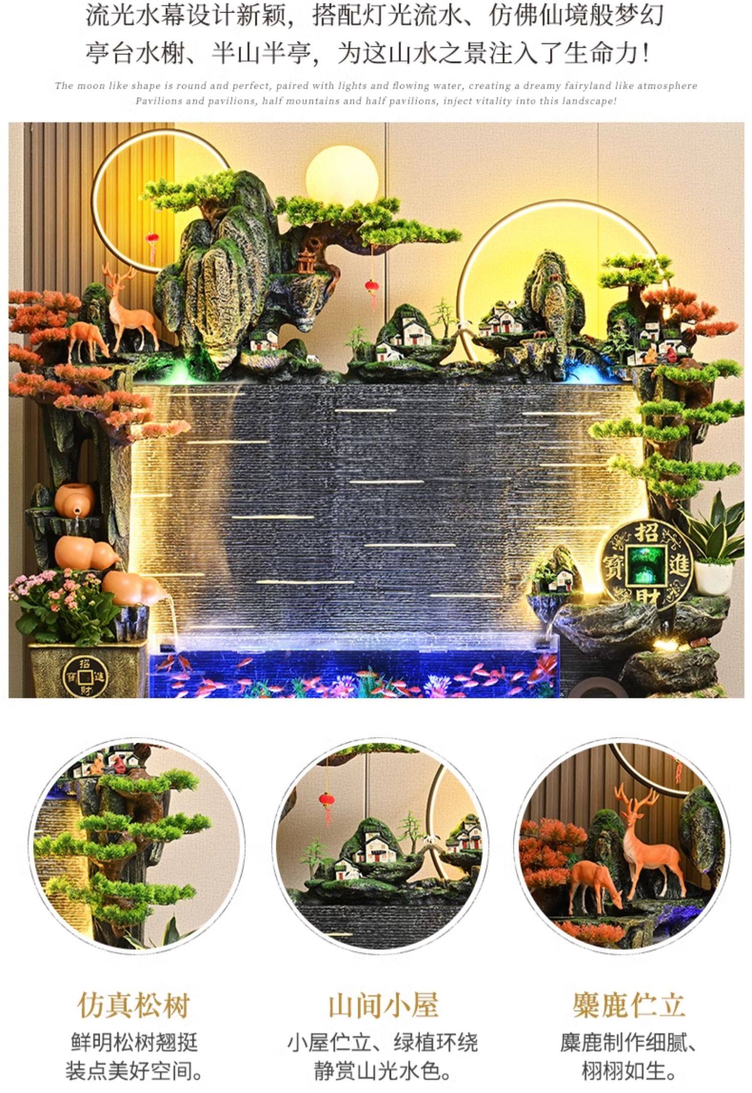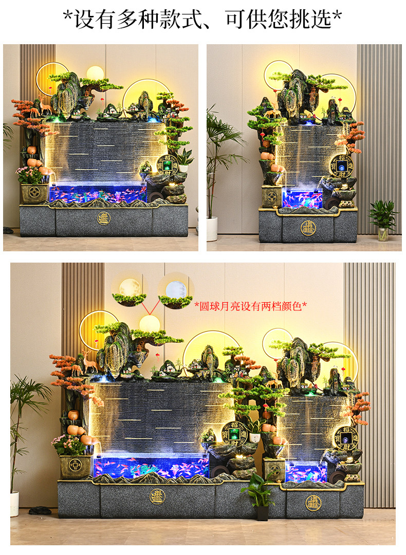 水幕墙假山循环流水酒店落地鱼缸办公室水景观送礼招财屏风摆件