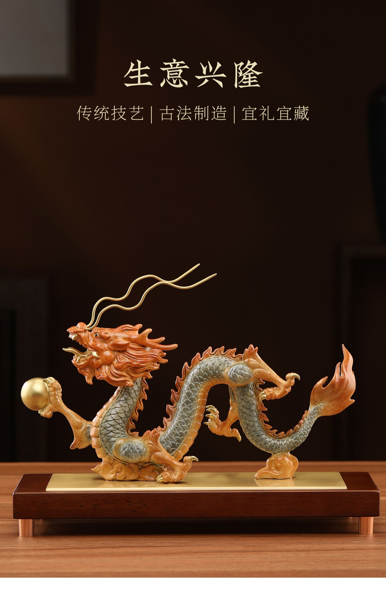 大明铜匠生意兴隆龙铜摆件客厅玄关装饰品办公室公司开业大吉礼物